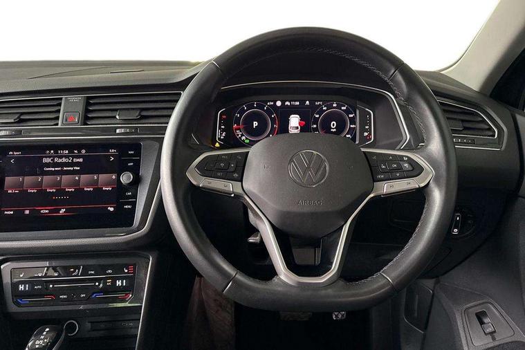 Adaptive cruise control ACC stop and go including speed limiter, App-Connect incl. App-Connect Wireless for Apple CarPlay and Android Auto, Bluetooth phone integration system, Digital Cockpit Pro - Active info display, Distance control assist, Driver alert system, Driver profile selection, Dynamic road sign display, eCall emergency call system, Electromechanical speed sensitive power steering, Engine start/stop button, Lane keeping system Lane Assist, Lights on warning, Motorised electric tailgate operated via key fob, drivers door and foot movement under tailgate, Multifunction front facing camera, Outside temperature display, Premium multifunction display with multi colour display, Remote control boot opening, Rev counter, Revision / skills operating concept travel assistant, Service interval indicator, Speed limit display, Start/stop system with regenerative braking, Tailgate/trunk lid unlocking from outside, Trip computer, Warning sound and light for doors and tailgate open, Battery regeneration during braking, XDS electronic differential lock for improved traction and handling, 2 USB-C ports in the front, 1 USB-C charging socket on the center console in the rear, Diversity antenna for FM reception, Radio, SD card slot, Simultaneous pairing of 2 compatible mobile devices, SMS functionality - read, compose and send SMS messages using touch-screen display, Title and cover art display, Aluminium door sill protectors, Auto dimming interior rear view mirror, Automatic headlight control system, Body colour door handles, Body coloured bumpers, Body coloured door mirrors with integrated indicators, Coming/leaving home lighting function, Dynamic headlight range control, Front and rear electric windows, Heated rear window, High level 3rd brake light, IQ light with advanced high beam control and dynamic light assist for LED matrix headlamps + Dark red rear combination lamp in LED technology, Laminated safety glass windshield, heat and sound insulating, LED rear number plate lights, LED separate daytime running light, Poor weather light and cornering light, Privacy glass for rear side windows and rear window, Rain sensor windscreen wipers, Rear exhaust tailpipe, Rear fog lamp, Rear windscreen washer and wiper with interval delay, Side and rear windows in heat insulating glass, Third brake light, Tilting and sliding panoramic sunroof with rear panoramic sunroof, Trailer Stability Programme, Windscreen wipers/ intermittent wipe + 4 position delay, 12V outlet in center console rear and in luggage compartment, 2 cup holders in front, 2 LED front reading lights, 2 LED rear reading lights, 3 rear headrests, 4 load lashing points, 40:20:40 split folding rear seats, Air Care Climatronic 3 zone automatic climate control with enhanced air filter and controls in the rear, Backrest release for left front seat, Climate control unit rear with touch function, Door and side trim panel in foam film and woven fabric, Front + rear carpet mats, Front centre armrest, Front footwell illumination, Front seats head restraints (x-adjustment), Height adjustable front seats, Height/reach adjust steering wheel, Instrument lighting white adjustable panel illumination, Interior light with delay, Isofix Preparation 2 Rear child seats, Leather gear knob, Lockable cooled glovebox, Luggage compartment lighting, Luggage net, Rear bench seat asymetrically split folding, longitudinally movable and folding with load-through hatch and center armrest, Remote unlocking for rear seat backrest, Removable luggage cover, Safety optimised front head restraints, Sliding/reclining rear seats, Standard rear seat release, Storage compartment in driver's door, Storage compartment in passenger's door, Storage compartment in rear doors, Storage compartments in luggage area left and right, Storage tray on dashboard, Sun visors with illuminated vanity mirrors, Variable boot floor, height adjustable and removable, Ambience pack - Tiguan, Chrome pack - Tiguan, Easy open and close pack with safelock - Tiguan, 3 point seat belt for centre rear seats, 3 point seat belts with seat belt pretensioners for the outer rear seats, Active bonnet, Curtain airbags for front and rear passengers, Driver/Front Passenger airbags, Drivers knee airbag, Electronic parking brake with auto hold, Electronic Stability Control with driver steering recommendation, ABS, ASR, EDL, EDTC and trailer stabilization, Front assist with autonomous emergency braking (for Adaptive Cruise Control ACC up to 130 mph), Front disc brakes, Front passenger airbag deactivation, Front side airbags, Height adjustable front 3 point seatbelts + pretensioners, Hill hold control, Pedestrian monitoring system, Power assisted brakes, Proactive passenger protection system in combination with front assist, Rear disc brakes, Rigid safety cell with front and rear crumple zones, Two tone horn, Warning sound and light for front seat belts if unfastened, Anti theft alarm system with interior monitoring, backup horn and towing protection, Anti theft wheel bolts, Central locking system with safelock radio remote control and 2 remote control folding keys, Electronic engine immobiliser, Tool kit,