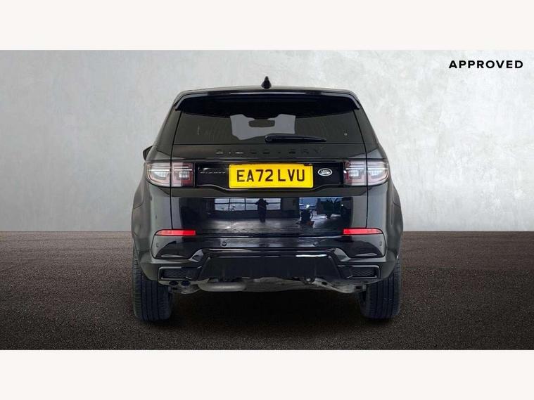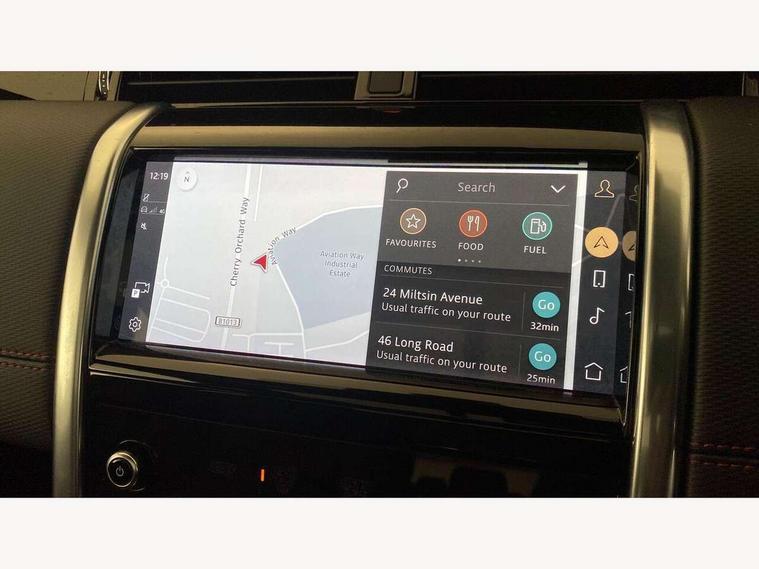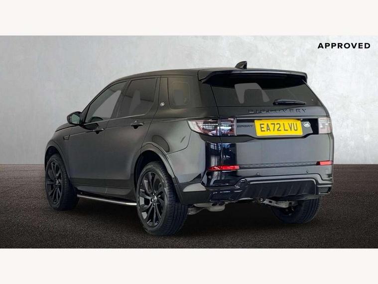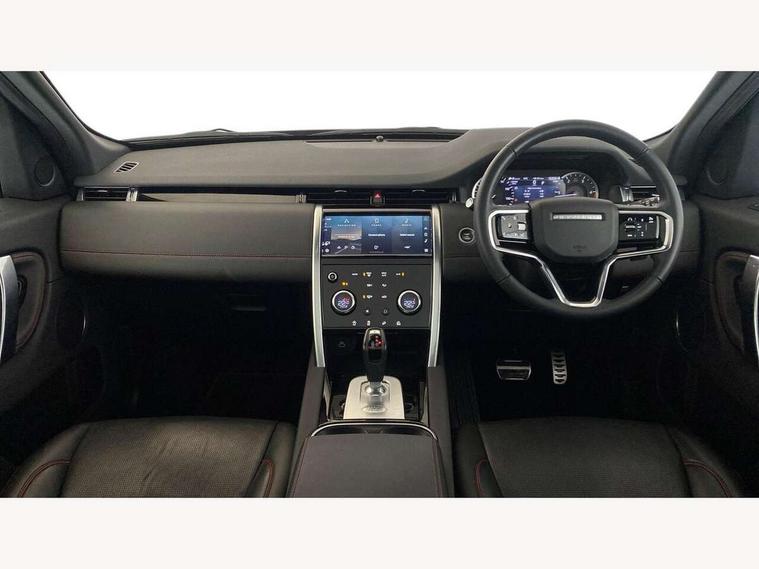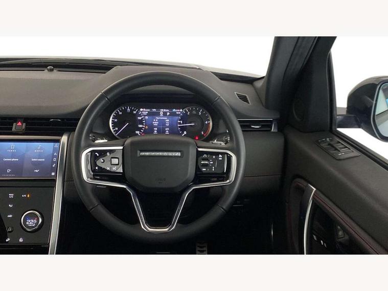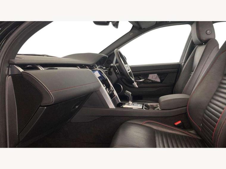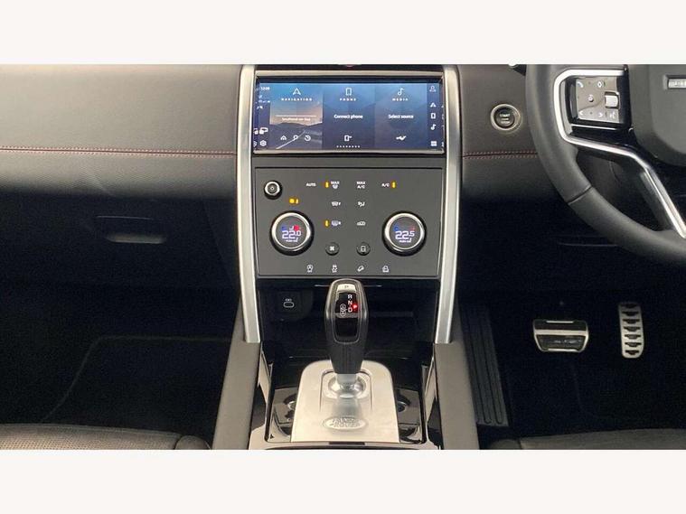 10" touch screen, Adaptive cruise control, Android Auto, Apple CarPlay, Driver condition monitor, eCall emergency call system, Front and rear parking aid, InControl remote premium, Lane keep assist, Locking fuel flap, PAS, Pivi Pro connected navigation system with upgraded Infotainment, Powered tailgate/boot lid, Push button start, Rear collision monitor, Service interval indicator, Traffic sign recognition with adaptive speed limiter, Trip computer, Wade Sensing, All terrain progress control, Coil suspension system, Diesel particulate filter, Dynamic stability control, Terrain Response 2, Bluetooth connectivity including audio streaming, Digital Audio Broadcast radio-DAB, Steering wheel mounted audio controls, 3rd brake light, Automatic headlights, ClearSight interior rear view mirror, Electric front/rear windows, Electric heated/power fold door mirrors with approach lights and auto dimming driver side, Fixed panoramic sunroof with powered sunblind, Front and rear recovery eyes, Heated rear window, Heated windscreen including heated washer jets, No badges, R Dynamic badge, Rain sensing windscreen wipers, Rear fog lights, Rear side wing doors, Rear wing door, Rear wiper, 5 seats, Bright metal pedals, Centre console with armrest, Footwell lights, Front and rear grab handles, Front passenger isofix child seat attachment, Loadspace cover, Loadspace light, Overhead lighting console, Overhead stowage for sunglasses, Rear headrests, Satin chrome gearshift paddles, Sunvisors with illuminated vanity mirrors, Tilt/reach adjustable steering wheel, Black exterior pack - Discovery sport, Online pack with data plan - Discovery, 3 point seatbelts on all seats, ABS, Brake hold function, Child locks on rear doors, Collision mitigation braking system, Cornering brake control (CBC), Driver/Front Passenger airbags, Drivers knee airbag, Electronic brake force distribution, Electronic parking brake, Emergency brake assist, ESP + traction control, Hill descent control, Hill launch assist, Pedestrian airbag system, Rear seat ISOFIX, Roll stability control, Side and curtain airbags for front and 2nd row seats, Trailer stability control, Tyre pressure monitoring system, Battery Back Up System (BBUS) with tilt sensor, Global lock and unlock switch on driver door, Intrusion sensor, Keyless entry, Locking wheel nuts, Centre stack rails in noble chrome,