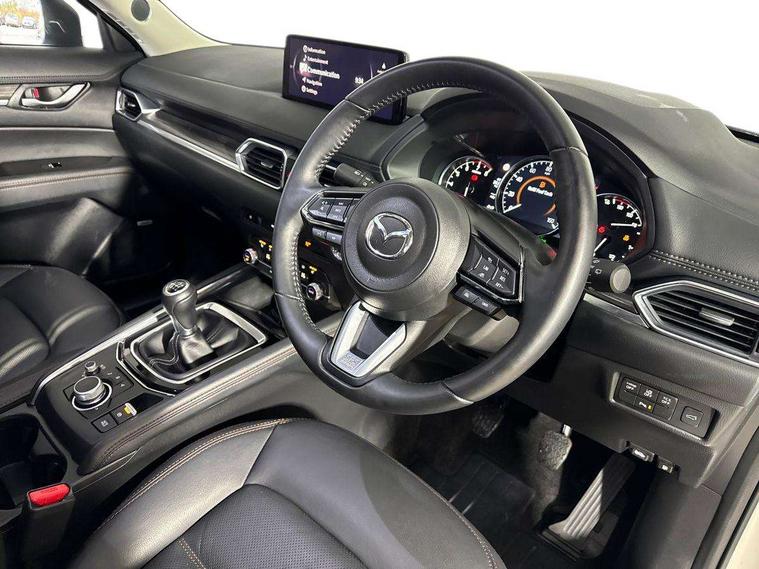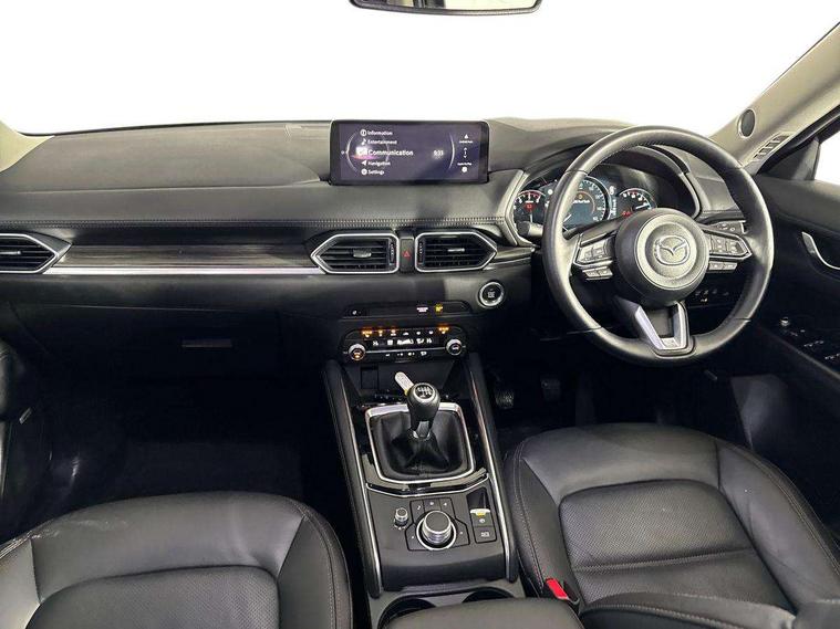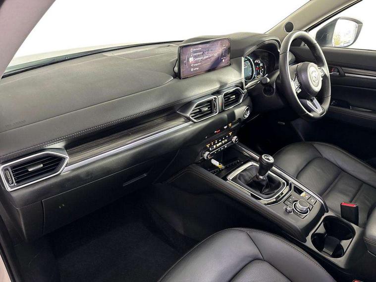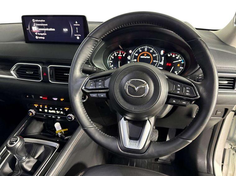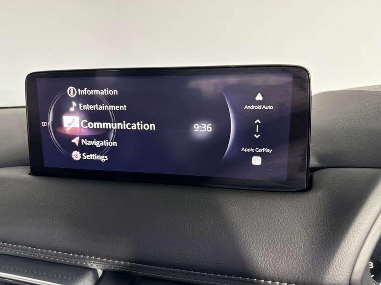 10.25" display with Mazda Connect infotainment, 7" colour TFT display, Advanced blind spot monitoring, Bluetooth connectivity with voice control, Collision prevention assist, Connected services, Cruising Traffic Support, Electric power steering, Emergency stop signalling system, Engine start/stop button, Forward collision warning, Front and rear parking sensors, Integrated navigation system, Intelligent speed assist, Lane departure warning system, Lane keep assist, Power liftgate, Qi wireless phone charging, Radar cruise control, Rear cross traffic alert, Reversing camera, Service indicator, Traffic sign recognition (TSR), Trip computer, Windscreen projected colour active driving display (HUD) with memory, Wireless apple car play/android Auto, Cylinder Deactivation, i-stop, AM/FM radio, Bluetooth audio streaming, Bose premium sound system with 10 speakers, DAB Digital radio, Multimedia Commander including separate volume dial, Steering wheel mounted audio controls, Adaptive front lighting system, Auto dimming rear view mirror, Automatic headlights, Black inlay dashboard panel, Body colour door mirrors, Body colour roof spoiler, Body coloured front and rear black lower bumper mouldings, Coming/leaving home lighting function, Door mirror integrated indicators, Dual chrome tailpipes, Electric front/rear windows with one touch auto up/down, Front grille in gloss black finish with chrome signature wing, Gloss black B and C pillars garnish, High beam assist, Intermittent rear wash/wipe, LED auto levelling, LED daytime running lights, LED front fog lights, LED Headlights, LED third brake light, Power folding and heated door mirrors, Power tilt/slide sunroof, Privacy glass (rear side windows only), Rain sensing front wipers, Rear side wing doors, Satin black side mouldings, Scuff plates, Shark fin antenna, Signature LED rear combination lights, Variable intermittent front wash/wipe, Vinyl with wood grain metal inlay door trim panel, Windscreen wiper de-icer, 12v electrical power outlet, 3 seat bench in 2nd row, 3 stage heated front seats, 40:20:40 Karakuri fold-flat seat system, 6 way electric adjustable passenger seat, 8 way electric driver seat with lumbar support + memory, Cargo room flat floor board with waterproof undertray, Driver seat power slide, recline and height adjustment, Driver, Front passenger and two rear grab handles with coat hooks, Driver/passenger front seatback pockets, Driver/passenger sunvisors + illuminated vanity mirrors (drivers with ticket holder), Dual zone climate control, Folding centre armrest with 2 cup holders, Front and rear door pockets, Front centre storage with two cupholders, Front passenger seat power slide, recline and height adjustment, Gear shift indicator, Heated steering wheel, Humidity sensor, Illuminated glovebox, Interior dome light with integral spotlight, ISOFIX child seat anchorage points attached on outer rear seats, Karakuri tonneau cover, Leather upholstery, Leather wrapped steering wheel and gear knob, Light roof lining, Luggage compartment LED lighting, Luggage compartment power outlet, Rear air vents, Rear headrests, Rear seat recline, Roof mounted sunglasses holder, Single front passenger seat, Three height adjustable head restraints, Tilt/height adjustable steering wheel, USB Connectivity (2x front Type-C, 2x rear Type-B), White interior LED illumination lighting, 3 point front seatbelts with pre-tensioners, 3 rear 3 point seatbelts, ABS, Advanced Smart City Brake Support - SCBS, Child locks on rear doors, Driver and front passenger side airbags, DSTC-Dynamic Stability and Traction Control, Dual front airbags, Electronic brake force distribution, Electronic parking brake with auto hold, ESP, Front and rear curtain airbags, Front passenger airbag deactivation, G-Vectoring control, Hill hold assist, Seatbelt reminder front and rear, Single stage passenger airbags, Smart brake support with forward obstruction warning, Tyre pressure monitoring system, Automatic door locking when moving off, Deadlock, Immobiliser, Power door locks, Remote central locking, Smart keyless entry, Thatcham Cat.1 alarm, 19" diamond cut black alloy wheels, Tyre repair kit,