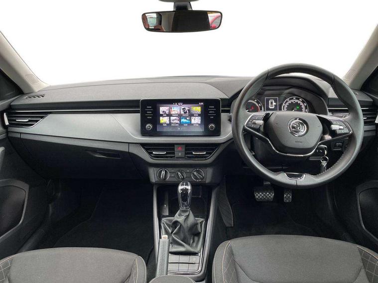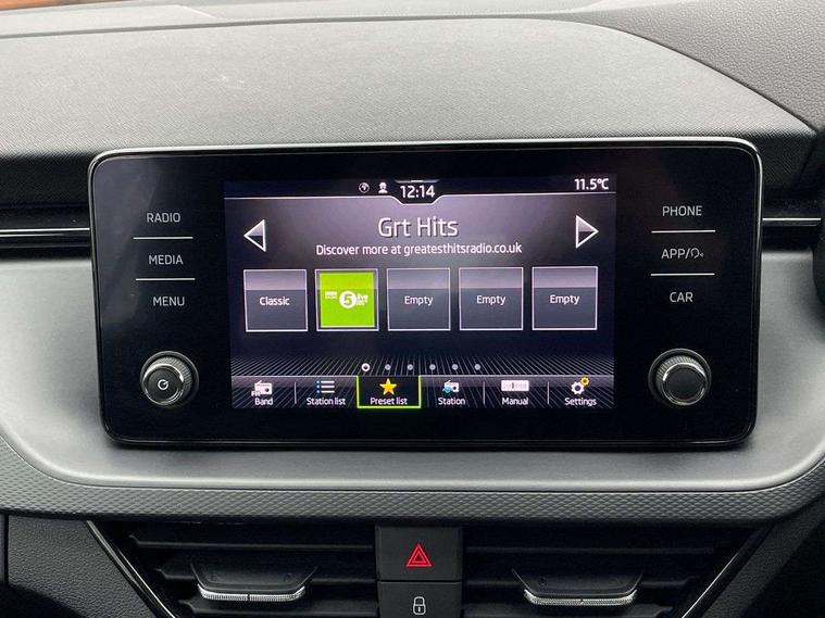 Bluetooth system, E-call, Front assist system, PAS, Service indicator, Speed limiter, Wireless Smartlink for Apple CarPlay (wired for Android Auto), 8 Speakers, Auxiliary input socket, DAB Digital radio, Body colour bumpers, Body colour door mirrors and handles, Chrome grille surround, Dimming rear view mirror with black surround, Electrically adjustable and heated door mirrors, Front and rear electric windows, Headlight range control, Heated rear window, LED rear lights - low functionality, LED third brake light, Light sensors, Rain sensor, Rear fog lights, Rear side wing doors, Rear wiper, 12V Accessory socket in centre console, 3 seat bench in 2nd row, Chrome inner door handles, Cloth upholstery, Front head restraints, Glove compartment with illumination, Ice scraper, Isofix child seat fittings on outer rear seats, ISOFIX on front passenger seat, Manual lumbar support for front seats, Rake/reach adjustable steering wheel, Reading lights, Single front passenger seat, Sun visors with illumination on front passenger, Textile floor mats, Third rear headrest, Top tether for front passenger seat, Umbrella in driver's door, 3x3 point rear seatbelts, Airbags - driver and front passenger, ESP, Front passenger airbag deactivation switch, Front side airbags with curtain airbags, Hill hold control, Manual parking brake, Manual rear child locks, One tone horn, Rear disc brakes, Seatbelt reminder for driver an co-driver, Traction control, Tyre pressure monitor, Anti-theft alarm system with interior monitoring, backup horn, towing protection and remote central locking with SAFE system, Anti-theft wheel bolts, Electronic engine immobilizer,