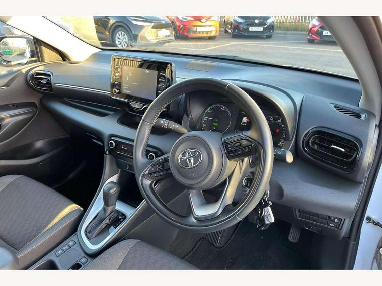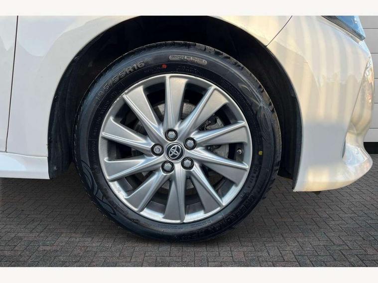 4.2" coloured TFT multi information display with analogue speedometer, Adaptive cruise control, Adjustable speed limit with speed warning, Bluetooth connectivity, E-call, Electric power steering, Hybrid energy display, Multi information display switches on steering wheel, Reversing camera, Smartphone integration with Apple CarPlay and Android auto, Tailgate, Voice recognition, Vehicle Stability Control (VSC), 4 speakers, 7" Multimedia display touch screen, Toyota Touch 2 with DAB, USB connection, Acoustic windscreen glass, Auto windscreen wipers, Automatic headlights, Body coloured door mirrors, Bulb indicators, Chequered front grille, Daytime running lights, Electric adjustable heated door mirrors, Follow me home headlights, Front auto power windows with anti jam protection, Halogen projector headlights, LED High mounted stop lamp, Manual headlight levelling, Rain sensor, Rear side wing doors, Rear spoiler, Rear wiper, Shark fin antenna, Turning signal integrated indicators in door mirrors, Variable front intermittent wipers, 3 adjustable rear headrests, 3 seat bench in 2nd row, 3 spoke leather steering wheel, 60/40 split folding rear seat, Active headrests, Adjustable boot height, Auto air conditioning, Coat hooks in rear grab handles, Cup holders (2 front & door), Data Communication Module (DCM) connected services, Fabric upholstery, Front armrest, Glovebox, Grey roof lining, Height adjustable driver's seat, Isofix seat fixing, Leather gearshift, Pollen filter, Shopping bag hooks, Single front passenger seat, Tilt/telescopic steering column, 3 point seatbelts on all rear seats, ABS+EBD+Brake assist, Electronic parking brake, Emergency brake light system (EBS), Front passenger airbag on/off switch, Front seatbelt reminder, Hill start assist control (HAC), Rear child proof door locks, Rear seat belt reminder, Supplemental Restraint System (SRS) 8 airbags: Driver & passenger's airbags, dual side curtain airbags, side impact airbags, front centre airbag, Toyota Safety Sense 2, Precollison + Night time Pedestrian & Cyclist Detection, Lane Trace Assist, Auto High Beam, Intelligent ACC & Road Sign Assist, Tyre pressure warning system, 2x Master key, Alarm/immobiliser, Remote powered central double locking doors, Soft touch instrument panel, Space saver spare wheel,