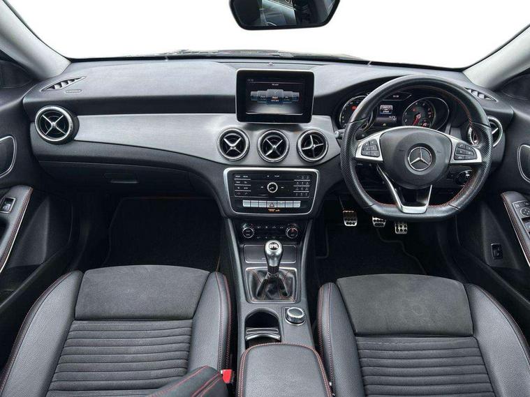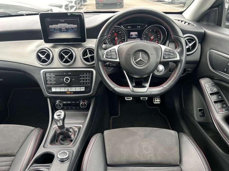 7" tablet style colour display, Attention assist, Bluetooth system, Cruise control + speed limiter, Direct steering, Door/boot open warning light, DYNAMIC SELECT with a choice of driving modes (ECO, Comfort, Sport, Sport+ and Individual), ECO start/stop function, Lamp failure indicator, Low fluid warning light, Outside temperature gauge, Reversing camera, Service indicator (ASSYST), Trip computer, Lowered comfort suspension, Media interface, Mercedes Audio 20 radio/single CD, USB connection, Adaptive brake lights, AMG body styling, Automatic headlights, Automatic rain sensing wipers, Body colour bumpers, Body colour door handles, Body colour side skirt, Body coloured door mirrors, Chrome beltline trim, Diamond grille with pins in chrome and single louvre in silver, Electric adjustable heated door mirrors, Front and rear electric windows, Halogen headlamps with integrated daytime running lights, Heated rear window with timer, LED tail lamp, LED third brake light, Rear fog lights, 1/3 to 2/3 split folding rear seats, 3 spoke flat bottom multi-function sports leather steering wheel in black with topstitching in red, Artico man-made leather/Dinamica upholstery, Auto Mercedes-Benz child seat recognition sensor, Brushed stainless steel sports pedals with rubber studs, Centre console with cupholders, Courtesy light in boot, Door sill illumination, Floor mats with red edging, Front centre armrest with storage box, Front door courtesy lamps, Front footwell lights, Front head restraints, Front seat cushion length adjustment, Front sports seats, Height adjustable front seats, Height/reach adjustable steering column, Illuminated glovebox, Illuminated storage compartment, Isofix rear child seat fastenings, Load securing rings in luggage compartment, Reading lights, Rear footwell lights, Rear head restraints, Seat cushion angle adjustment, Sunvisors with illuminated vanity mirrors, Thermotronic luxury automatic two zone climate control, 3x3 point rear seatbelts, ABS with Brake Assist, Active bonnet, Adaptive brake system, ASR, Brake pad warning light, Child lock for rear electric windows, Child proof door locks, Crash responsive emergency lighting, Drivers knee airbag, Dual stage driver/passenger airbags, Electronic parking brake, ESP curve dynamic assist, Front and rear seatbelt reminder, Front brake callipers with Mercedes Benz lettering, Front passenger airbag deactivation, Front passenger seat occupancy sensor, Front side airbags, Hill start assist, Tyre pressure monitoring system, Warning triangle and first aid kit, Window airbags, Anti theft alarm system, Chrome surround in electric key, Immobiliser, Keyless Go, Remote central locking, Chrome air vent surrounds, Light aluminium with longitudinal grain interior trim, 18" AMG 5 twin spoke alloy wheels, Tirefit,
