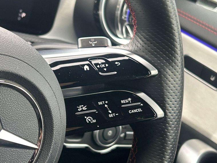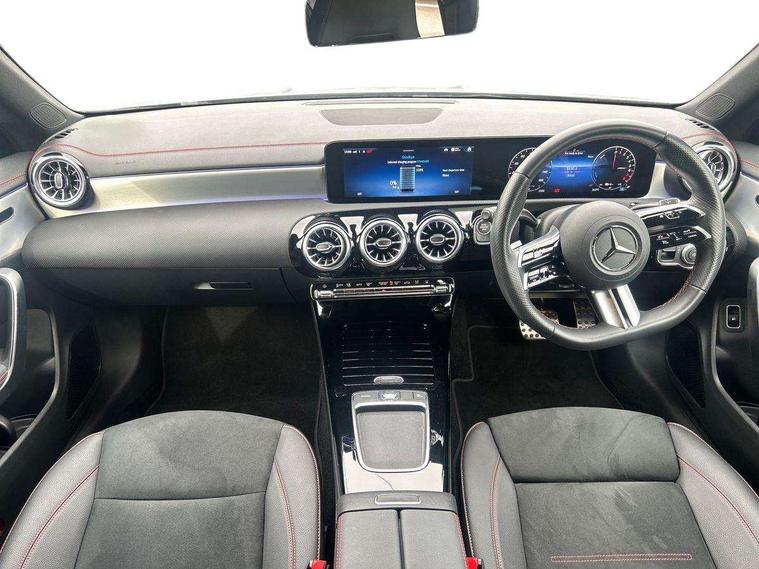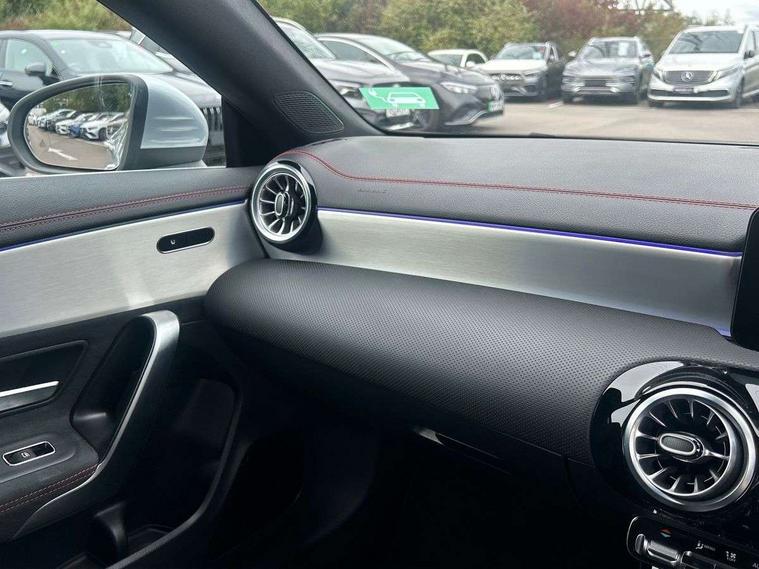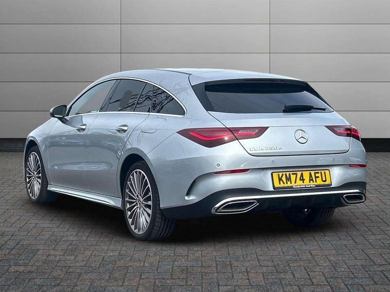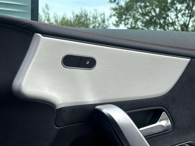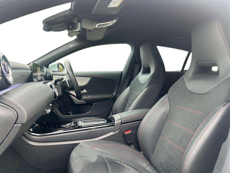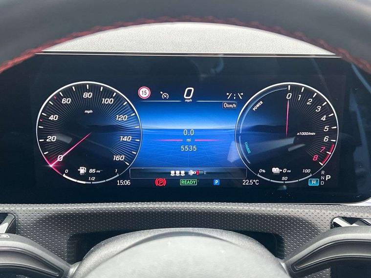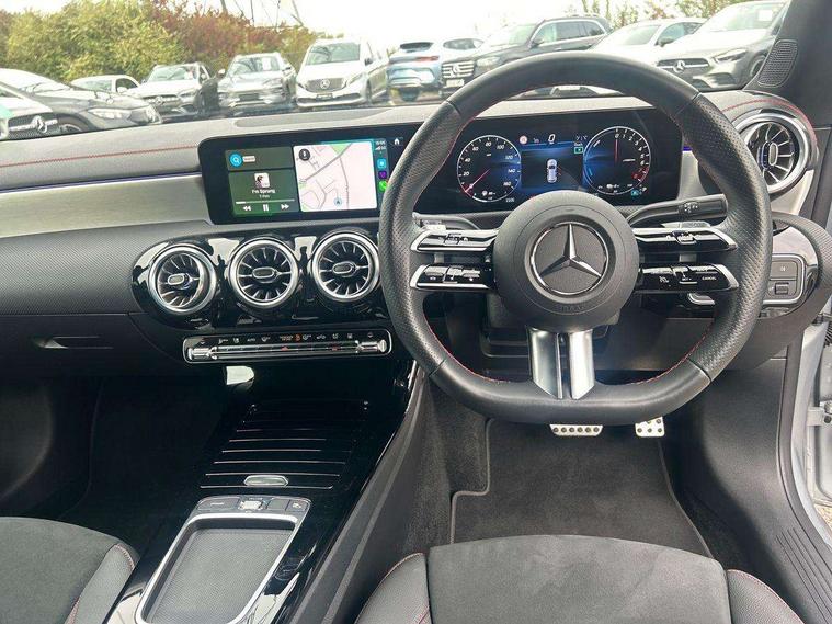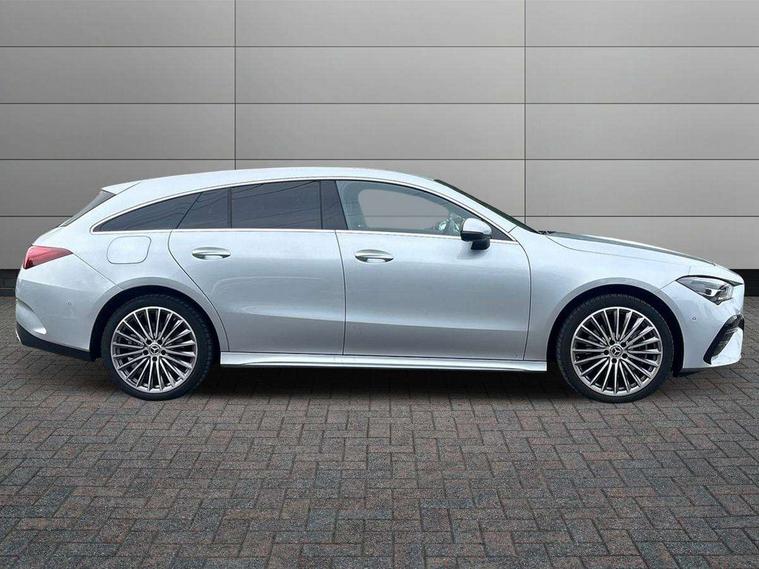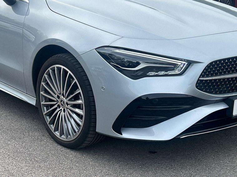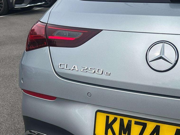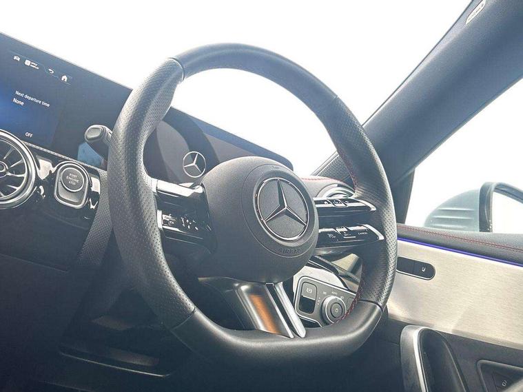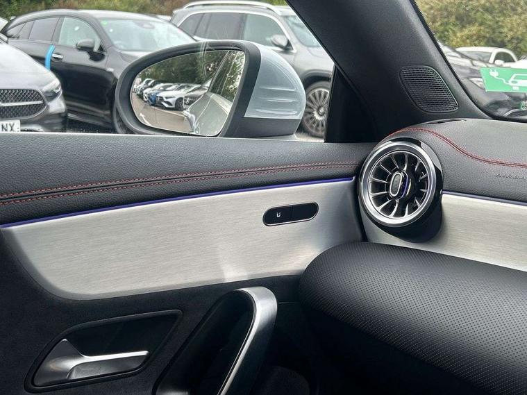 10.25 inch Instrument display with digital cockpit, 10.25 inch touchscreen central media display, Acoustic ambient protection, Active lane keeping assist, Attention assist - Monitors steering behaviour and long journey fatigue, Blind spot assist, Bluetooth connection, Car wash mode, Cruise control with limiter, Direct steer system, DYNAMIC SELECT with a choice of driving modes (ECO, Comfort, Sport and Individual), ECO start/stop function, Fingerprint sensor, Fluid level warning indicator for fuel, oil, coolant and washer fluid, Hard-disk navigation, Hey Mercedes Voice activation, Lamp failure indicator, MBUX augmented reality for navigation, Mercedes me connect including emergency call system, accident recovery, breakdown and maintenance management, Mercedes me remote and charging services plus, Outside temperature gauge, Owners manual in English, Pre-installation of private car share, Radio aerial integrated into front and rear windshields, Service indicator (ASSYST), Smartphone integration with Apple CarPlay and Android auto, Speed limit assist, Tailgate, Trip computer in multifunction display with current consumption indicator, Wireless charging in the front centre console, Charging system - AC charging system rated at 11kW, Charging system - DC charging system rated at 22kW, Comfort suspension, Mode 3 charging cable for wallbox and public charging stations with 5m upto 11kW, Rear axle torsion beam, DAB digital radio tuner, MBUX multimedia system, Mercedes Benz advanced sound system (225 W) with 10 speakers, 1 central speaker, speakers on doors, a tweeter on door, one sub woofer + boost amplifier, Pre installation for Mercedes Benz Link, Adaptive brake lights, AMG body styling with AMG front apron and rear apron and visible exhaust tailpipe in chrome trim elements, Body colour door handles, Electric windows, Electrically adjustable and heated door mirrors with integrated LED indicators, Exhaust system with 2 Visible tailpipe trim elements and rear apron with trim in chrome, Hand free access, Headlamp assist automatic headlamp activation, Heated glass rear windscreen + timer control, High gloss aluminium beltline strips, High level LED third brake light, Interior mirror with black reading lamps and frameless, LED high performance headlamps with integrated LED daytime running lights and adaptive highbeam assist, LED tail lamp, Privacy glass with dark tinting on rear side windows and rear window, Radiator grille with Mercedes-Benz pattern in chrome with central Mercedes star and single louvre with chrome inserts, Rain sensing windscreen wipers with two sensitivity settings, Rear fog lamp, Rear side wing doors, Rear wiper, Variable front intermittent wipers, Window line trim strip in high gloss aluminium, 3 seat bench in 2nd row, 3 twin spoke flattened multifunction steering wheel in nappa leather - horizontal twin spoke in high gloss black, vertical twin spoke in silver chrome, 40:20:40 split folding rear seat backrests, Air conditioning - Two zone thermotronic luxury automatic climate control with display, Air vents with surround in silver chrome, Automatic child seat recognition sensor, Black roof lining, Brushed stainless steel sports pedals with rubber studs, Charging socket, Electrically adjustable front memory seats including 4 way lumbar support, Floor mats with stitched AMG lettering, Fluorescent jacket, Front centre armrest with stowage, Galvanished gear shift paddles in silver chrome, Heated front seats, Illuminated front door sills with Mercedes Benz lettering and changeable cover, Interior lighting - 64 colour Ambient lighting, Luggage net on driver/front passenger seat backrest, Manually height and reach adjustable steering column, Pre-entry climate control, Rear armrest with two integral cup holders for drinks, Rear head restraints, Single front passenger seat, Sport seats with fixed head restraints, Stowage compartment in centre console with retractable cover, Sunvisors with illuminated vanity mirrors, Twin front cupholders, Two outer rear seat isofix and top tether child seat fixing points, Keyless go comfort pack - CLA with easy pack tailgate, Light and sight pack - CLA, Mirror pack - CLA, Parking pack with reversing camera - CLA, Seat comfort pack - CLA, USB package plus - CLA, Active bonnet pedestrain safety measure which detects an impact and raises bonnet by 65mm, Active brake assist includes forward collision warning system with autonomous braking, Adaptive brake assist with hold function and hill start assist, Anti lock braking system (ABS) with brake assist, Black seat belts, Bonnet with power domes, Brake calipers with Mercedes-Benz lettering, Brake pad wear warning indicator, Childproof locks manually operated for rear doors and electrically operated for rear power windows, Crash responsive emergency lighting, Driver and front passenger head and sidebags, Driver and front passenger windowbags, Drivers knee airbag, Dual stage driver and front passenger airbags, Electric parking brake, Electronic stability programme with acceleration skid control, ESP curve dynamic assist, Exit warning, Front and rear seatbelt reminder, Front passenger seat occupancy sensor, Perforated front brake discs, Radar-based recuperation, Sports braking system, Three point rear seat belts, Tyre pressure monitoring system, Warning triangle and first aid kit, Alarm system with immobiliser and interior protection -Thatcham category 1, Guard 360 deg vehicle protection - tow away protection with visual, acoustic warning, interior monitoring, preinstallation for parking damage, Remote central locking and crash sensor with emergency opening function, Light aluminium with longitudinal grain interior trim, 19" AMG multi spoke light alloy wheels painted in titanium grey with high sheen finish, Summer tyres, Tirefit tyre sealant kit,