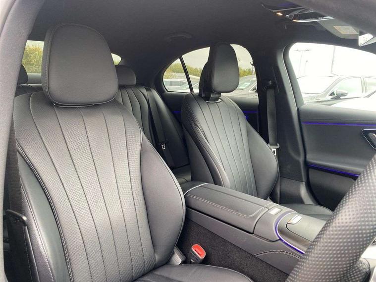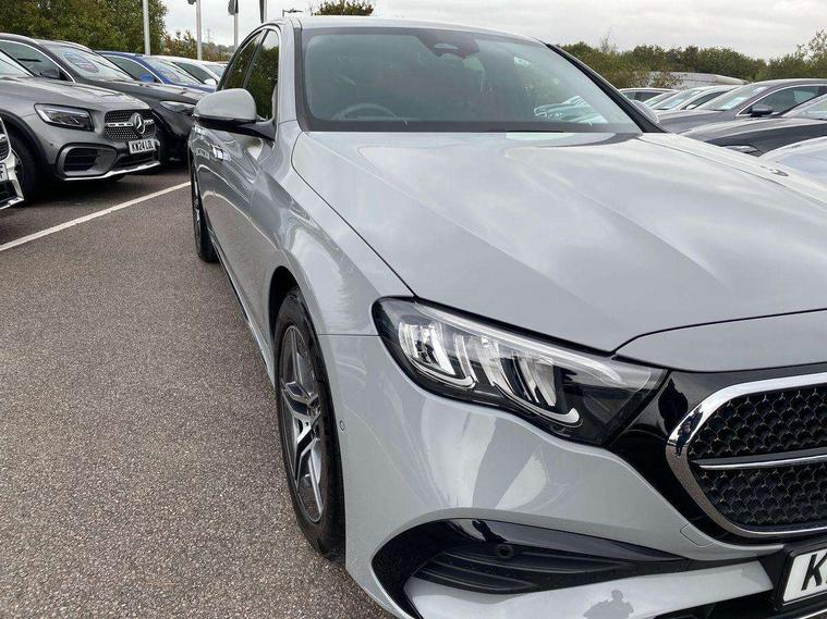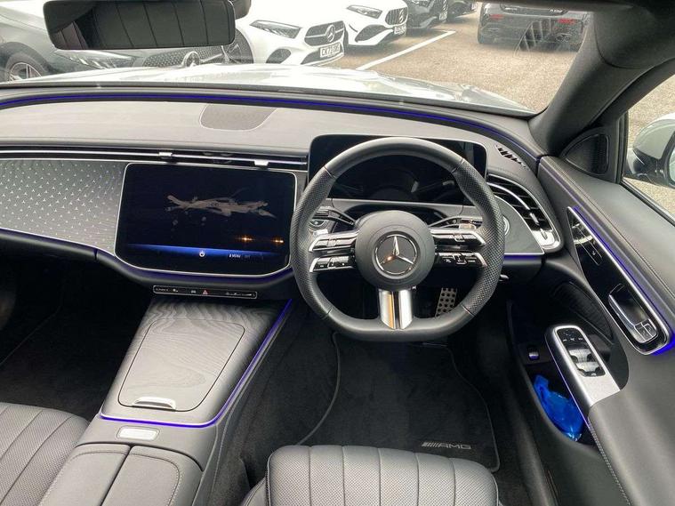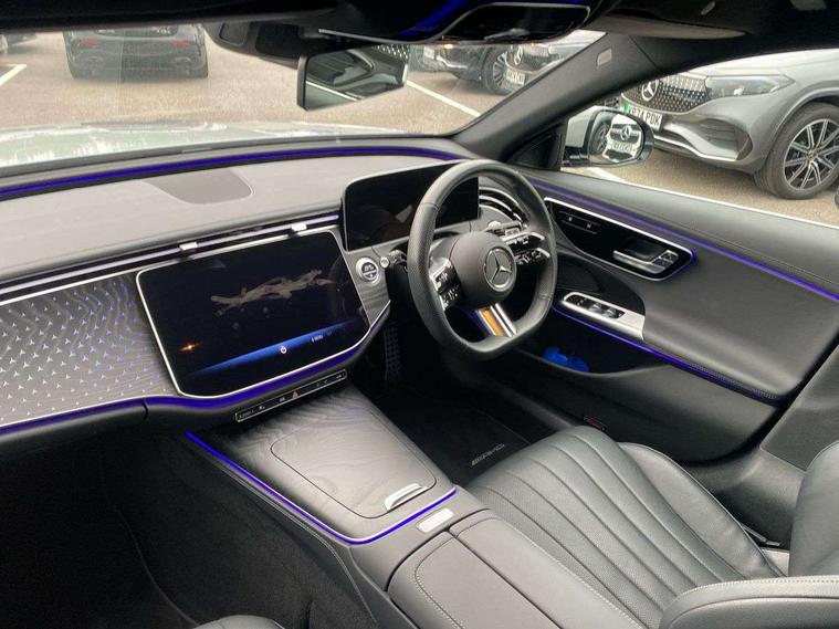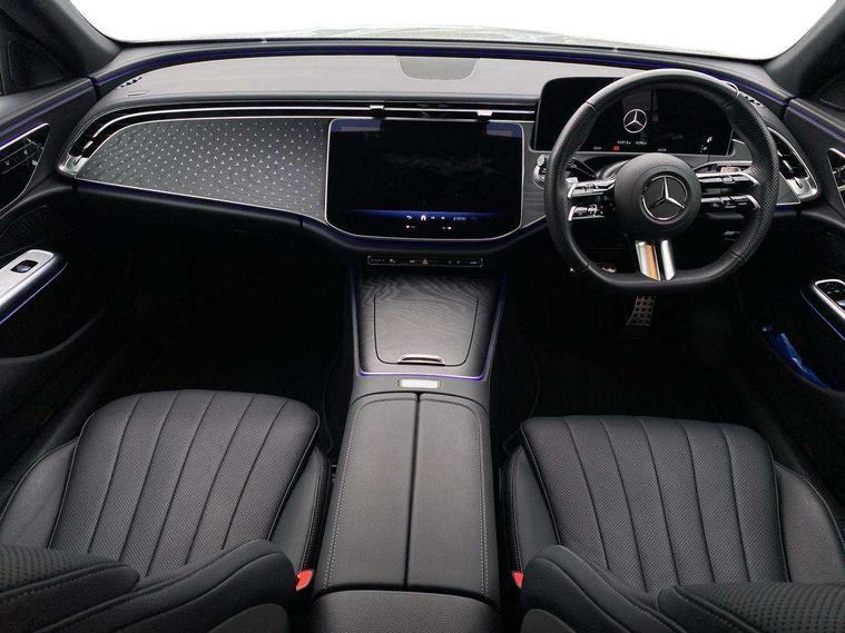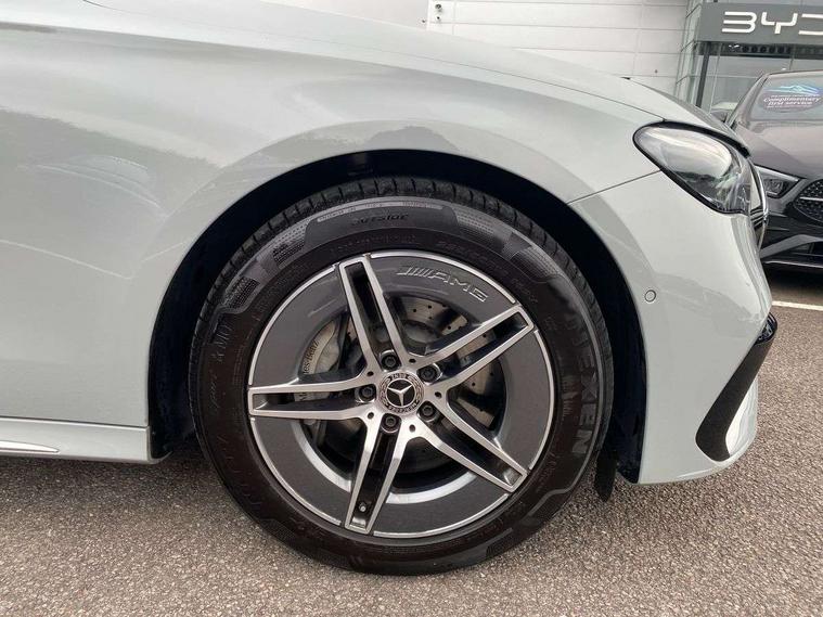 12.3" high resolution cockpit display, 14.4" high resolution central media display with latest MBUX generation, 5G Communications module, Attention assist, Blind spot assist, Bluetooth, Brake wear warning display, Direct steer speed sensitive steering, ECO start/stop function, Evasive manoeuvre support, Fingerprint scanner, Fluorescent jacket for driver, Hard disc navigation, MBUX navigation premium, MBUX voice control, Mercedes me connect including emergency call system, accident recovery, breakdown and maintenance management, Outside temperature display, Preinstallation for live traffic, Remote Services Premium, Service indicator (ASSYST), Status display for rear seat belts in instrument cluster, Trip computer in multifunction display showing current fuel consumption, Wireless charging, Wireless smartphone integration with Apple CarPlay and Android auto, 48V Mild hybrid technology, 66 litre fuel tank with 10 litre reserve, 9G TRONIC automatic transmission, Agility control suspension with selective damping system and lowered by 15mm, Bluetec emission control, Diesel particulate filter, Integrated starter generator Gen 2, Sporty engine sound system, DAB Digital radio, Preinstallation for MBUX Entertainment Plus, 3rd brake light, Adaptive brake lights, Aerial integrated in rear window, AMG Line exterior, Auto dimming driver's door mirror, Auto dimming rear view mirror, Digital air vent control, Electric folding door mirrors, Electric windows with one touch opening/closing and obstruction sensors, Electrically adjustable and heated door mirrors, Heat insulating privacy glass, LED daytime running lights, LED high performance headlights with adaptive highbeam assist, Pre-installation for roof rail systems, Rear boot, Rear side wing doors, Surround lighting with logo projection, 3 seat bench in 2nd row, 4 way lumbar support, Ambient lighting, AMG brushed stainless steel sports pedals with rubber studs, AMG floor mats, AMG line interior, Automatic child seat recognition sensor, Central stowage compartment with USB socket for use with Android Auto and Apple CarPlay, Climatised front seats, Comfort seats, Courtesy lights in rear grab handles with reading light functionality, Folding rear seat backrest, Front centre armrest with stowage compartment, Gearshift paddles in galvanised silver, Glove compartment - lockable, air conditioned and illuminated, Head restraints for driver and front passenger (four-way adjustability) and in rear (two-way), Heated front seats, Instrument panel and door beltlines in artico nappa look leather, Leather upholstery, Multifunction sports steering wheel in nappa leather, Roof liner in black fabric, Seat occupancy sensor for front passenger seat, Single front passenger seat, Steering wheel touch control buttons for audio and onboard settings, Sunvisors with illuminated vanity mirrors, THERMATIC 2 zone automatic climate control, Night pack - E class, Parking package with 180 degree camera - E Class, USB plus package - E Class, 3x3 point rear seatbelts, Active bonnet pedestrian safety measure which detects an impact and raises bonnet, Adaptive brake system with HOLD function and brake drying in the wet, Anti-lock braking system (ABS), Automatic front passenger airbag deactivation, Central airbag, Childproof locks manually operated for rear doors and electrically operated for rear power windows, Driver and adaptive front passenger airbags, Electronic parking brake, Electronic Stability Programme, Hill start assist, ISOFIX child seat attachment points two outer rear seats, Knee airbags, Pedestrian protection, Pre-Safe anticipatory safety system, Tyre pressure monitoring system, Warning triangle and first aid kit, Window airbags, Alarm system/interior protection/immobiliser, Central locking with interior switch, automatic locking and crash sensor with emergency opening function, Guard 360 degree vehicle protection, Increased anti theft protection, Keyless Go, Urban guard vehicle protection plus, Centre console in black open pore ash wood trim and dash trim with laser cut backlit Mercedes-Benz star pattern, 18" AMG 5 twin spoke design alloy wheels painted in tantalite grey, Summer tyres, Tirefit,