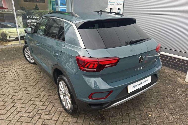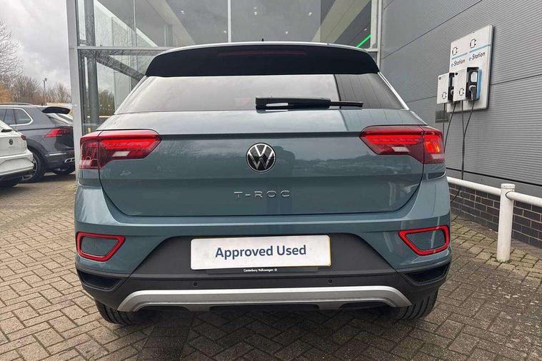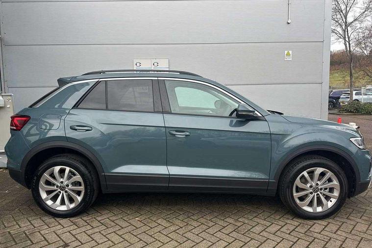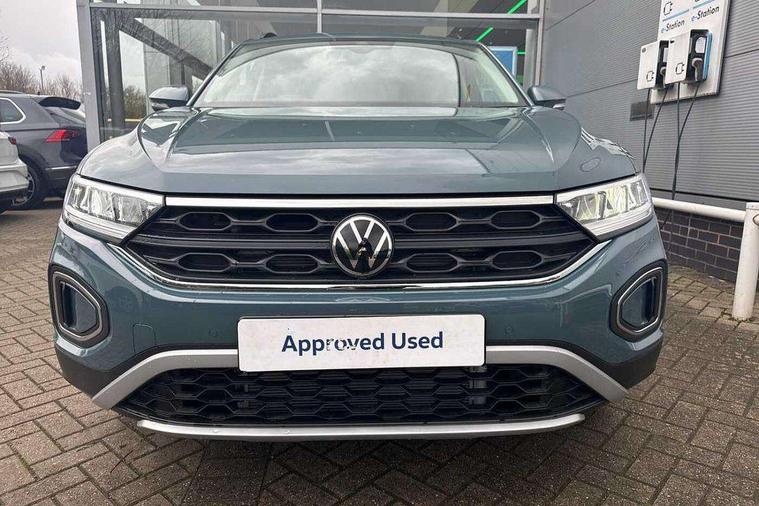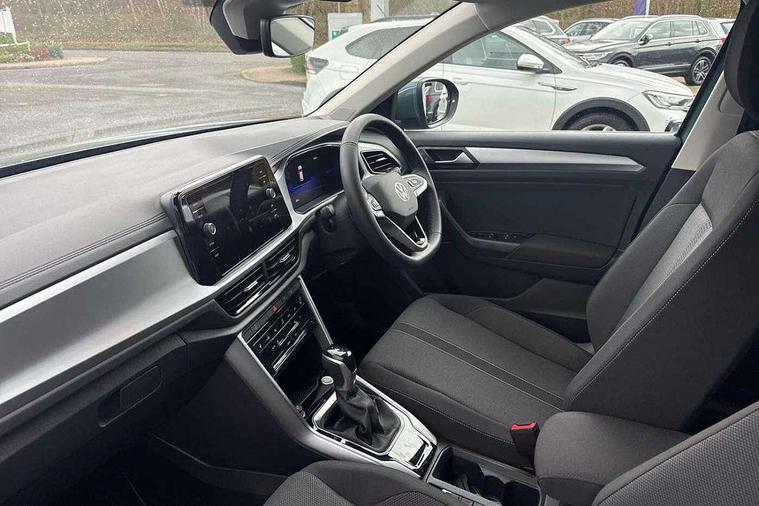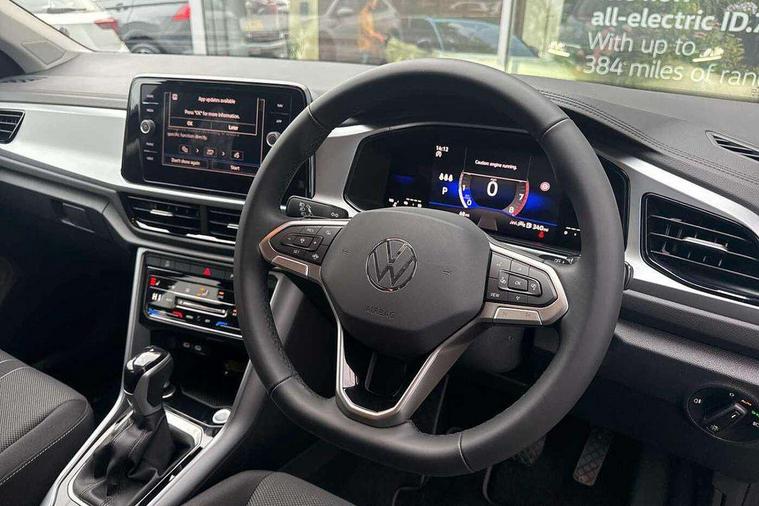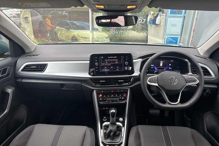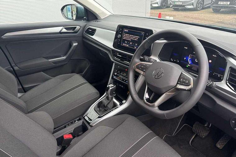 Advanced driver attention and drowsiness monitor, Dynamic road sign display, Emergency call service, Lane keeping system Lane Assist, Mobile phone interface, Modified key software - reduce switch off time for key status change to Long no motion, Online services, Park assist including front and rear parking sensors, Power assisted speed sensitive steering, Rear view camera, Service interval indicator, Tailgate/trunk lid release from outside, Think blue trainer driver tips and journey analysis, Warning sound and light for front seatbelts unfastened, Wireless app connect, Battery regeneration during braking, Front shock absorption, Rear shock absorption chassis with increased ride height, Start/stop function with battery regeneration, DAB Digital radio, Diversity antenna for FM reception, Music playback - MP3, WMA and AAC files, Premium USB cable in choice of either Apple or Android smartphone compatibility, SD card slot, Simultaneous pairing of 2 compatible mobile devices, Title and cover art display, We Connect and We Connect Plus functionality, Auto dimming interior rear view mirror, Automatic hazard lights activation under emergency braking, Automatic headlight control with LED separate daytime running lights with coming/leaving home function, Black roof rails, Body coloured bumpers and radiator grille with chrome trim and front fog lamps with chrome bezel, Body coloured exterior mirror housings and door handles, Electrically adjustable and heated door mirrors, Extended roof spoiler, Exterior mirrors aspherical on driver side, convex on front passenger side, External USB type C socket and charging sockets, Front windscreen wiper with intermittent wipe and 4 position delay, Heated rear window, LED 3rd brake light, LED rear combination lamps, LED rear number plate lights, Power windows with comfort operation and circuit breaker, Privacy glass for rear side windows and rear window, Rain sensor, Rear exhaust tailpipe, Rear fog light on one side and reversing lights on both sides, Rear side wing doors, Rear wash/wipe with intermittent wipe setting, Remote electrically foldable door mirrors, puddle lights and reverse activated passenger's door mirror, 12V power socket in centre console, 3 rear head restraints, 3 seat bench in 2nd row, 4 load lashing points in luggage compartment, Air care climatronic air conditoning system with active combination filter and 2-zone temperature control, Black stitching for floor mats, Ceramique roof liner, Cloth upholstery, Door and side trim panel in cloth, Drawer under drivers seat, Driver/front passenger seat height adjustment, Front centre armrest, Front comfort sports seats, Front cupholders x 2, Front reading light, Front seat back storage pockets, Glove compartment door with light, Instrument lighting, white adjustable panel illumination, Interior ambient lighting and surround lighting, Interior light delay, Isofix child seat preparation, Leather gearshift handle, Load-through provision with cup holder when folded down ('Unsplit rear seat bench, split folding backrest, with centre armrest), Luggage compartment lighting, Lumbar support for driver's and front passengers seat, Non-folding front passenger seat backrest, Single front passenger seat, Storage compartment in left and right luggage area, Storage compartment in rear doors, Storage compartments in driver and front passenger doors, Sunvisors with illuminated vanity mirrors, Variable boot floor, height adjustable and removable, Driver assistance pack without proactive passenger protection - T-Roc Life/Match, 3 point height adj front seatbelts + pretensioners, 3 point seatbelts in outer rear with ECE label, ABS, Child locks on rear doors, City emergency braking and pedestrian monitoring, Driver and front passenger airbag with front passenger airbag deactivation, Driver and front passenger safety-optimised head restraints, Drivers seatbelt reminder, Electronic parking brake, Electronic Stability Control (ESC) inc EDL (Electronic Differential Lock) and ASR (Traction Control), Front and rear passengers curtain airbag system including front side airbags, Front disc brakes, Hill start assist, Predictive pedestrian protection, Rear disc brakes, Two tone horn, Tyre pressure loss indicator, Volkswagen roadside assistance, Alarm with interior protection, Keyless locking and starting system keyless access with safelock, Pewter matt decorative inserts for intrument panel, centre console and door panels at the front, Trims for alloy wheels,