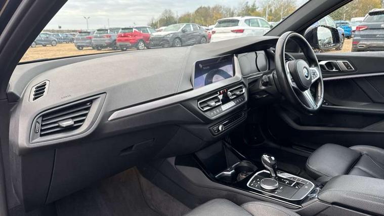 Active guard plus, Attentiveness assist, BMW Online services, BMW Teleservices, Check Control warning system for monitoring of lights and door/luggage compartment open warning, Connected eDrive Services, Eco pro mode, Electric power steering with Servotronic steering optimised at all speed ranges, Integrated owners handbook, Oil sensor for level and grade, On board computer, Optimum shift indicator, Personal Profile, Pull away assistant, Speed limiter, Aluminium lightweight construction, Anti roll bar front and rear, Balancer shaft, Double VANOS, Drive Performance Control, Electronic differential lock, High precision injection, M sports suspension + self levelling, Petrol Particulate Filter, VALVETRONIC engine management, Bluetooth audio streaming, DAB Digital radio, Auto dimming rear view mirror, Automatic headlight beam throw control, Body colour door handles, Body colour mirror caps, Chrome 'M' logo side designation, Chrome exhaust tailpipe in single, round (Exhaust tailpipe, stainless steel - single, round), Chrome kidney grille frame with Satin Aluminium struts, Direction indicator side lights in exterior mirrors, Electric folding and anti dazzle exterior mirrors, Fading support, Follow me home headlights, Front and rear electric windows with open and close fingertip control, anti trap facility and comfort closing, Front door sill finishers in black plastic with BMW designation, Green tinted heat protection glazing, Heated, electrically adjustable exterior mirror aspheric on driver side, convex on passenger side, High gloss shadow line exterior trim, High gloss shadowline window frame, Recess cover mirror frames and B/C pillar embelisher trim, High level third brake light, LED daytime running lights, LED eyebrow turn indicators, LED front fog lights, Lightweight engineering, Matt black air guide grilles, Model designation on right side of tailgate, Nearside reverse light in rear light cluster, Preparation for high beam assistant, Rain sensor including auto headlights activation, Rear fog lights, Rear window wiper, Shark fin antenna, Visible VIN plate, Welcome lighting, Windscreen wipers with integrated washing jets, 12V power socket in centre console, 2 cupholders in front centre console, 3 rear seat head restraints, 3 spoke M sports design leather steering wheel finished in nappa leather with specific M badge, Anthracite headlining, Anthracite Velour floor mats, Child seat ISOFIX attachment for two outer rear seats and front passenger seat with anchorage points, Conditioned based service, Dakota leather upholstery with perforation and contrast stitching, Driver and front passenger seat heating, Driver side folding compartment in instrument panel, Folding rear clothes hook, Folding rear seats, Four grab handles integrated in roof lining, Front and rear door pockets, Front and rear side armrest integrated into door trim, Front Armrest foldable with integrated storage compartment, Front sports seats with electric side bolster adjustment, Glove compartment, Height adjustable front head restraints, Manual adjust steering wheel, Multi-function controls for steering wheel, Rear seat backrest with manual 60:40 split folding with 3 top tether clips integrated on rear of seat panels, Storage compartment in centre console, Sun visors with vanity mirrors and insert tab, Two zone automatic air conditioning, Connected pack professional - 1 Series, Extended Lighting pack - 1 Series, Extended storage pack - 1 Series, Interior lights pack - 1 Series, Luggage compartment pack - 1 Series, M Sport exterior styling aerodynamics pack - 1 Series, 2 tone horn, 3 point seatbelts on all seats, front pyrotechnic belt tensioners, stopper and belt force limiters, rear coded belt buckles, Airbags - Front driver and passenger, front and rear head, front side, curtain head protection, Anti lock braking system (ABS) with brake assist, BMW emergency call, Brake drying, Braking readiness, Crash sensor activating central locking release, hazard warning lights, fuel cut off, interior lighting + activation of safety battery terminal clamp, Driver and front passenger seat belt security check, Dynamic stability control + (DSC+), Dynamic Traction Control - DTC, Electrically operated hand brake, Front and rear disc brakes, Front passenger manual airbag deactivation, Rear child proof door locks, Seatbelt warning, Side impact protection, Tyre pressure monitoring system, Warning triangle and first aid kit, Automatic drive away locking facility, Central locking switch for all doors, fuel filler cap and luggage compartment, Deadlocking function system to all doors, Locking wheel bolts, Remote control with integrated key with High-gloss Black inlay and M designation and 1 button for open/ close lock, window, open luggage compartment, Start/stop button with comfort go keyless engine start and auto start stop deactivation button, Thatcham Cat.1 alarm and immobiliser, Contrast stitching on instrument panel, Reduced rolling resistance tyres,