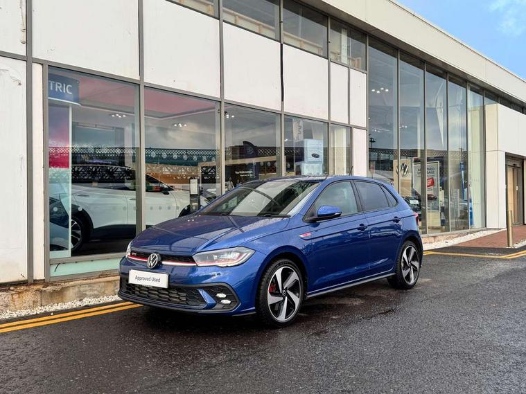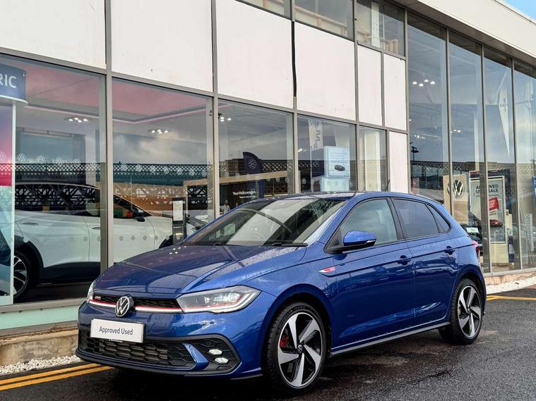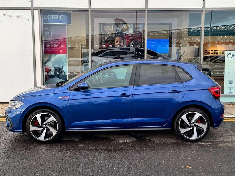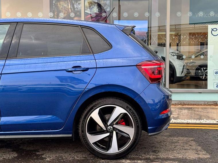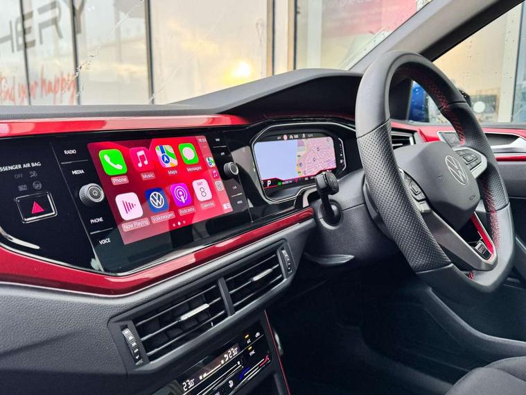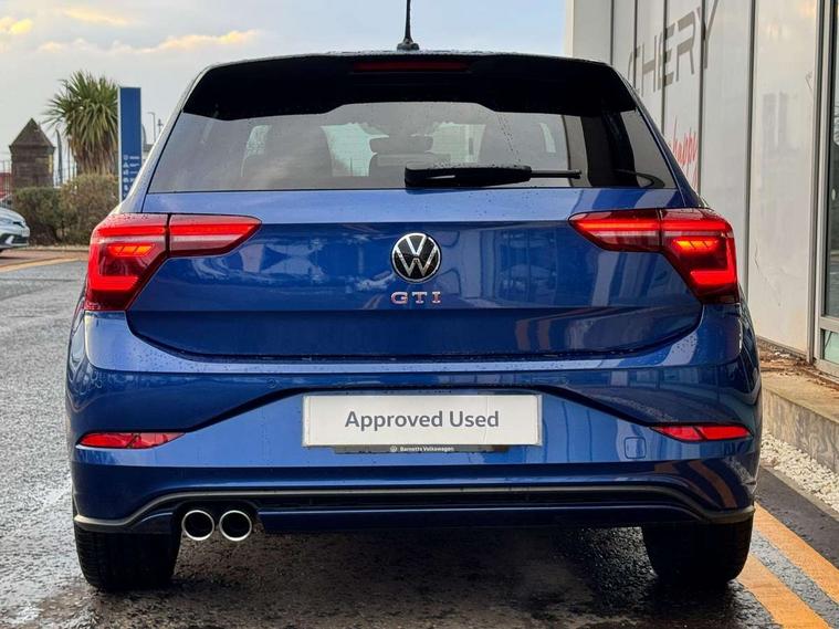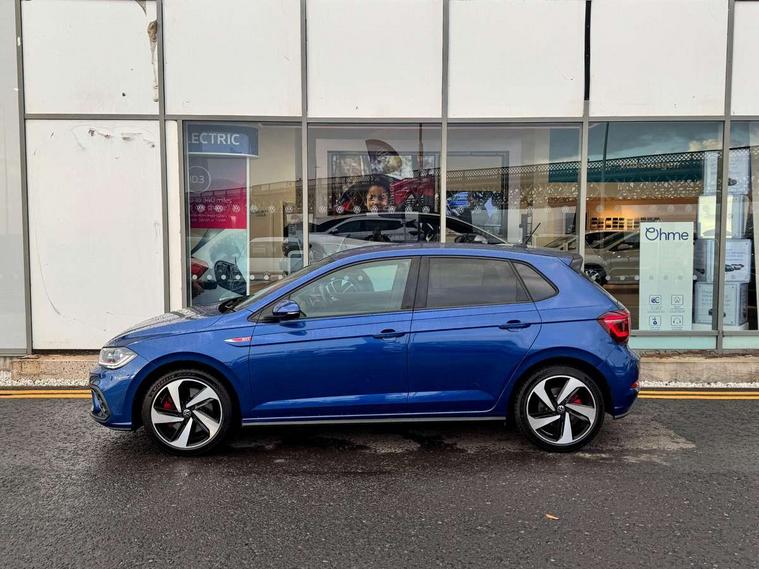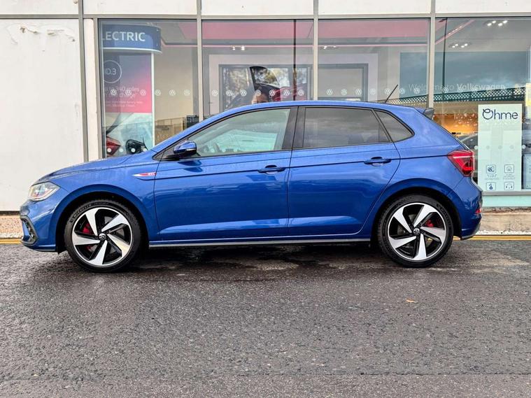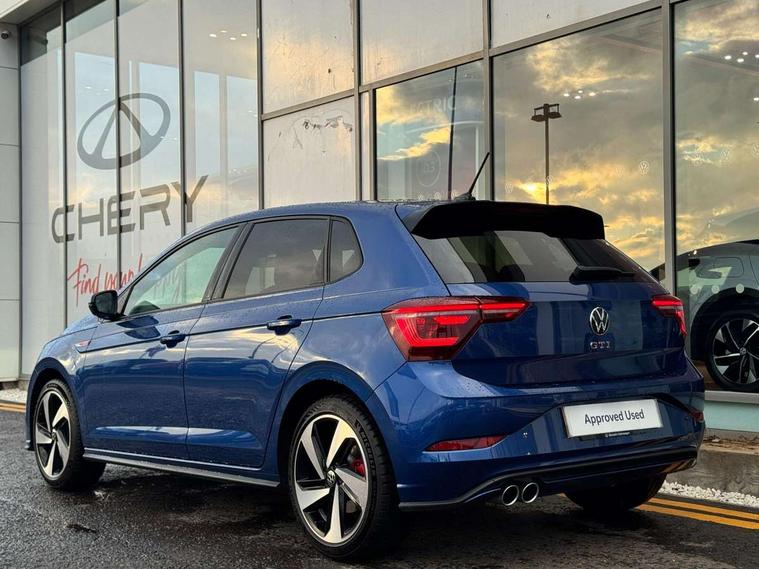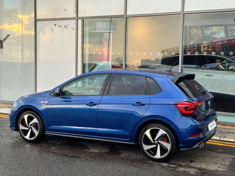Adaptive cruise control with follow-to-stop and speed limiter, Advanced driver attention and drowsiness monitor, Bluetooth mobile phone interface, Digital Cockpit Pro with 10.25" Display, Dynamic road sign display, Eco mode, Emergency call service, Multifunction camera, Power assisted speed sensitive steering, Preparation for We connect and We connect plus, Speedo and rev counter, electronic odometer, trip, service interval display and fuel gauge, Travel Assist - Lane keeping system and traffic jam assist, Travel assist including emergency assist, Trip computer, Warning signal and warning light for front and rear seatbelts not fastened, Washer fluid level indicator, Wireless app connect, Adaptive chassis control, Front wheel drive, Heavy duty rear axle, Rear shock absorpion sports version, Sports select suspension lowered by 15mm, Start-stop system with battery regeneration (recuperation - energy recovery during braking), DAB Digital radio, Diversity antenna for FM reception, Front and rear 6 speakers, Body colour bumpers, Body colour door handles, Electric front windows, Front scuff plates in aluminium with GTI logo, Heat insulating glass windscreen, Power folding adjustable/heated exterior mirrors and front passenger exterior mirror lowering function, Rain sensor, Rear electric windows, Rear fog light, Rear side wing doors, Rear windscreen washer and wiper with interval delay, Sport bumpers with air intakes with honeycomb structure, Third brake light, Twin chrome exhaust tailpipes, 12V power socket in centre console, 2 USB-C ports in the front, 2 USB-C charging sockets on the center console in the rear, 3 rear head restraints, 60/40 split folding rear seat and rear seat bench not split, Air care climatronic air conditoning system with active combination filter and 2-zone temperature control, Black roof lining, Carpet mats, front and rear, Chrome plated radiator grille inserts, air vent surrounds and light switch surrounds, Door and side trim panel, Driver and front passenger seat height adjustment, Driver/passenger sunvisors with illuminated vanity mirrors, Front centre armrest, Front footwell illumination, Front seat backrest storage pockets, GTI sports gearshift knob in aluminium leather, Handbrake lever handle in leather, Headliner in recycled material, Isofix child seat preparation easy-fit (for two outer rear seats, and front passenger seat) compatible with I-size, LED interior light with switch off delay and dimmer, 2 reading lights front and rear, Luggage compartment cover, Luggage compartment floor, Luggage compartment lighting, Lumbar adjustment for front seats, Single front passenger seat, Stainless steel pedals, Standard pedal cluster, Three spoke leather wrapped multifunction sports steering wheel with shifting paddles, IQ LED matrix headlights pack - Polo, Light and sight pack - Polo GTI, 3 point height adj front seatbelts + pretensioners, 3x3 point rear seatbelts, ABS, Driver and front passenger airbag with front passenger airbag deactivation, Drivers and front passengers safety optimised head restraints, ESC (Electronic stability control) + EDL (Electronic Differntial lock) and ASR (Traction control), Extended and predictive pedestrian/ cyclist protection, Front and rear disc brakes with red brake calipers, Front curtain and side airbags with center airbag, Hill hold control, Manual child lock in rear doors, Two tone horn, Tyre pressure loss indicator, Alarm with interior protection, Anti-theft alarm system with interior monitoring, backup horn, and towing protection, Anti-theft wheel bolts, Electronic engine immobiliser, Chrome applications on rotary light, mirror adjustment, window regulator switches, outlet with frame in black, Low rolling resistance tyres,