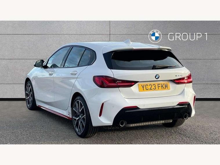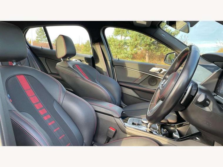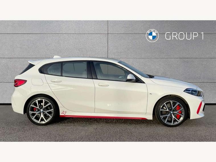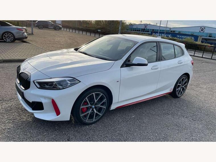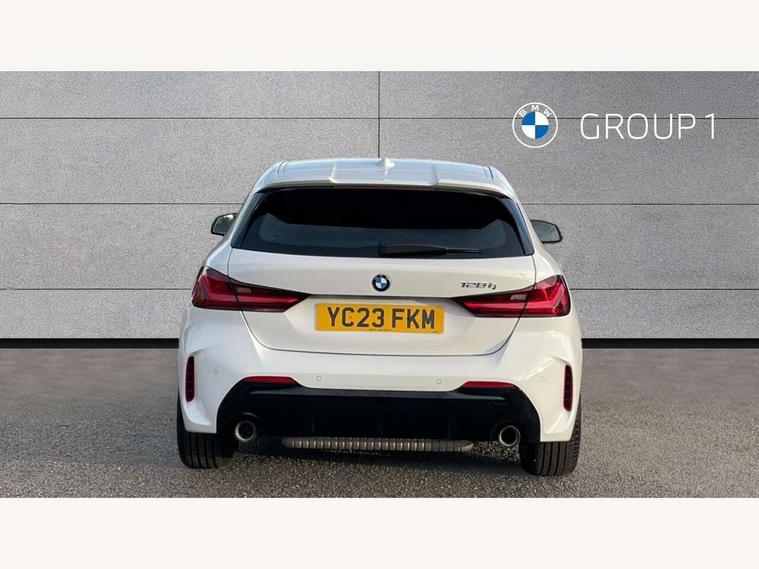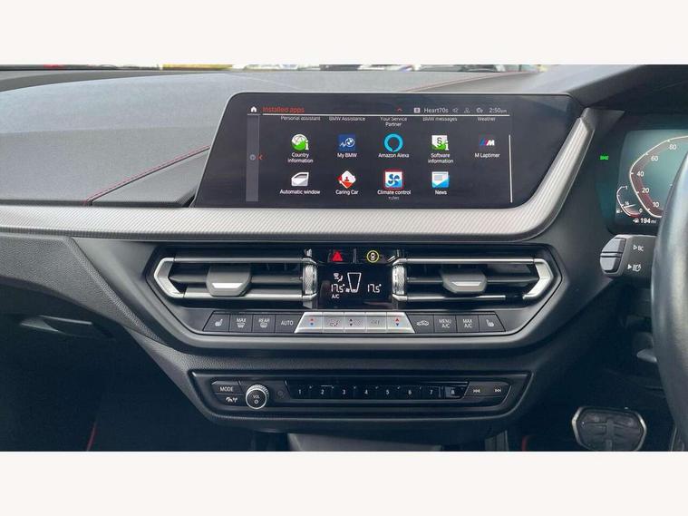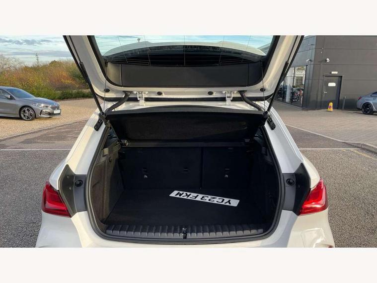 Active guard plus, Attentiveness assist, BMW ConnectedDrive online services, BMW Teleservices, Check Control warning system for monitoring of lights and door/luggage compartment open warning, Cruise control with speed limiter, Eco pro mode, Electric power steering with Servotronic steering optimised at all speed ranges, Front axle single joint with specific axle kinematics to minimise drive influences on steering + provide increased rigidity agile driving behaviour, Integrated owners handbook, Lane departure warning system, Oil sensor for level and grade, On board computer, Optimum shift indicator, Personal Profile, Pull away assistant, Rigidly mounted rear subframe - Multi link construction with separate spring / damper configuration and excellent driving characteristics, Speed limit Info including no-overtaking indicator, Aluminium lightweight construction, Anti roll bar front and rear, Balancer shaft, Double VANOS twin scroll turbocharging system, Drive Performance Control, Eight speed sport automatic transmission with gearshift paddle switches, Electronic differential lock, High precision injection, Larger fuel tank capacity (50 litres), M sport suspension with M128i xDrive specific settings, Petrol Particulate Filter, Twin tube gas filled shock absorbers with degressive characteristic curve, VALVETRONIC engine management, DAB Digital radio, Auto dimming rear view mirror, Automatic headlight beam throw control, Automatic windscreen wipers and automatic headlight, Black chrome tailpipe finishers, BMW individual high gloss shadow line with extended content, Body colour door handles, Body colour mirror caps, Body colour roof trims, Chrome 'M' logo side designation, Chrome kidney grille frame with Satin Aluminium struts, Direction indicator side lights in exterior mirrors, Electrically adjustable exterior mirror with mirror adjustment switch on drivers armrest and aspheric on driver side, convex on passenger side, Fading support, Folding side mirrors with auto dimming/folding wing mirrors with auto dimming, Follow me home headlights, Front and rear bumper system with replaceable deformation elements, Front and rear electric windows with open and close fingertip control, anti trap facility and comfort closing, Front door sill finishers in black plastic with M designation in metallic look, Green tinted heat protection glazing, High gloss shadowline window frame, Recess cover mirror frames and B/C pillar embelisher trim, High level third brake light, Integrated front windscreen with washer jets, Kidney frame and struts in high gloss black extended, LED daytime running lights, LED eyebrow turn indicators, LED front fog lights, Lightweight engineering, Matt black air guide grilles, Matt black wheel arch trim, Model designation on electric bootlid, Nearside reverse light in rear light cluster, Preparation for high beam assistant, Rear fog lights, Rear side wing doors, Rear window wiper, Shark fin antenna, Trailer stabilisation logic, Visible VIN plate, Welcome lighting, 12V power socket in front centre console with blanking plug, 3 rear seat head restraints, 3 seat bench in 2nd row, Anthracite headlining, Black boot net with lashing eyes, Cargo function on 2nd seat row, Child seat ISOFIX attachment for two outer rear seats and front passenger seat with anchorage points, Conditioned based service, Driver and front passenger backrest net on rear, Driver and front passenger seat heating, Driver side folding compartment in instrument panel, Folding rear clothes hook, Four grab handles integrated in roof lining, Front and rear door pockets with bottle holders, Front and rear side armrest integrated into door trim, Front armrest, Front sports seats, Glove compartment, Height adjustable front head restraints, Luggage compartment for bag hooks on left and right, foldable luggage compartment liner and four lashing eyelets, Manual adjust steering wheel, Multi-function controls for steering wheel, Single front passenger seat, Storage compartment in centre console, Storage compartment in luggage compartment, Stowage of the parcel shelf in luggage compartment trim, Sun visors with vanity mirrors and insert tab, Three spoke M sport design multi function leather steering wheel in unique red stitching, Two front centre console cupholders, Two zone automatic air conditioning, Type C two USB ports in rear centre console, Additional interior lighting pack - 1 Series, BMW live cockpit professional pack- 1 Series, Connected pack professional - 1 Series, Interior lights pack - 1 Series, M Sport exterior styling aerodynamics pack - 1 Series, 2 tone horn, 3 point seatbelts on all seats, front pyrotechnic belt tensioners, stopper and belt force limiters, rear coded belt buckles, Airbags - Front driver/passenger, front and rear curtain head protection, front side, manual deactivation of front passenger airbag, Anti lock braking system (ABS) with brake assist, BMW emergency call, Brake drying, Braking readiness, Child proof locking system in rear door, City braking function, Comfort modes, Cornering brake control, Crash sensor activating of airbags, Unlocking doors, hazard warning lights, fuel cut off, interior lighting+activation of safety battery terminal clamp, Driver and front passenger seat belt security check, Dynamic stability control + (DSC+), Dynamic Traction Control - DTC, Electrically operated hand brake including automatic hold function, Front and rear disc brakes, M Sport brakes with red calipers, M Sport seatbelts, Seatbelt warning, Side impact protection, Tyre pressure monitoring system, Warning triangle and first aid kit, Central locking switch for all doors, fuel filler cap and luggage compartment, Deadlocking function system to all doors, Drive away locking system on all doors and luggage compartment with de-activated in iDrive settings, Locking wheel bolts, Remote control with integrated key with High-gloss Black inlay and M designation and 1 button for open/ close lock, window, open luggage compartme