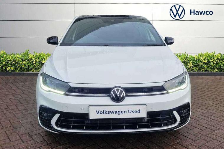 Adaptive cruise control with follow-to-stop and speed limiter, Advanced driver attention and drowsiness monitor, Bluetooth mobile phone interface, Digital Cockpit Pro with 10.25" Display, Dynamic road sign display, Emergency call service, Multifunction camera, Power assisted speed sensitive steering, Preparation for We connect and We connect plus, Speedo and rev counter, electronic odometer, trip, service interval display and fuel gauge, Standard rear axle, Travel Assist - Lane keeping system and traffic jam assist, Travel assist including emergency assist, Trip computer, Warning signal and warning light for front and rear seatbelts not fastened, Washer fluid level indicator, Wireless app connect, Front wheel drive, Rear shock absorpion, Start-stop system with battery regeneration (recuperation - energy recovery during braking), DAB Digital radio, Diversity antenna for FM reception, Front and rear 6 speakers, Body colour bumpers, Body colour door handles, Electric front windows, Front scuff plates with Black edition logo, Heat insulating glass windscreen, Power folding adjustable/heated exterior mirrors and front passenger exterior mirror lowering function, Rear electric windows, Rear fog light, Rear side wing doors, Rear windscreen washer and wiper with interval delay, Third brake light, 12V power socket in centre console, 2 USB-C ports in the front, 2 USB-C charging sockets on the center console in the rear, 3 rear head restraints, 60/40 split folding rear seat and rear seat bench not split, Air care climatronic air conditoning system with active combination filter and 2-zone temperature control, Black roof lining, Carpet mats, front and rear, Chrome plated radiator grille inserts, air vent surrounds and light switch surrounds, Door and side trim panel, Driver and front passenger seat height adjustment, Driver/passenger sunvisors with illuminated vanity mirrors, Front centre armrest, Front footwell illumination, Front seat backrest storage pockets, Front sports comfort seats, Handbrake lever handle in leather, Headliner in recycled material, Heated front seats, Isofix child seat preparation easy-fit (for two outer rear seats, and front passenger seat) compatible with I-size, Karoso artvelours cloth upholstery, Leather trimmed gear knob, LED interior light with switch off delay and dimmer, 2 reading lights front and rear, Luggage compartment cover, Luggage compartment floor, Luggage compartment lighting, Lumbar adjustment for front seats, Single front passenger seat, Stainless steel pedals, Standard pedal cluster, Three spoke leather wrapped multifunction steering wheel with shifting paddles, Black roof pack - Polo, IQ LED matrix headlights pack - Polo, Light and sight pack - Polo R-Line/Black Edition, 3 point height adj front seatbelts + pretensioners, 3x3 point rear seatbelts, ABS, Driver and front passenger airbag with front passenger airbag deactivation, Drivers and front passengers safety optimised head restraints, ESC (Electronic stability control) + EDL (Electronic Differntial lock) and ASR (Traction control), Extended and predictive pedestrian/ cyclist protection, Front curtain and side airbags with center airbag, Front/rear disc brakes, Hill hold control, Manual child lock in rear doors, Single tone horn, Tyre pressure loss indicator, Alarm with interior protection, Anti-theft alarm system with interior monitoring, backup horn, and towing protection, Anti-theft wheel bolts, Electronic engine immobiliser, Black dashboard, Chrome applications on rotary light, mirror adjustment, window regulator switches, outlet with frame in black, Dark grey anodised matt decorative inserts in dash and front door panels, 17" York alloy wheels, Low rolling resistance tyres,