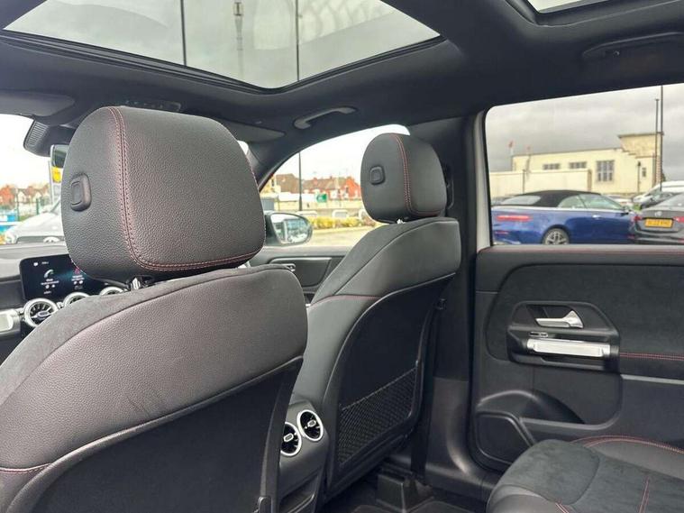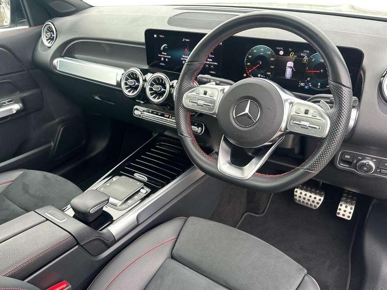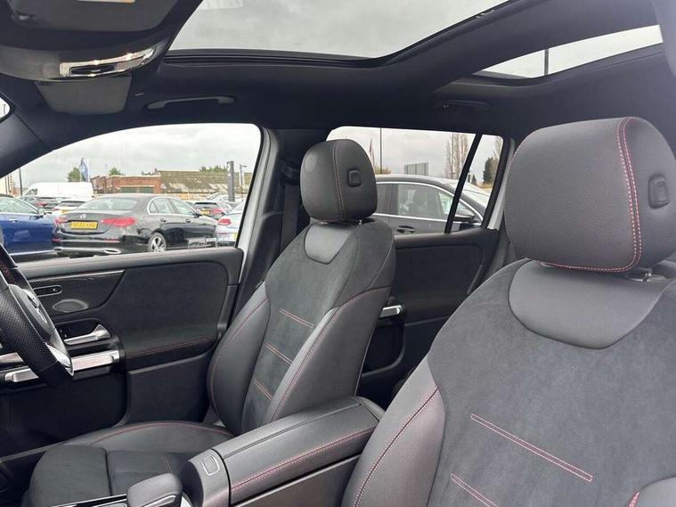 10.25" Digital instrument cluster display screen, 10.25" Digital media screen display, Active lane keeping assist, Attention assist - Monitors steering behaviour and long journey fatigue, Brake pad wear indicator warning light, Car wash mode, Cruise control with limiter, DYNAMIC SELECT with a choice of driving modes (ECO, Comfort, Sport and Individual), ECO start/stop function, Fluid level warning indicator for fuel, oil, coolant and washer fluid, Hard disk navigation, Hey Mercedes Voice activation, Lamp failure indicator, Mercedes me connect including emergency call system, accident recovery, breakdown management and maintenance, Mercedes me remote services, Outside temperature gauge, Owners manual and service booklet in English, Parameter steering system, Pre-installation of private car share, Preinstallation for parking damage notification, Radio aerial integrated into front and rear windshields, Service indicator (ASSYST), Smartphone integration with Apple CarPlay and Android auto, Speed limit assist, Traffic sign assist, Trip computer in multifunction display with current consumption indicator, 23.8 litre AdBlue fuel tank, Comfort suspension, Rear axle multi-link, DAB digital radio tuner, MBUX multimedia system with DAB digital radio and touchpad including satellite navigation, Mercedes Benz sound system (225 W) with 10 speakers, 1 central speaker, speakers on doors, a tweeter on door, one sub woofer + boost amplifier, Pre installation for Mercedes Benz Link, USB (type C) port in front stowage compartment, USB (type C) ports (2) in stowage compartment, Adaptive brake lights, Aerial for GPS, AMG bodystyling door panels black grained with chrome plated inserts, AMG bodystyling front apron with chrome splitter, AMG bodystyling rear apron with diffuser optics and chrome trim element, AMG specific front and rear bumper including underride guard in high gloss chrome, Auto headlights, Beltline strips and weather strip in chrome, Black door mirrors, Black roof rails, Body coloured bumpers, Body coloured door handles with chrome insert for keyless entry, Electric adjustable and heated door mirrors with integrated LED side indicators, Electric panoramic glass sunroof, Exhaust system with dual flow exhaust pipes (non-functional), Front and rear electric windows, Headlamp assist automatic headlamp activation, Heated glass rear windscreen + timer control, High level LED third brake light, Interior mirror with black reading lamps and frameless, LED daytime running lights, Multibeam LED headlamps and tail lamp with adaptive high beam assist, Privacy glass with dark tinting on rear side windows and rear window, Radiator grille with pins in chrome and single louvre with chrome insert, Rain sensor windscreen wipers, Rear fog lamp, Rear side wing doors, Rear wiper, Two visible tailpipe trim elements exhaust, 3 seat bench in 2nd row, 3 spoke multifunction sport steering wheel in nappa leather, Air conditioning - Two zone thermotronic luxury automatic climate control with display, AMG sports pedals with brushed stainless steel surfaces and black rubber studs, Artico man-made leather/Microcut microfibre upholstery with red contrast stitching, Automatic child seat recognition sensor, Black floor mats with AMG lettering, Black roof lining, Electrically adjustable front memory seats including lumbar support, Fore/aft adjustment rear seats, Freight packaging with tie-down hooks, Front centre armrest with stowage, Front door sills with illuminated changeable cover, Front passenger grab handle with brushed side silver chrome, Galvanished gear shift paddles on steering wheel, Heated front seats, Height/reach adjustable steering column, Interior lighting - 64 colour Ambient lighting, Luggage net on driver/front passenger seat backrest, Net in front passenger footwell, Rear armrest with two integral cup holders for drinks, Rear seat easy entry, Single front passenger seat, Sports seats with adjustable head restraints, Stowage compartment in centre console, Stowage compartment with retractable cover, Third row of seats for two people on rear seat, Touchpad on center console, Twin front cup holders, Two outer rear seat isofix and top tether child seat fixing points, Interior lighting with light and sight pack - GLB, Keyless go comfort pack - GLB with easy pack tailgate, Memory package - GLB, Mirror pack - GLB, Off-road engineering package - GLB, Parking pack - GLB, 3 rear 3 point seatbelts, Active bonnet pedestrain safety measure which detects an impact and raises bonnet by 65mm, Active brake assist includes forward collision warning system with autonomous braking, Adaptive brake assist with hold function and hill start assist, Airbags - kneebag for driver, Anti-lock braking system (ABS) with brake assist, Childproof locks manually operated for rear doors and electrically operated for rear power windows, Crash responsive emergency lighting, Curve dynamic assist, Driver and front passenger head and sidebags, Driver and front passenger windowbags, Dual stage driver and front passenger airbags, Electronic parking brake, Electronic stability programme with acceleration skid control, Front and rear seatbelt reminder, Front brake callipers with Mercedes Benz lettering, Front passenger seat occupancy sensor, Perforated and ventilated front brake discs, Tyre pressure monitoring system, Warning triangle and first aid kit, Guard 360 degree vehicle protection - Anti theft alarm system, tow away protection with visual, acoustic warning and alarm, Interior monitoring system, KEYLESS-GO Spanner communicates with the vehicle within two metres of the door, Remote central locking and crash sensor with emergency opening function, Thatcham category 1 alarm system with immobiliser and interior protection, Vehicle key with decorative surround in chrome, Black air vents with chrome surround, Carbon structure trim, 20" AMG multi spoke light alloy wheels painted in high gloss black with high sheen rim flange, Summer tyres, Tirefit tyre se