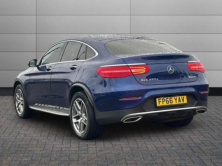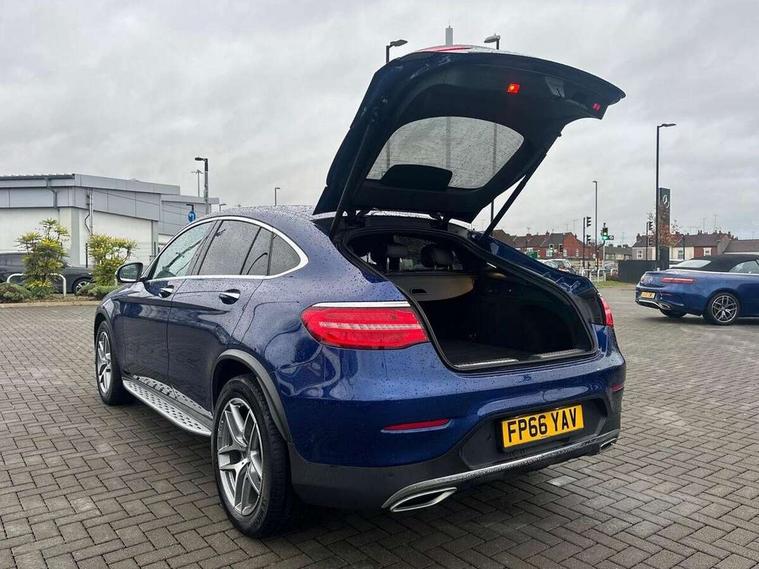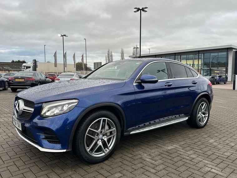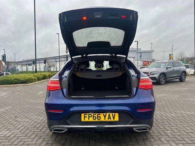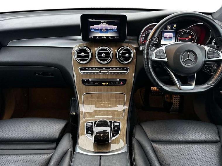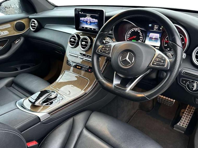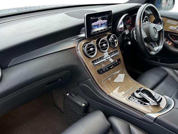 7" colour screen, Active park assist with parktronic system, Attention assist, Bluetooth interface for hands free telephone, Collision prevention assist plus, Crosswind Assist, Cruise control with speedtronic variable speed limiter, DYNAMIC SELECT with a choice of driving modes (ECO, Comfort, Sport, Sport+ and Individual), Garmin Map Pilot navigation system with SD card, touchpad and voice control, Instrument cluster with 5.5-inch TFT multi-function display, Multi function trip computer, Outside temperature gauge, Power opening/closing tailgate, Remote boot release, Service indicator (ASSYST), Speed sensitive steering, Diesel particulate filter, 5 speakers, DAB Digital radio, Frontbass loudspeakers, Mercedes Audio 20 radio/single CD + telephone keypad, USB connection, Adaptive brake lights, AMG bodystyling, Automatic headlights, Body coloured bumpers, Electric windows one touch open/close, Electrically adjustable and heated door mirrors, Exhaust tailpipe finisher, Headlamp assist, Heated windscreen washers, LED daytime running lights, LED rear lamps, Privacy glass (to rear of B post), Rain sensor windscreen wipers, Range adjustable headlights, Rear wiper, Tinted glass all round, 2 cupholders in front centre console, 2 way rear head restraints, 3 spoke flat bottom AMG steering wheel in nappa leather, 4 way adjustable front head restraints, 4 way electric lumbar support for driver and front passenger, 40:20:40 split folding rear seats, Ambient lighting, AMG floor mats, Auto Mercedes-Benz child seat recognition sensor, Automatic climate control, Black roof lining, Electric front seat height adjustment, Gearshift paddles, Heated front seats, Height/reach adjustable steering column, Illuminated glovebox, Multifunction steering wheel, Rear top tether child seat ISOFIX attachment, Sports pedals with stainless steel surfaces and rubber studs, Sunvisors with illuminated vanity mirrors, Easy-pack load compartment cover, Interior lighting pack - GLC, Memory pack - GLC, Mirror pack - GLC, Storage pack - GLC, 3 rear 3 point seatbelts, ABS with Brake Assist, Active bonnet, Adaptive brake system, Brake calipers with Mercedes-Benz lettering + perforated brake discs, Child proof door locks, Drivers knee airbag, Dual stage driver/passenger airbags, Electronic parking brake, ESP with ASR, Front and rear seatbelt reminder, Front passenger seat occupancy sensor, Front side airbags, Tyre pressure monitoring system, Warning triangle and first aid kit, Window airbags, Alarm system/interior protection/immobiliser, Automatic door locking, Keyless entry and keyless start, Tyre inflation kit,