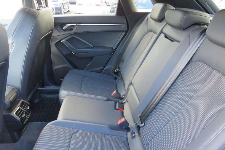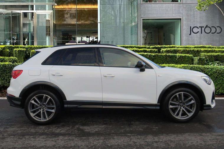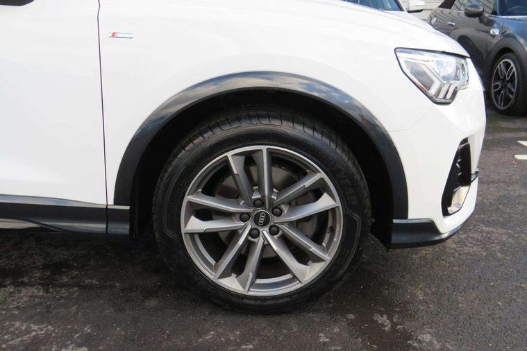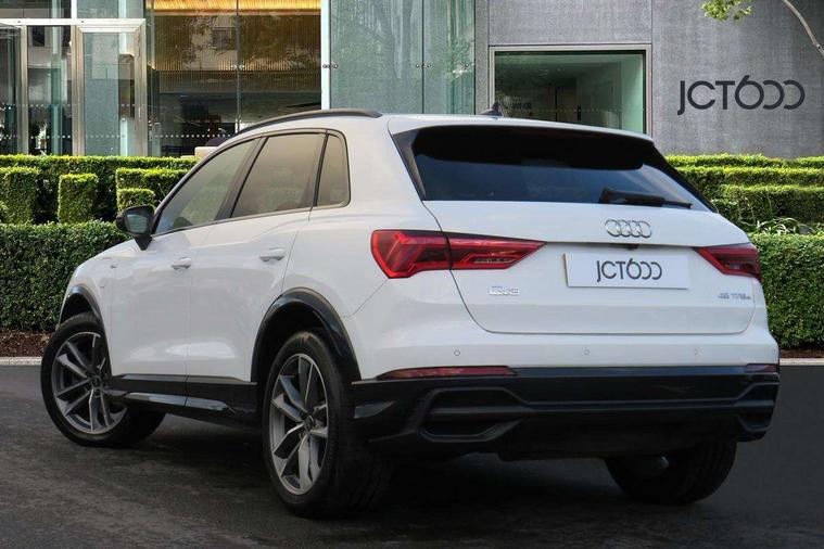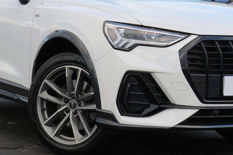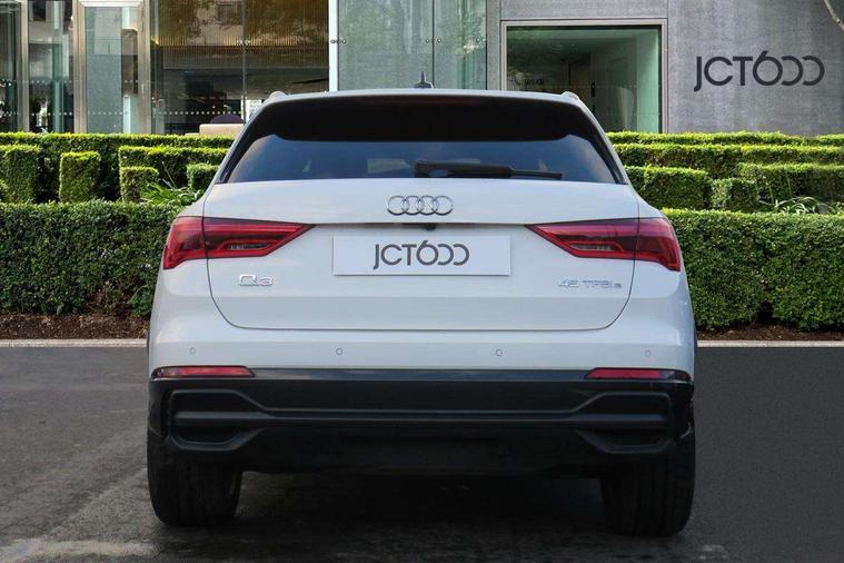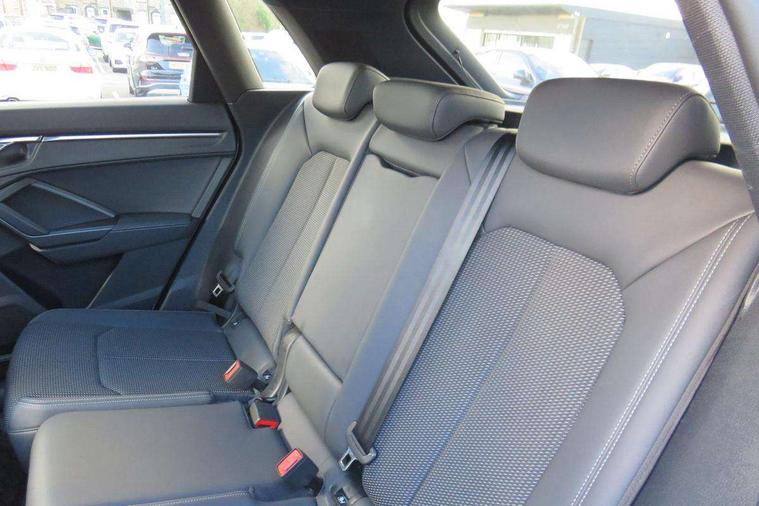 Amazon alexa Integration, Audi drive select, Audi lane departure warning, Audi smartphone interface includes wireless Apple carplay/Android Auto, Audi Virtual Cockpit - 10.25" display, Bluetooth interface, Camera based traffic sign recognition, Legal emergency call, MMI Navigation Plus with high resolution 10.1 inch touchscreen colour display, Power operated tailgate, Progressive steering, Service interval indicator, Start stop system with recuperation, Voice control system with natural language interaction, 3 pin 10 amp domestic charging cable, 3.6 kw On-board charger, Type 2 mode 3 32 amp charging cable, Type 2 socket for AC charging, 2 USB-C ports with charge and data functions, 6 passive loudspeakers, DAB digital radio module, Acoustic windscreen, Auto dimming frameless rear view mirror, Black roof rails, Electrically folding, adjustable and heated door mirrors with integrated LED side indicators and kerb view function for passenger side, Front and rear electric windows, Front fog lights, Grille vertical bars in aluminium silver/Matt, High gloss black finish B and C pillars, LED Dynamic rear indicators, LED headlights with LED daytime running lights, LED rear lights, LED third brake light, Privacy glass dark tinted rear and rear-side windows (from B-pillar backwards), Rain and light sensors, Rear diffuser grille in grained matt black, Rear diffuser strip in matt titanium black, Rear side wing doors, Rear wiper, S line bumpers in contrasting Manhattan grey, Variable front intermittent wipers, 12V socket in rear centre console, 3 seat bench in 2nd row, 40:20:40 folding with manual adjustment for 60:40 forwards/backwards position and backrest angle, Adjustable rear seat bench/backrest with centre armrest and cupholder, Black cloth headlining, Dual zone electronic climate control, Front and rear black floor mats with contrast stitching in rock grey, Front and rear headrests, Front and rear roof module including reading lights, Front centre armrest, Glove compartment lighting, Height and reach adjustable steering wheel, Illuminated door sill trims with S logo, ISOFIX child seat mounting for front passenger with airbag deactivation and outer rear seat including top tether attachment point for outer rear seats, Luggage compartment light, Manual front seats with height adjustment, Perforated leather gearknob, Single front passenger seat, Stainless steel luggage compartment sill finisher, Stainless steel pedals, Tool kit, Ambient lighting pack - Q3, Black styling pack - Q3, Non smoking pack - Q3, 3x3 point rear seatbelts, 6 airbags - Driver, front passenger, curtain and side windows, Electrically operated child locks on rear doors, Electromechanical parking brake, Electronic stabilisation control including ABS, ASR and EDL, Front seatbelt reminder, Hill descent control, Hill hold assist, Pre sense basic, Seatbelt monitoring, Tyre pressure warning, Warning triangle and first aid kit, Anti theft alarm, Anti theft wheel bolts, Audi pre-sense front with pedestrain and cyclist recognition, Immobiliser, Remote central locking, Leatherette door armrest, MMI touch colour display in glass look, black with surround in aluminium look, Piano black inlay, Tyre repair kit,