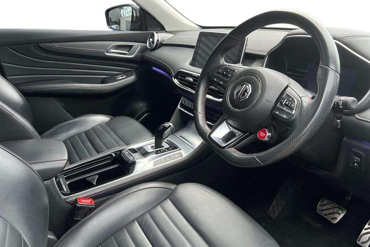 10.1" colour touchscreen, Adaptive cruise control, Android Auto, Apple CarPlay, Blind spot detection, Bluetooth connectivity, Driving modes, Emergency call service, Full digital driver information display, Intelligent speed limit assist, Lane keep assist system (LAS) with Lane departure warning system (LDWS), PAS, Power tailgate, Rear cross traffic alert, Rear parking camera, Rear parking sensors, Satellite navigation system, Tailgate, Traffic jam assist, Trip computer, USB mobile phone charging function, 4 USB ports 2 front and 2 rear, 6 speaker audio system, DAB audio, Auto dimming rear view mirror, Automatic headlights, Body colour electric adjustable heated door mirrors, Electric folding door mirrors, Follow me home headlights, Front and rear aero wiper, Front and rear electric windows with one-touch up/down, Intelligent high beam, LED Bi-Function headlights, LED centre brake light, LED daytime running lights, LED front and rear sequential indicators, Rain sensing wipers, Rear privacy glass, Rear side wing doors, Silver roof rails, 12V power sockets, 2nd row 60/40 split fold seat, 2nd row seat with 2 stage incline adjustment, 3 rear headrests, 3 seat bench in 2nd row, 4 way electric adjustable passenger seat, 6 way electric adjustable drivers seat + lumbar support, Ambient lighting (adjustable colour), Dual zone automatic air conditioning, Front centre sliding armrest with storage compartment, Front headrests, Heated front seats, Height and reach adjustable steering wheel, ISOFIX restraints on outer rear seats x2, Leather steering wheel, Metal sports pedals, Single passenger seat, Sports Style Front Seats with One-Piece Back, Steering wheel paddle shift, 3x3 point rear seatbelts, ABS/EBD, Active emergency braking with pedestrian/Bicycle detection, Anti rolling protection, Cornering brake control (CBC), Drivers seatbelt reminder, Dual front airbags, Electric parking brake with auto hold function, ESP, Front and rear passenger seat belt reminder, Front passenger airbag deactivation switch, Front seat belt height adjuster, Front seatbelts (3-point + pretensioner + load limiter), Front side airbags, Hill descent control, Hill launch assist, Manual rear child locks, Rear outer seatbelt pretensioner and load limiter, Side curtain airbags, Tyre pressure monitoring system, Alarm system and engine immobiliser, Keyless entry and push button start system, Remote central locking, Speed sensing door locks, 18" Diamond cut alloy wheels, Tyre repair kit,