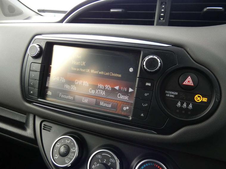 Bluetooth system, Cruise control, Electric boot release, External temperature gauge, Fuel indicator with low level warning, Lights on warning, Rear view camera, Remote fuel flap release, Speed sensitive power steering, Tachometer, Trip computer, 6 speakers, Auxiliary input socket, DAB Digital radio, MP3 player, Radio, Steering wheel mounted audio controls, Touch screen audio system, USB connection, 2 speed front wipers + intermittent wipe, Body colour heated door mirrors, Chrome fog light surround, Chrome grille surround, Colour keyed bumpers, Colour keyed door handles, Drivers window one touch up/down, Electric front windows, Electrically adjustable door mirrors, Follow me home headlights, Front fog lights, Green tinted glass, Headlamp levelling, Heated rear windscreen, LED daytime running lights, LED rear lights, Privacy glass, Projector headlamps, Rear spoiler, Rear wiper, 12V Accessory socket, 60/40 split folding rear seat, Boot light, Clean air filter, Driver seat height adjust, Driver's glovebox with lid, Driver/passenger vanity mirrors with covers, Front cupholders x 2, Front map reading lights, Front seats with lumbar support, Gioco cloth upholstery, Height adjustable front head restraints, Height adjustable rear seat head restraints (x3), Interior silver door handles, Isofix system on outer rear seats, Leather gear knob, Leather steering wheel, Rear cupholder, Removable rear parcel shelf, Tilt/telescopic steering column, 3 point seatbelts on all rear seats, ABS+EBD+Brake assist, Collapsible pedal support, Curtain airbags, Door open warning, Driver and passenger airbags, Drivers knee airbag, Front side airbags, Height adjustable front seatbelts with pre-tensioners and load limiters, Passenger airbag deactivate switch, Rear child proof door locks, Seatbelt warning lamp and buzzer, Tyre pressure monitoring system, Vehicle stability control VSC + traction control, Ventilated front disc brakes, Engine immobiliser, Remote central locking, Instrument panel in grey, 16" Machined alloy wheels, Space saver spare wheel,