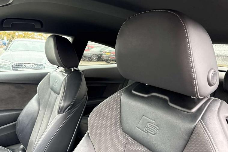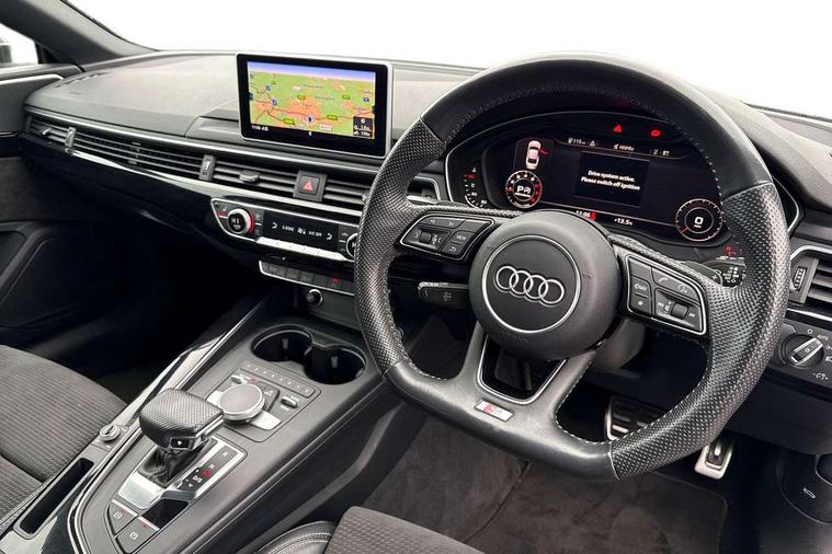 7" Colour driver information system, Audi connect, Audi drive select, Audi parking system plus with front and rear sensors, Audi smartphone interface, Automatic start-stop system with coasting functionality and efficiency programme, Bluetooth interface, Electric boot release, Electro-mechanical power steering, MMI Navigation, Service interval indicator, Voice control system, 2 x USB charging port with aux input socket, CD player, DAB Digital radio, Two SDXC card slots, Air inlets in titanium black with matt aluminium inlay, Auto dimming rear view mirror, Body colour bumpers, Chrome plated exhaust pipe, Electric adjustable heated door mirrors, Electric front windows, Front fog lights, High beam assistant, High gloss black door mirrors, Rain and light sensors, Rear diffuser in Twilight grey matt with honeycomb grille, S Line body styling, S line sill plates, S style high gloss black rear spoiler, Side and rear windows privacy glass, Titanium black frame and radiator grille, Titanium black front and rear air intakes, Titanium black window surround, Windscreen with acoustic glazing, 3 spoke flat bottom high multi-function leather steering wheel, 40/20/40 split folding 2 seater rear seat bench with rear centre armrest, Adjustable steering column, Black headlining, Black perforated leather gearknob, Centre console with cupholders, Contrast stitching on seats, steering wheel and gear lever gaiter, Deluxe 3 zone electronic climate control, Front centre armrest, Front head restraints, Front/rear floor mats, Gearshift paddles, Illuminated door sills, ISOFIX child seat mounting and top tether, Jack and tool kit, Luggage compartment mat, Rear headrests, S embossed logo on front sport seats, Stainless steel pedals and foot rest, Non Smokers pack, 6 airbags - Driver, front passenger, curtain and side airbags, Electromechanical parking brake, Electronic Stabilisation Control (ESC) including ABS, ASR and EDL, Front passenger airbag deactivation, Height adjustable front seatbelts, Hill hold function, Multi-Collision braking, Pop-up bonnet for pedestrian protection, Pre sense city, Seatbelt monitoring, Tyre pressure warning, Variable restraint system, Warning triangle and first aid kit, Anti theft alarm system, Anti theft wheel bolts, Immobiliser, Keyless Go, Remote central locking, Piano black finish inlay, 20" 5 arm rotor alloy design wheels with matt titanium finish, Tyre repair kit,