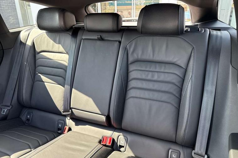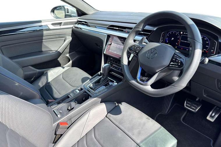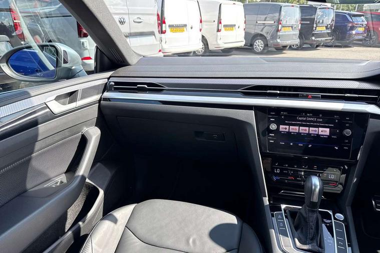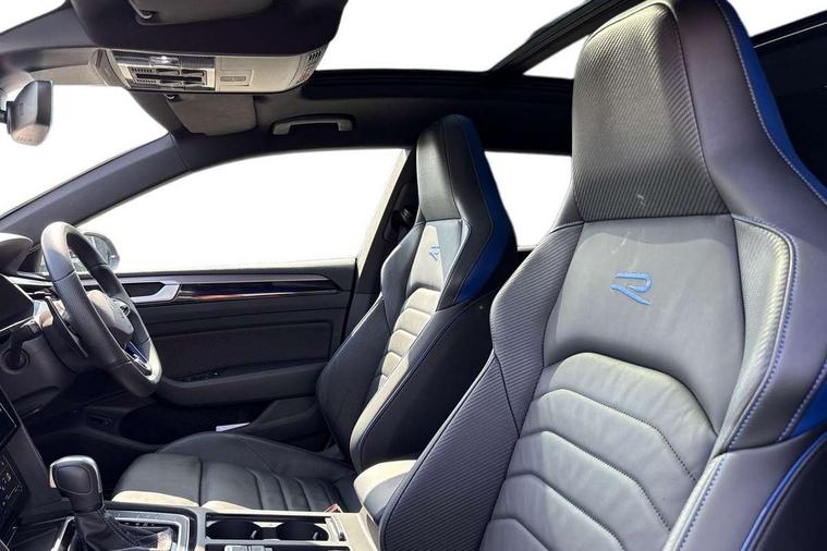 Adaptive cruise control (ACC) with speed limiter, front assist (reacting vehicles pedestrian and cyclists) and follow to stop, Advanced driver attention and drowsiness monitor, App connect including wireless Apple CarPlay, Camera for warning system, Digital cockpit with 10.25" high resolution TFT display screen with customisable menus and information, Driver profile selection including ECO function, Dynamic road sign display, eCall - Emergency call service for SOS calls to emergency response, Emergency assist, Hands free boot opening, Press and drive key, Progressive steering, R driving mode button on steering wheel, Side scan lane change assist including rear cross traffic alert, Speedo and rev counter, electronic odometer, trip, service interval display and exterior temperature gauge, Tailgate, Travel assist - Lane keeping assist and traffic jam assist, Voice activation for telephone and navigation, All wheel drive - 4Motion, Start/stop function with battery regeneration, XDS electronic differential lock, External, USB type C data sockets with increased charging performance front (45 Watt), Premium USB cable in choice of either Apple or Android smartphone compatibility, Auto dimming interior rear view mirror, Automatic coming/leaving home lighting function, Automatic headlights, Body colour door handles, Body colour side skirt, Body coloured top and matt black lower door mirrors with integrated indicators, Chrome side window surrounds, Dynamic headlight range control, Electric folding door mirror, adjustable, heated with front passenger exterior mirror lowering function, Front and rear electric windows, Front and rear stainless steel door sill protection, Front windscreen washers and wipers with 4x interval delay, Heat insulating side and rear windows, Heated rear windscreen, Heated windscreen washer jets, LED 3rd brake light, LED rear combination lamp with dynamic indicators, LED rear number plate lights, Left and right chrome effect twin trapezoid exhaust tailpipe surrounds, Panoramic sunroof with tilting and sliding including integrated roller blind, R Line design body coloured bumpers, R logo light projection, R logo on radiator grille, side panels and rear, R specific radiator grille, R specific rear bumper and R specific diffusor in black, Rain sensor, Rear fog lamp on one side and reversing lamp on both sides, Rear side wing doors, Rear tinted glass from B pillar backwards, approx 65% tinted, Rear windscreen washer and wiper with interval delay, Roof spoiler, 12V socket in front centre console, 12V socket on rear of front centre armrest, 14way electric adj front seats with lumbar + ergoComfort driver seat with memory/massage, comfort entry, integrated front headrest + door mirror memory, 3 rear head restraints, 3 seat bench in 2nd row, 30 colours options interior ambient lighting, 60:40 split folding rear seat backrests with centre armrest, Air care climatronic 3 Zone electronic air conditioning with automatic air recirculation, Chrome trim on upper and lower air vents extending across cockpit, Driver and front passenger sunvisor with vanity mirror, Front cupholders x 2, Front footwell illumination, Glovebox, Heated front seats, Height/reach adjust steering wheel, Isofix child seat preparation easy fit for two outer rear seats, Luggage compartment lighting, Nappa leather upholstery with side bolster and headrest, Pedals and footrest in stainless steel, Premium sports seats with R-logo, R performance leather wrapped heated multi-function sports steering wheel with touch controls and larger shifting paddles, blue stitching and R-logo, R specific floor mats with R-logo and stitching, Removable luggage compartment cover, Single front passenger seat, Split folding front seat backrest with front centre armrest, Titanium black roof lining, Two LED front reading light, 18" performance brakes, 3 rear three point seatbelts, ABS+EBD+Brake assist, Child locks on rear doors, Driver airbag and front passenger airbags with deactivation switch including driver knee airbags, Electronic parking brake, Electronic stability control (ESC) and Electromechanical brake booster, Front disc brakes, Front side airbags with curtain airbags, Hill start assist, Pro active occupant protection to detect critical situations with elevated accident potential from the front, R performance torque vectoring, R specific blue brake calipers, Rear disc brakes, Three point height adjust front seatbelts + pretensioners, Two tone horn, Tyre pressure monitor, Warning buzzer for seatbelts if unfastened, Warning triangle, Alarm with interior protection with deactivation via infotainment system, Electronic engine immobiliser, Keyless entry system including start/stop button on centre console, Remote central locking, Aluminium decorative inserts, Chrome trim on lower doors in front and rear, Leatherette insert on door and side trim panel in foam film, Piano black decorative inserts in centre console, R specific decor inlay aluminium black carbon,