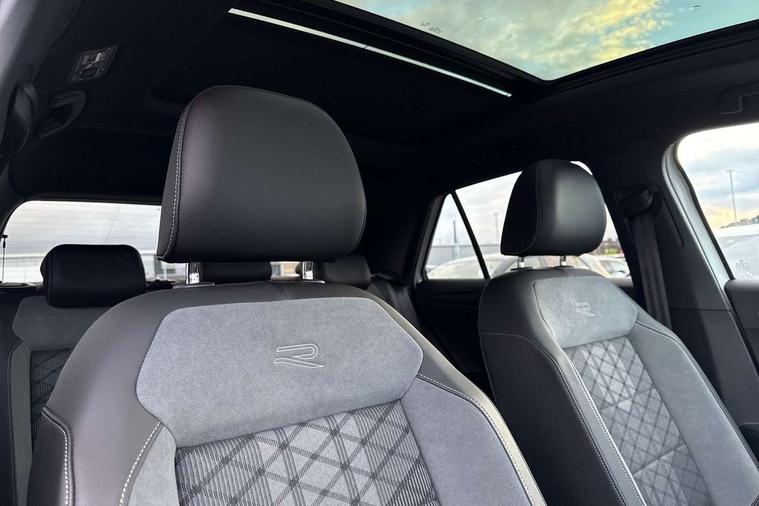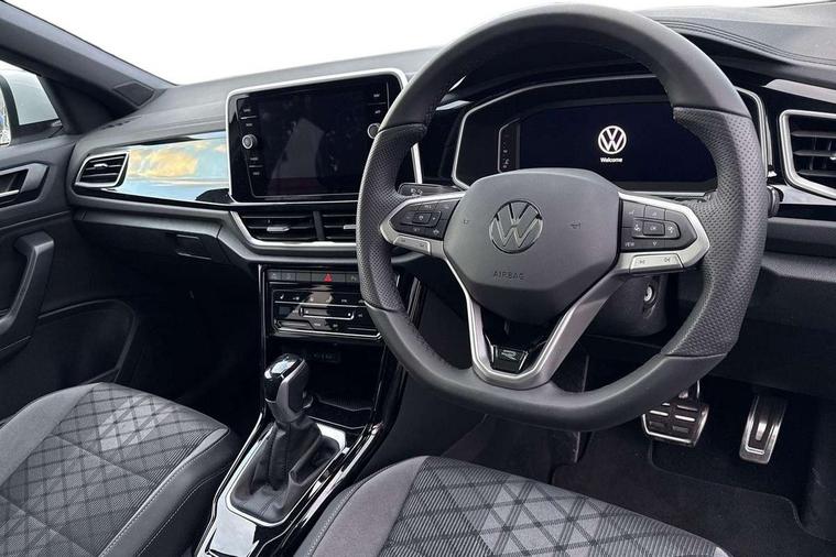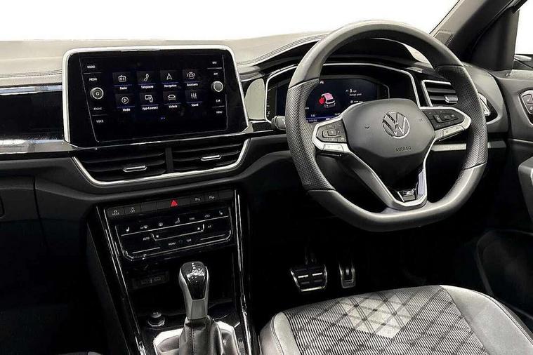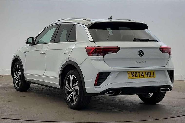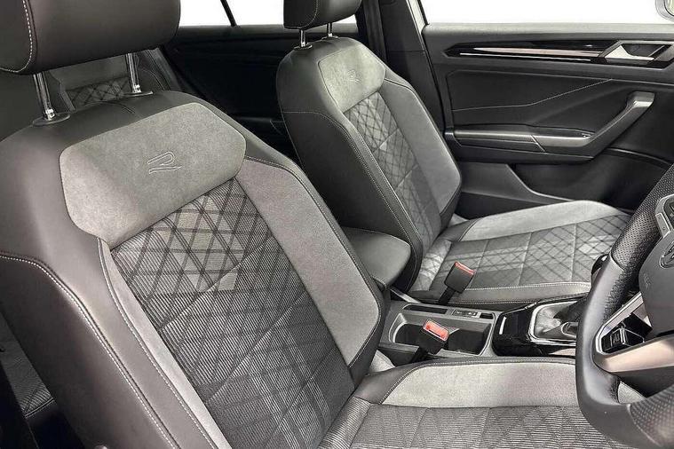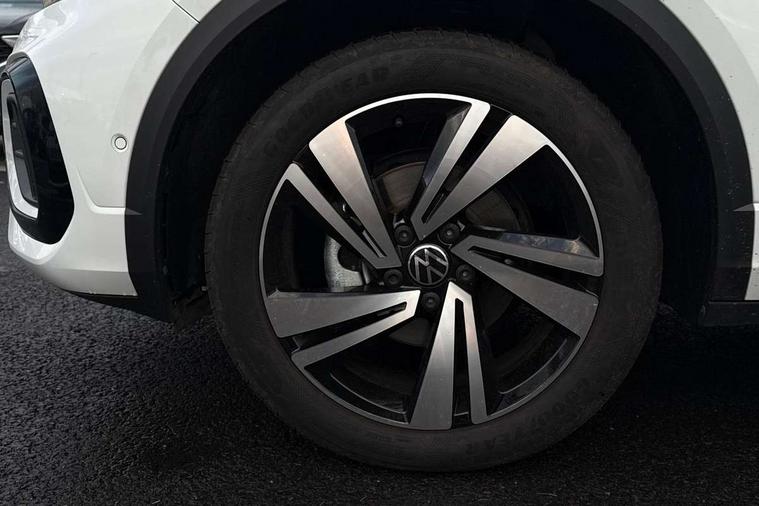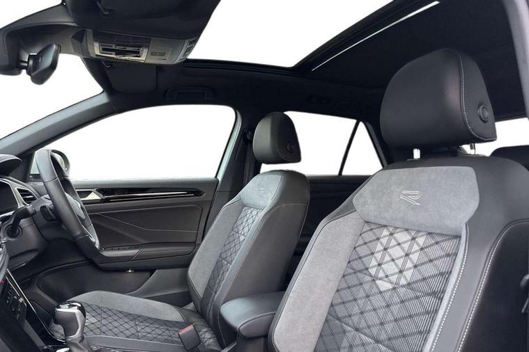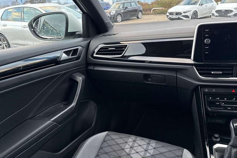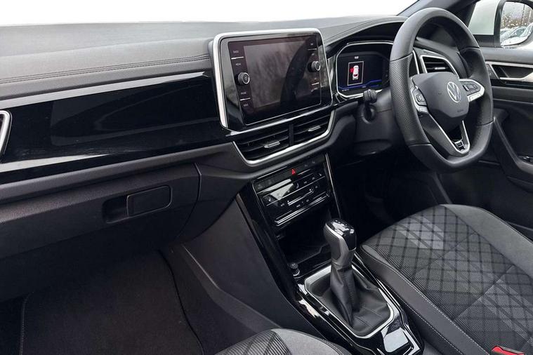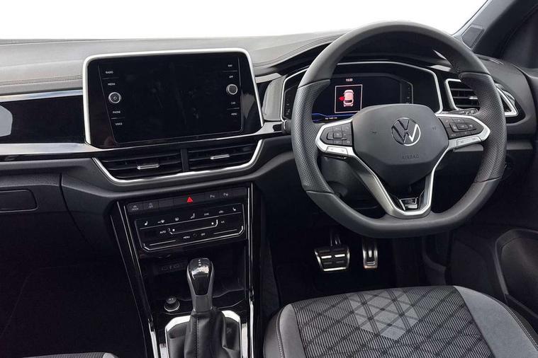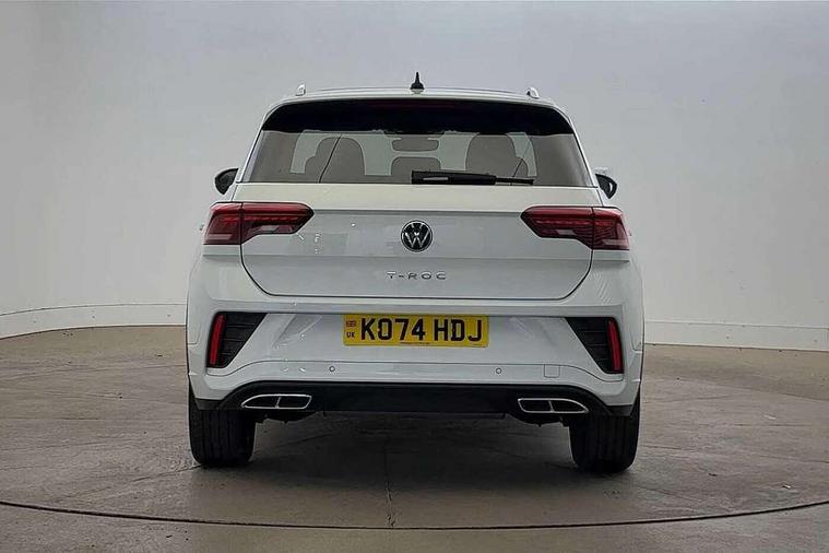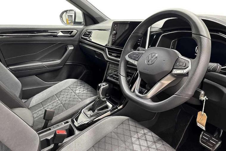 10.25" Digital cockpit pro, Advanced driver attention and drowsiness monitor, Emergency call service, Lane keeping system Lane Assist, Mobile phone interface, Modified key software - reduce switch off time for key status change to Long no motion, Online services, Park assist including front and rear parking sensors, Service interval indicator, Tailgate/trunk lid release from outside, Think blue trainer driver tips and journey analysis, Warning sound and light for front seatbelts unfastened, Wireless app connect, Battery regeneration during braking, Start/stop function with battery regeneration, DAB Digital radio, Diversity antenna for FM reception, Front and rear 6 speakers, Music playback - MP3, WMA and AAC files, Premium USB cable in choice of either Apple or Android smartphone compatibility, SD card slot, Simultaneous pairing of 2 compatible mobile devices, Title and cover art display, We Connect and We Connect Plus functionality, Auto dimming interior rear view mirror, Automatic hazard lights activation under emergency braking, Automatic headlight control with LED separate daytime running lights with coming/leaving home function, Body coloured exterior mirror housings and door handles, Electrically adjustable and heated door mirrors, Extended roof spoiler, Exterior mirrors aspherical on driver side, convex on front passenger side, External USB type C socket and charging sockets, Front windscreen wiper with intermittent wipe and 4 position delay, Heated rear window, LED 3rd brake light, LED rear combination lamps, LED rear number plate lights, Power windows with comfort operation and circuit breaker, Privacy glass for rear side windows and rear window, R-Line design body coloured bumpers, Rain sensor, Rear exhaust tailpipe, Rear fog light on one side and reversing lights on both sides, Rear side wing doors, Rear wash/wipe with intermittent wipe setting, Remote electrically foldable door mirrors, puddle lights and reverse activated passenger's door mirror, 12V power socket in centre console, 3 rear head restraints, 3 seat bench in 2nd row, 4 load lashing points in luggage compartment, Air care climatronic air conditoning system with active combination filter and 2-zone temperature control, Black roof lining, Chrome plated decorative trims, Chrome plated radiator grille inserts, air vent surrounds and light switch surrounds, Door and side trim panel with leatherette insert, Front + rear carpet mats, Front centre armrest, Front cupholders x 2, Front footwell illumination, Front reading light, Front scuff plates with R Line logo, Front seat back storage pockets, Glove compartment door with light, Instrument lighting, white adjustable panel illumination, Interior ambient lighting and surround lighting, Interior light delay, Isofix child seat preparation, Leather gearshift handle, Load-through provision with cup holder when folded down ('Unsplit rear seat bench, split folding backrest, with centre armrest), Luggage compartment lighting, Single front passenger seat, Stainless steel pedals, Storage compartment in left and right luggage area, Storage compartment in rear doors, Storage compartments in driver and front passenger doors, Sunvisors with illuminated vanity mirrors, Variable boot floor, height adjustable and removable, Driver assistance pack without proactive passenger protection - T-Roc, 3 point height adj front seatbelts + pretensioners, 3 point seatbelts in outer rear with ECE label, ABS, Child locks on rear doors, City emergency braking and pedestrian monitoring, Driver and front passenger airbag with front passenger airbag deactivation, Driver and front passenger safety-optimised head restraints, Drivers seatbelt reminder, Electronic parking brake, Electronic Stability Control (ESC) inc EDL (Electronic Differential Lock) and ASR (Traction Control), Front and rear passengers curtain airbag system including front side airbags, Hill start assist, Predictive pedestrian protection, Rear disc brakes, Two tone horn, Tyre pressure loss indicator, Volkswagen roadside assistance, Piano black decorative inserts in dashboard and front door trim panels, Trims for alloy wheels,