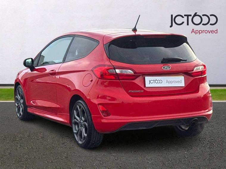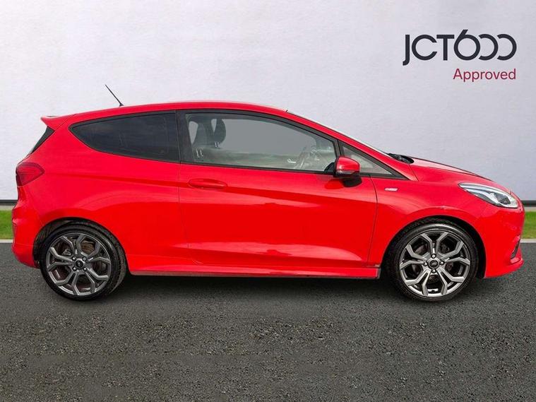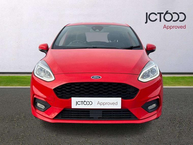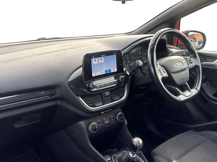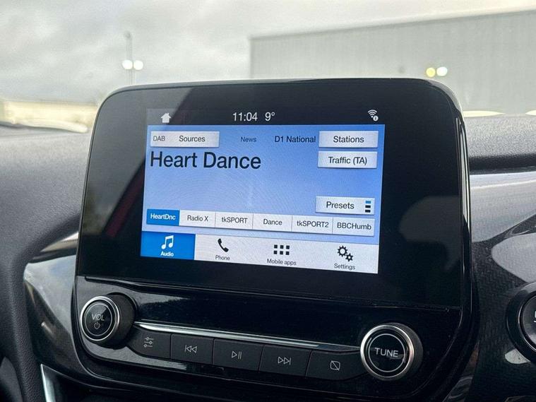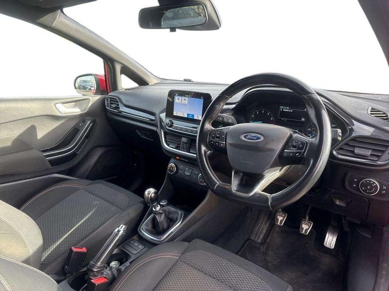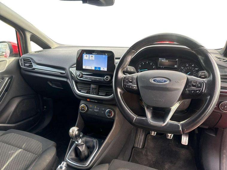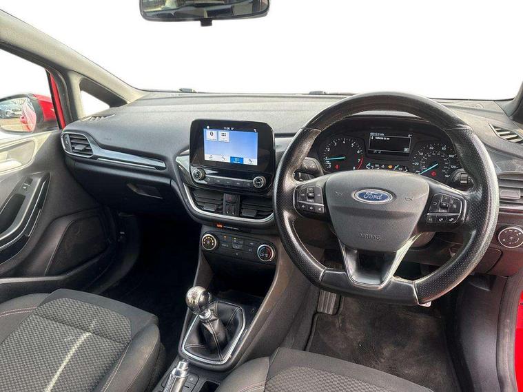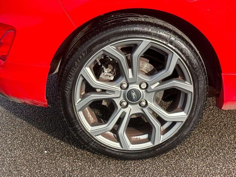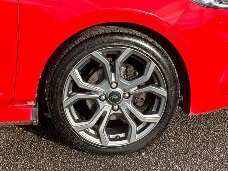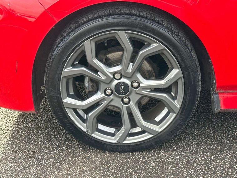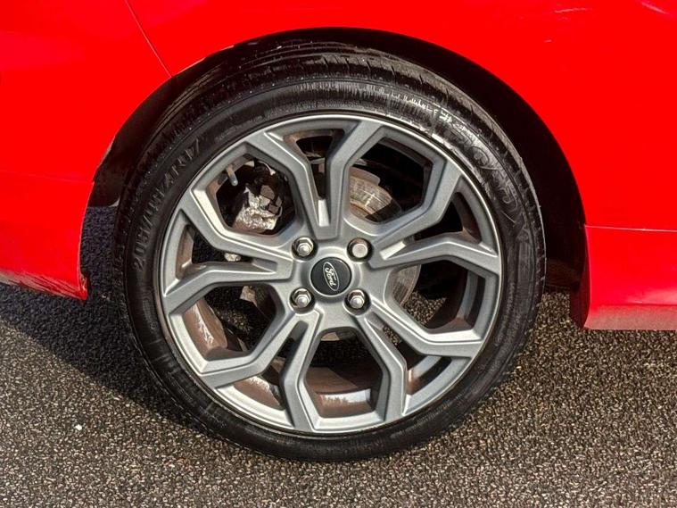 Bluetooth system, Electric power steering, Lane keep assist, Speed limiter, SYNC Emergency Assistance, Trip computer, Sports suspension, 2 USB ports, Auxiliary input socket, Ford SYNC 3 DAB radio, apple car play and android auto with voice control, Steering wheel mounted controls, USB connection, Automatic headlights, Body colour bumpers, Body colour door handles, Body colour electric adjustable heated door mirrors, Body colour large rear spoiler, Body styling kit, Chrome door handles, Cornering front fog lights, Electric front windows/one touch facility, LED daytime running lights, Quickclear heated windscreen, Rear wiper, Tinted glass, Upper front grille chrome surround, 12V Accessory socket in centre console, 3 spoke flat bottomed leather steering wheel, 60/40 split folding rear seat, Adjustable head restraints, Black headlining, Boot carpet, Centre console with armrest, Chrome inner door handles, Cloth upholstery, Footwell illumination, Front and rear velour floor mats, Front map reading lights, Front seat and rear pockets, Height adjustable driver's seat, Illuminated cup holders, Illuminated glovebox, Leather gear knob, Leather trimmed handbrake handle, Load area light, Manual air conditioning, Overhead console with sunglasses holder, Pollen filter, Rake/reach adjustable steering wheel, Rear centre head restraint, Sports front seats, Sports pedals, 3 point seatbelts on all rear seats, ABS+EBA, Curtain airbags, Driver and passenger airbags, Drivers knee airbag, ESP + traction control, Front passenger airbag deactivation, Front side airbags, Hill start assist, Seatbelt warning, Tyre pressure monitoring system, Immobiliser, Keyless start with 'Ford Power' starter button, MyKey system, Remote central locking, Thatcham Cat.1 alarm,