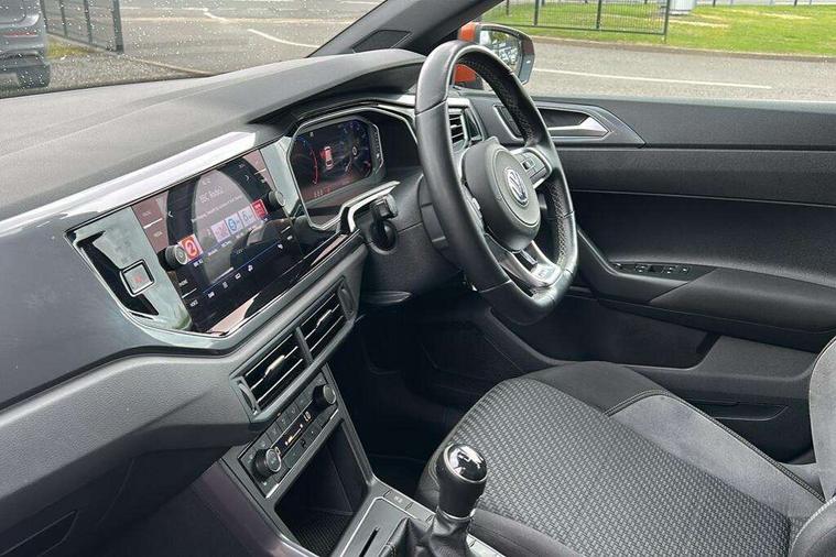 App-Connect, Bluetooth Telephone preparation, Driver alert system, Multifunction colour display, PAS - speed related, Service interval indicator, Trip computer, Warning buzzer and light for front seatbelts unfastened, 6 speakers, Composition media system with radio, glovebox mounted CD, colour touch screen, SD card, aux-in, USB, multimedia interface, DAB Digital radio, Auto dimming rear view mirror with light/rain sensors and coming home function, Automatic headlamp activation, Black grille with chrome surround, Body colour bumpers, Body colour door handles, Body colour rear spoiler, Body coloured side sills, Chrome trimmed front air intake surrounds, Electric folding door mirrors, Electric front windows, Electric operated/heated door mirrors, Front wash/wipe with interval delay, Heat insulated tinted glass 65% light absorbing from B pillar back, Heated rear window with auto timer, LED daytime running lights, LED rear number plate lights, LED tail lights, R Line body kit, Rear diffuser, Rear electric windows, Rear windscreen washer and wiper with interval delay, Stainless steel door sill protection, 12V power socket in centre console, 2 bag hooks in luggage compartment, 2 cupholders, 3 rear head restraints, 3 spoke steering wheel, 60/40 split folding rear seat, Ambient lighting, Carbon flag cloth upholstery, Carpet mats, Chrome plated light switch, Driver/front passenger seat height adjustment + underseat drawers, Driver/passenger sunvisors with illuminated vanity mirrors, Dust/pollen filter, Front centre armrest with storage compartment, Front seat backrest storage nets, Front sport seats, Front/rear reading lights, Glovebox, Height/reach adjustable steering column, Interior light with delay, Isofix Preparation 2 Rear child seats, Jack and tool kit, Leather multifunction steering wheel, LED footwell lights, Luggage compartment cover, removable, Luggage compartment lighting, Matt chrome gear lever gaiter surround, Stainless steel pedals, Storage compartment in front doors, Storage compartment in rear doors, Storage compartment under front seats, Titanium black headlining, Variable boot floor, 3 point height adj front seatbelts + pretensioners, 3x3 point rear seatbelts, ABS, Automatic post collision braking, Driver/front passenger airbag, Driver/Passenger whiplash optimised head restraints, ESP with EDL + ASR, Front and rear passengers curtain airbag system including front side airbags, Front passenger airbag deactivation, Hill hold control, Hydraulic Brake Assist (HBA), Two tone horn, Tyre pressure monitoring system, Alarm with remote central locking and interior protection, Anti-theft wheel bolts, Electronic engine immobiliser, Cortina silver air vent surround, Matt chrome interior trim, Snow shadow steel dashboard pads, Steering wheel aluminium inserts, Space saver spare wheel,