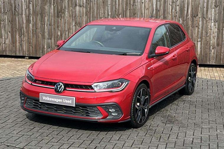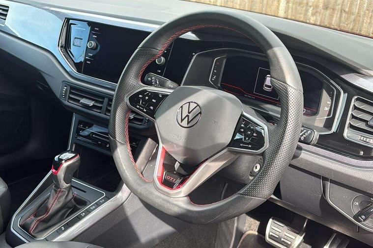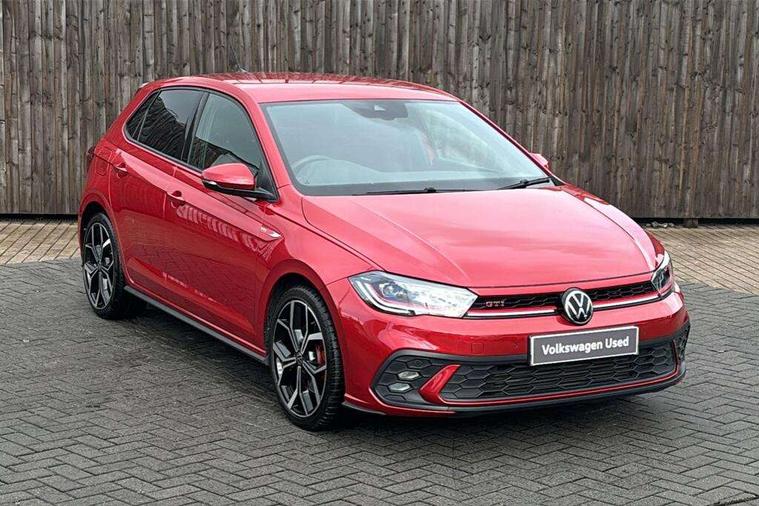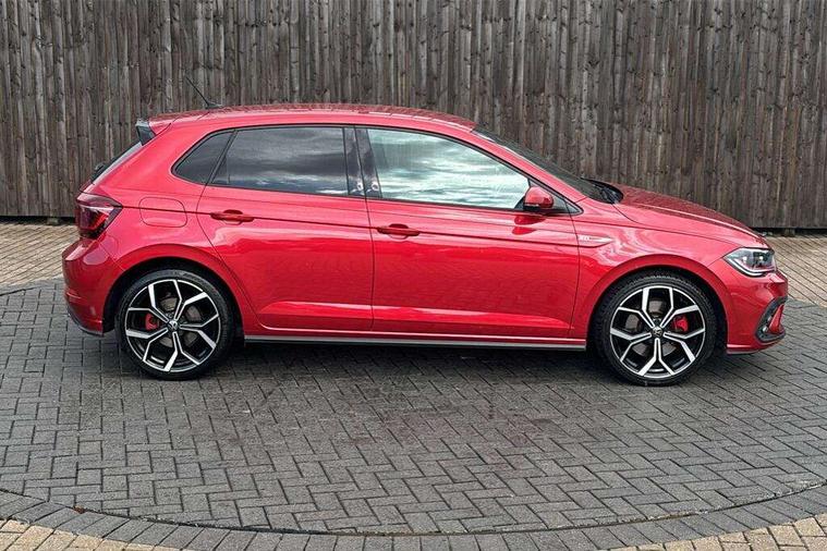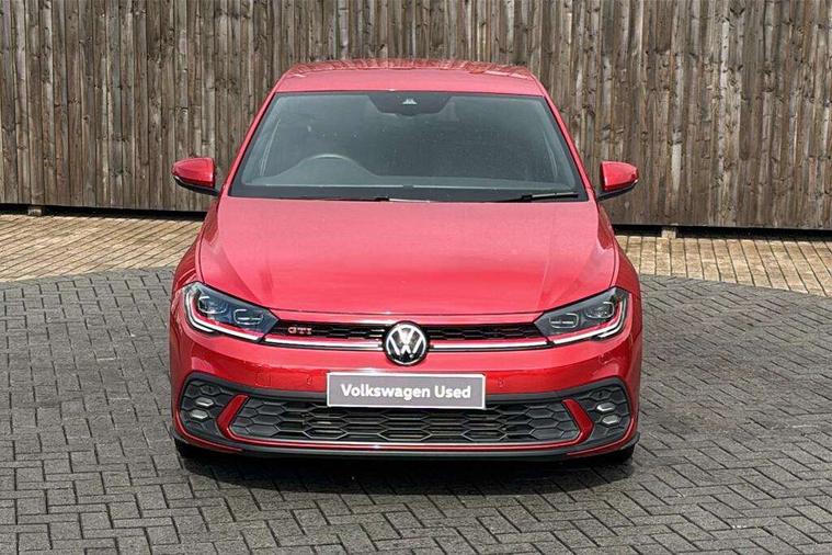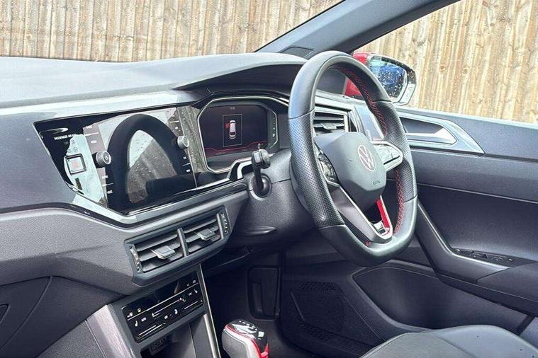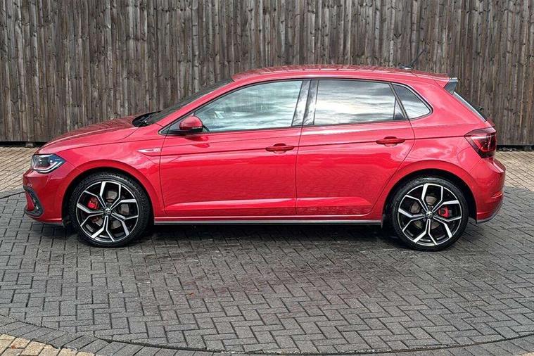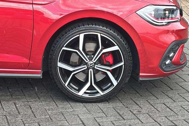 Adaptive cruise control with follow-to-stop and speed limiter, Bluetooth mobile phone interface, Digital Cockpit Pro with 10.25" Display, Driver alert system, Dynamic road sign display, Eco mode, Emergency call service, Power assisted speed sensitive steering, Preparation for We connect and We connect plus, Speedo and rev counter, electronic odometer, trip, service interval display and fuel gauge, Travel Assist - Lane keeping system and traffic jam assist, Travel assist including emergency assist, Trip computer, Warning signal and warning light for front and rear seatbelts not fastened, Washer fluid level indicator, Wireless app connect, Adaptive chassis control, Front wheel drive, Heavy duty rear axle, Rear shock absorpion sports version, Sports select suspension lowered by 15mm, Start-stop system with battery regeneration (recuperation - energy recovery during braking), DAB Digital radio, Diversity antenna for FM reception, Front and rear 6 speakers, Body colour bumpers, Body colour door handles, Electric front windows, Front scuff plates in aluminium with GTI logo, Heat insulating darkened glass in side and rear windows, Heat insulating glass windscreen, Power folding adjustable/heated exterior mirrors and front passenger exterior mirror lowering function, Rear electric windows, Rear fog light, Rear side wing doors, Rear windscreen washer and wiper with interval delay, Sport bumpers with air intakes with honeycomb structure, Third brake light, Twin chrome exhaust tailpipes, 12V power socket in centre console, 2 USB-C ports in the front, 2 USB-C charging sockets on the center console in the rear, 3 rear head restraints, 60/40 split folding rear seat and rear seat bench not split, Air care climatronic air conditoning system with active combination filter and 2-zone temperature control, Black roof lining, Ceramique headliner, Chrome plated radiator grille inserts, air vent surrounds and light switch surrounds, Door and side trim panel, Driver and front passenger seat height adjustment, Driver/passenger sunvisors with illuminated vanity mirrors, Front + rear carpet mats, Front centre armrest, Front footwell illumination, Front seat backrest storage pockets, GTI sports gearshift knob in aluminium leather, Handbrake lever handle in leather, Isofix child seat preparation easy-fit (for two outer rear seats, and front passenger seat) compatible with I-size, LED interior light with switch off delay and dimmer, 2 reading lights front and rear, Luggage compartment cover, Luggage compartment floor, Luggage compartment lighting, Single front passenger seat, Stainless steel pedals, Standard pedal cluster, Three spoke leather wrapped multifunction sports steering wheel with shifting paddles, IQ LED matrix headlights pack - Polo, Light and sight pack - Polo GTI, Sports suspension pack - Polo, 3 point height adj front seatbelts + pretensioners, 3x3 point rear seatbelts, ABS, Driver and front passenger airbag with front passenger airbag deactivation, Drivers and front passengers safety optimised head restraints, ESC (Electronic stability control) + EDL (Electronic Differntial lock) and ASR (Traction control), Extended and predictive pedestrian/ cyclist protection, Front and rear disc brakes with red brake calipers, Front curtain and side airbags with center airbag, Hill hold control, Manual child lock in rear doors, Two tone horn, Tyre pressure loss indicator, Alarm with interior protection, Anti-theft alarm system with interior monitoring, backup horn, and towing protection, Anti-theft wheel bolts, Electronic engine immobiliser, Chrome applications on rotary light, mirror adjustment, window regulator switches, outlet with frame in black, Low rolling resistance tyres,