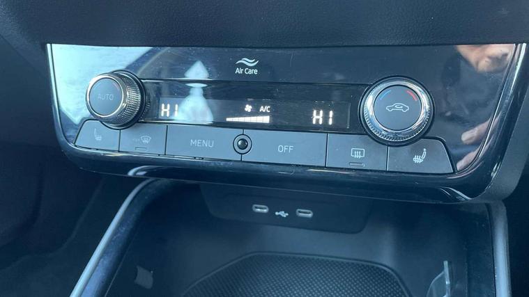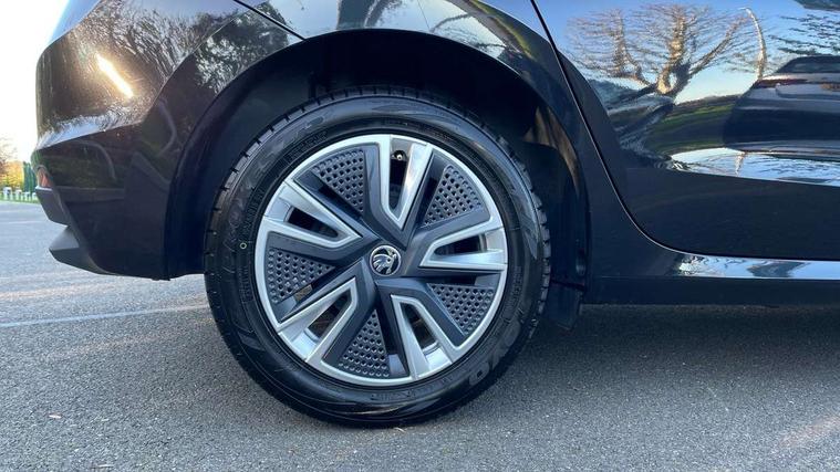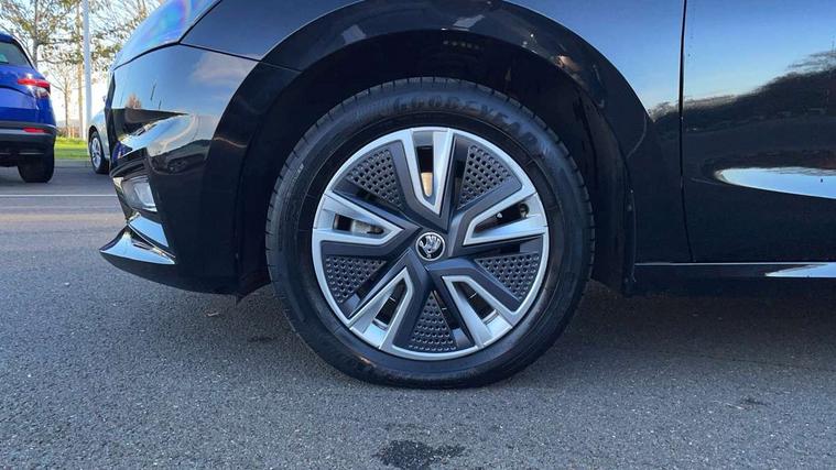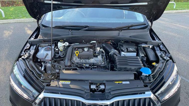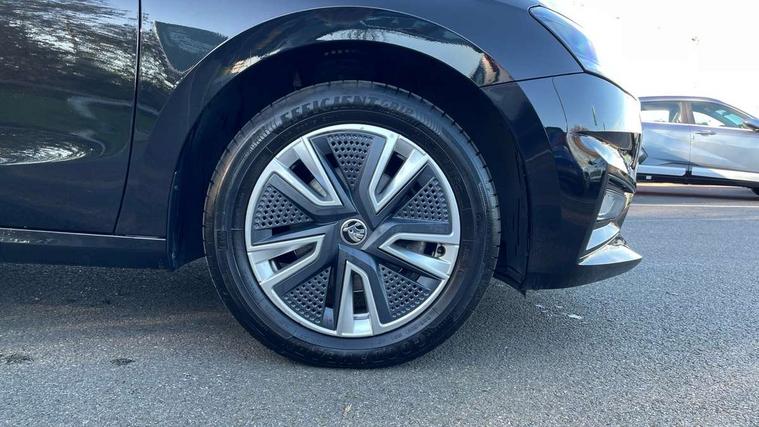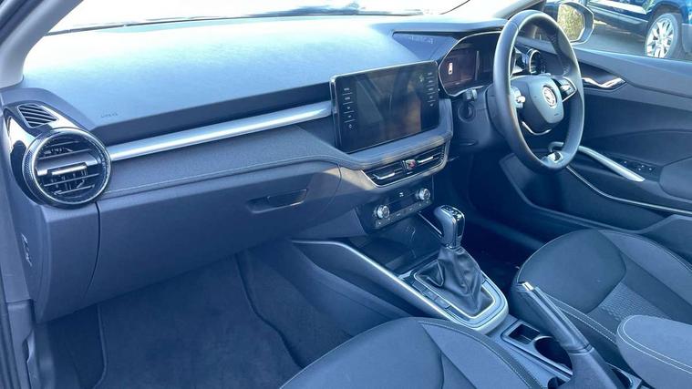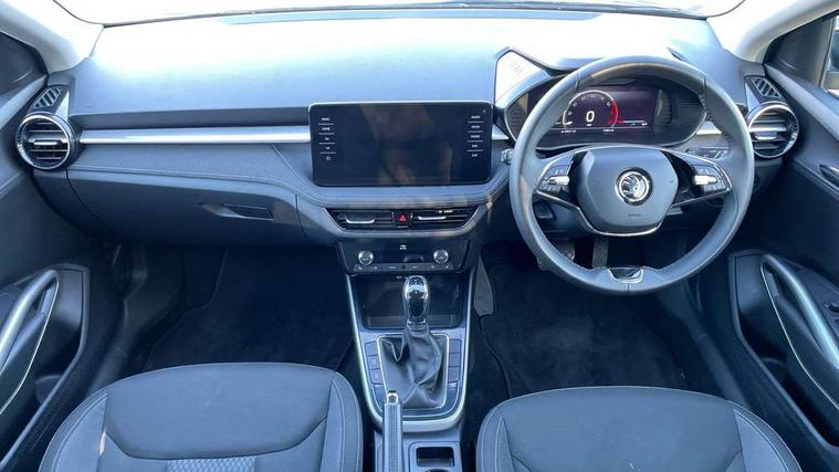 Bluetooth connection, Driver alert system - DAS, Electromechanical power steering, Exterior temperature gauge, Service interval indicator, 2x USB-C in the front (for data transmission and charging), 6 Speakers (4 in front and 2 in rear), Auxiliary socket for external MP3 player, DAB digital radio reception, Web radio, Auto dimming rear view mirror, Basic LED Headlights, Body colour door mirrors, Body coloured bumpers, Chrome window surround, Door mirror integrated indicators, Electrically adjustable and heated door mirrors, Front and rear electric windows, Front fog lights, Front window wiper intermittent control, Headlight range control - Automatic, Ice scraper in fuel cap, LED daytime running lights with coming and leaving home feature, Rain sensor, Rear LED fog light, Rear side wing doors, Rear window wiper with washing nozzles, Roof mounted spoiler, SKODA tailgate lettering in chrome, Third brake light, 3 rear headrests, Backrest split and folding, Central console with fixed cup holder and storage box, Chrome handbrake release button, Comfort seats, Fabric upholstery, Front centre armrest, Gearshift knob/handle in leather, Hand brake lever handle in leather, Height adjustable front headrests, Height adjustable front seats, Height adjustable steering wheel, ISOFIX and TopTether anchorage points to the outer rear seats, ISOFIX and TopTether on the front passenger seat, Luggage compartment lighting, Manually adjustable lumbar support in front seats, Pollen filter, Rear seat bench unsplit, Removable cup holder, Single front passenger seat, Storm grey headlining, Sun visors with mirror and airbag label on passenger side, Textile floor mats, Ticket holder, Umbrella in drivers door, 3-point height adjustable front seats belts with pretensioner and force limiter, Automatic warning lights in case of crash, Driver and passengers airbag with switch off function, e-Call+, ESC including ABS, MSR, ASR, EDS, HBA and XDS, Front and rear seat belt warning, FRONT ASSIST (AEB City and AEB Inter Urban), Front side airbags, Head airbags, Hill hold assist, One tone horn, Pedestrian protection, Three rear 3-points safety seat belts with pretensioner and force limiter including stop function for outer rear seat belts, Tyre pressure monitoring system, Anti-theft alarm system including immobiliser, interior monitoring, backup horn, and towing protection, Central locking with radio remote control, interior controls, SAFE function and 2 foldable keys, KESSY - Keyless engine start/stop, Chrome edged air vents, Satin black door and side trim panel in front, Anti-theft wheel bolts protection, Super-low rolling resistance tyres,