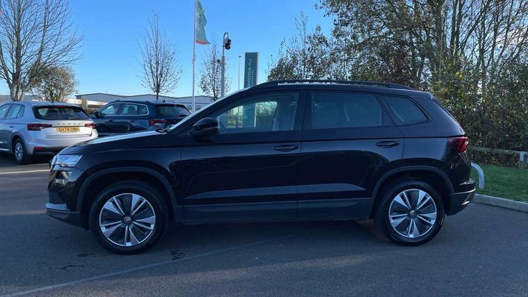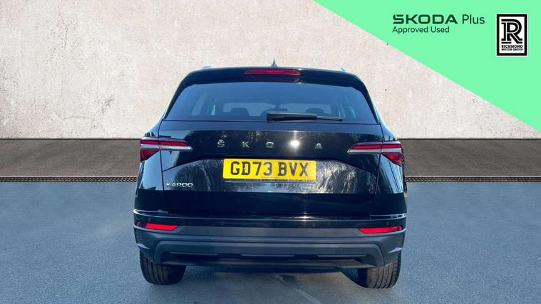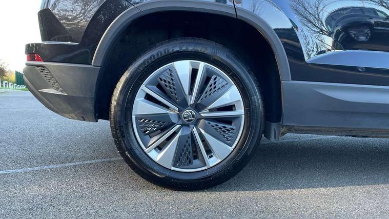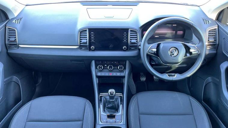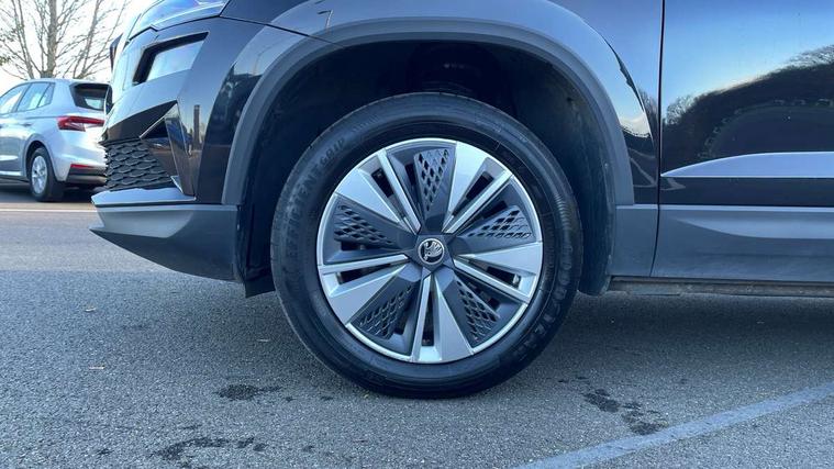 8" Digital display, Amundsen satellite navigation with 8" touchscreen display with maps Europe, WLAN and web radio, Care connect, Driver fatigue sensor, Electro-mechanical PAS, Emergency services call system, Outside temperature gauge, Service interval indicator, SmartLink wireless for Apple and wired for Android, Start/stop system with regenerative braking, USB C Port x 2 in front centre console, 8 Speakers, DAB radio with Bluetooth, USB connection, Acoustic glass, Aero front windscreen wipers with intermittent function, Auto dimming rear view mirror with light and rain sensors, Black electric window control buttons, Body colour door mirrors and handles, Dynamic headlight range control with cornering light function, Electric front and rear windows with child proof lock, Electrically adjustable heated folding and auto dimming door mirrors, Front fog lights, Heated rear windscreen, LED daytime running lights, LED Headlights, LED rear lights with high functionality welcome effect and dynamic indicators, Light assistant (coming/leaving home/tunnel light), Plastic scuff plates, Privacy glass, Rear side wing doors, Rear window wiper with washer system and intermittent control, Safety reflectors on front doors, Third brake light, 1.5 litre bottle holders in driver and front passenger door panels, 12V socket in boot, 12v socket in front centre armrest with storage compartment and rear air vents, 2 x Tablet holder, 3 rear height adjustable headrests, 3 seat bench in 2nd row, 4 foldable roof handles with rear coat hooks, Black floor carpet, Chrome inner door handles, Double sided boot floor, Driver/front passenger reading lights, Foldable hooks in the boot, Folding tables on the front seat backrests, Front head restraints, Height adjustable driver and passenger seat, Height adjustable front three point seats belts with tensioners, Height/reach adjust steering wheel, Ice scraper, Illuminated glovebox, Illuminated luggage compartment, Isofix child seat preparation for front passenger seat, Isofix child seat preparation outer rear, Manual lumbar support for front seats, Pearl grey interior ceiling, Pen holder, Pollen filter, Rear boot cover, Rear reading lights, Rubbish bin door, Safety vest holder, Single front passenger seat, Storage box in upper central dashboard closed, Sunvisors with illuminated vanity mirrors, Textile floor mats, Ticket holder, Umbrella under passenger seat, Boot pack - Karoq, Automatic door unlocking in case of crash, Automatic fuel cut off in case of crash, Child locks on rear doors, Driver airbag, Electronic parking brake with auto hold function, Emergency rear braking signal, ESC including ABS, MSR, ASR, EDS, HBA, DSR, RBS, MKB and traction control, Front side airbags, Hill hold control, Knee airbags, Passenger airbag with switch-off function, Pedestrian monitor, Seatbelt reminder signalisation and pretensioner for all seats, Three point seatbelts rear, Two tone horn, Tyre pressure display, Tyre pressure monitor, Alarm with interior monitoring, back up horn and tilt sensor with safe function, Electronic engine immobiliser, Remote central locking with 2 remote folding keys, Black centre console, Chrome framed air vents, Satin black dashboard, Satin black door trim, Anti-theft wheel bolts protection, Tool kit,