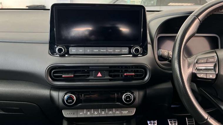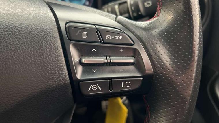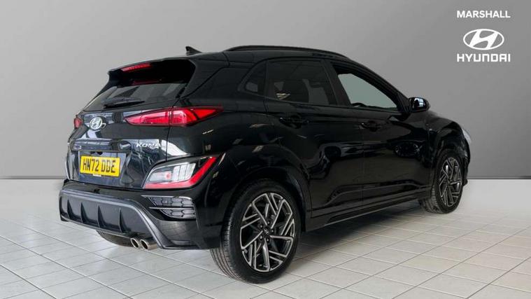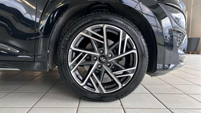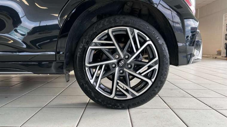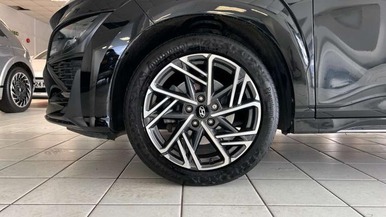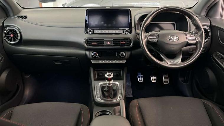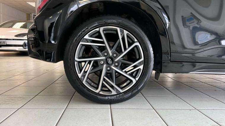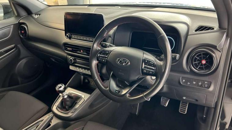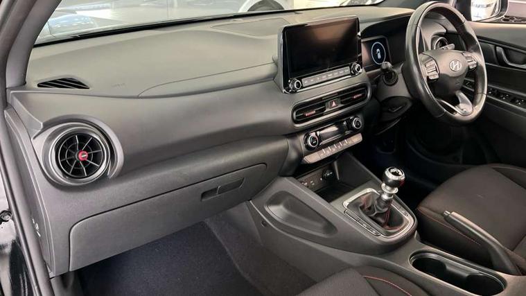 10.25" touchscreen centre console display satellite navigation with live services and mapcare, Bluetooth connectivity, Cruise control + speed limiter, Digital clock, Driver attention warning, Driver supervision instrument cluster with 10.25" LCD display, eCall emergency call system, Forward collision avoidance assist with pedestrian detection, Lane follow assist, Lane keep assist, Leading vehicle departure alert (LVDA), Parking system with rear camera and guidance system, PAS, Phone connection with apple carPlay and android auto, Rear parking sensor, Roadside assistance, Windscreen washer fluid sensor and warning indicator, Wireless phone charging pad, 6 speed intelligent manual transmission, Front and rear USB ports, Krell premium audio system with 8 speakers including external amplifier and subwoofer, RDS and Digital DAB, Steering wheel mounted audio/phone controls, Auto dimming rear view mirror, Automatic headlights with dusk sensor, Automatic windscreen wipers with rain sensor, Black radiator grille, Body colour bumpers, Body colour door mirrors and handles, Body colour side cladding, Body coloured garnish, Door mirror integrated indicators, Electric front/rear windows with drivers one touch/anti-trap, Electrically adjustable and heated door mirrors, Halogen headlights, LED daytime running lights, LED rear lights, Positioning Lights - LED, Power folding door mirrors, Privacy glass - Rear windows and tailgate, Rear roof spoiler with integrated LED brake light, Rear side wing doors, Rear skid plate - silver, Rear wiper, Roof rails, Solar glass with front door glass and windscreen shade band, Windscreen auto defog function, 12V power outlet in front console, 3 seat bench in 2nd row, 60/40 split folding rear seat, Adjustable head restraints, Air conditioning climate control, Ambient lighting, Centre interior light, Cloth upholstery, Door scuff plate, Driver and passenger front seat pockets, Driver's seat electric lumbar support, Driver's seat height adjustment, Driver/passenger sunvisors and illuminated vanity mirrors, Front interior light, Front passenger seat manual adjustments, Height/reach adjustable steering column, Isofix rear child seat fastenings, Leather wrapped steering wheel and gear knob, Luggage compartment lighting, Luggage hooks, Luggage net, Metal paint effect interior door handles, Metal pedals, N logo on the gear shift, Parcel shelf, Rear centre console with air vents, Single front passenger seat, Sunglasses holder, Vertical adjustment rear head restraints, Trailer wiring package - Kona, Airbags - front, front side and curtain airbags, Anti-lock brake system (ABS), Childproof rear door locks, Downhill brake control, EBD + Brake Assist, Electronic stability control, Fasten seatbelt reminder, Fixed 3 point for second row centre passenger seatbelt, Front seatbelt pretensioners, Height adjustable front seatbelts, Hill start assist control (HAC), Manual parking brake, Passenger airbag deactivate switch, Rear seat alert, Traction control, Tyre pressure monitoring system, Alarm/immobiliser, Deadlocks, Folding key, Locking wheel nuts, Remote central locking, 18" Alloy wheels,