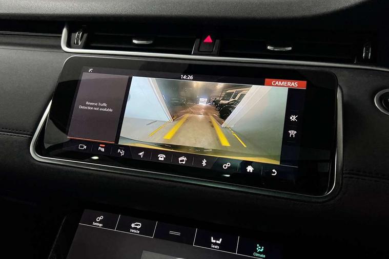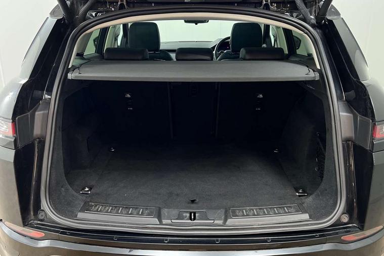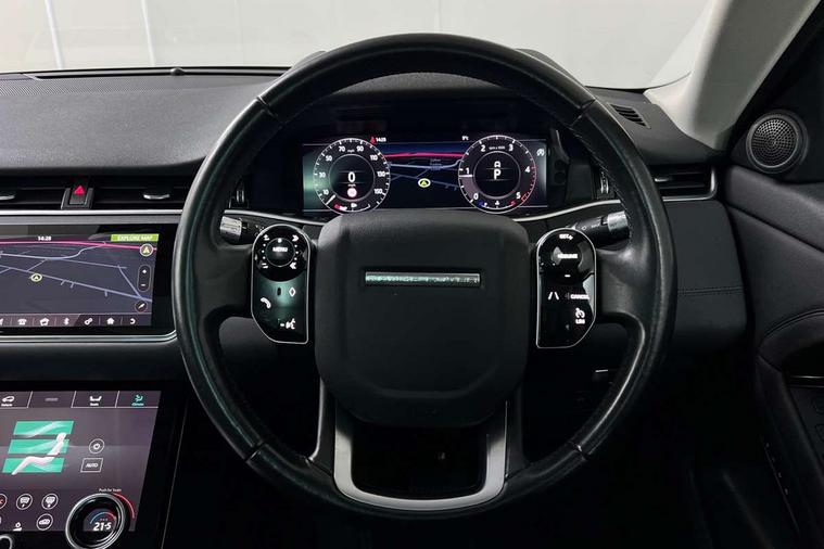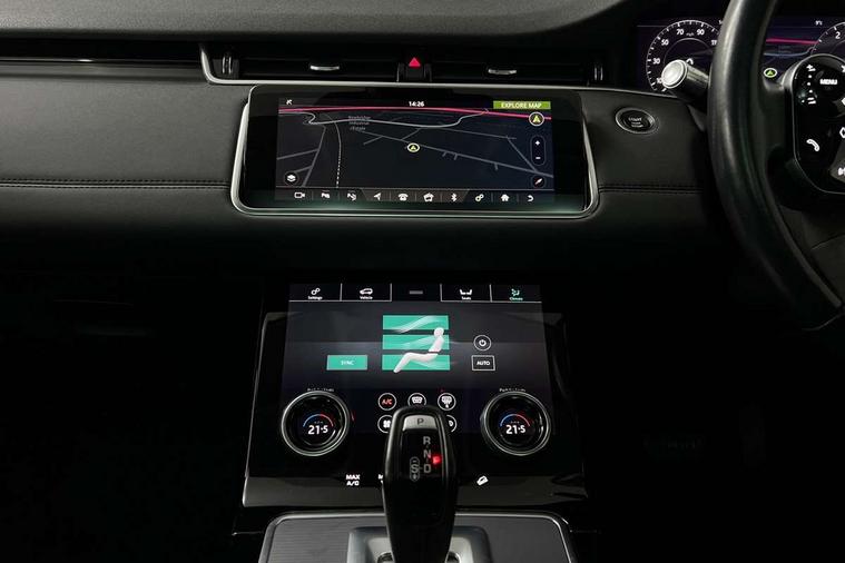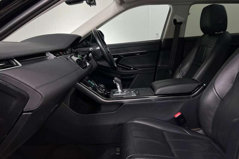 360 degree parking aid, Android Auto, Apple car play, Bluetooth connectivity, Brake pad wear indicator warning light, Clear exit monitor, Driver condition monitor, Duo touch pro, Electronic power assisted steering (EPAS), InControl remote, Interactive Driver display instrument cluster, Land Rover InControl apps, Lane keep assist, Navigation pro system, Park assist - Parallel, perpendicular and parking exit, Pro services and wifi hotspot, Push button starter, Rear traffic monitor, Smart settings, Traffic sign recognition with adaptive speed limiter, Voice control system, All terrain progress control, Efficient Driveline, Passive suspension, Terrain Response 2 Auto, Digital Audio Broadcast radio-DAB, Steering wheel mounted controls, Automatic headlight levelling, Electric windows with one touch open/close and anti trap, Evoque badge, Flush deployable exterior door handles, Heated rear window with timer, Heated washer jets, Heated windscreen, Power fold, auto-dimming, heated door mirrors with memory and approach lights, Rain sensing windscreen wipers, Rear fog lights, Tailgate spoiler, 40:20:40 split folding rear seats, Isofix system on outer rear seats, Overhead lighting console, Overhead stowage for sunglasses, Passive front head restraints, Rear air vents, Rear centre headrest, Sunvisors with illuminated vanity mirrors, Twin front cupholders with cover, Twin sliding front centre armrest, Two zone climate control, Anti-lock braking system (ABS), Customer configurable autolock, DSC - Dynamic Stability Control, Electronic brake force distribution, Electronic parking brake, Electronic traction control, Front and rear seatbelt reminder, Hill descent control, Hill launch assist, Low traction launch, Power operated child locks, Roll stability control, Six airbags - Driver and passenger airbags/driver knee airbag/front side airbag and curtain airbags, Torque vectoring brake, Tyre pressure monitoring system, Alarm, Immobiliser, Intrusion sensor, Locking wheel nuts,
