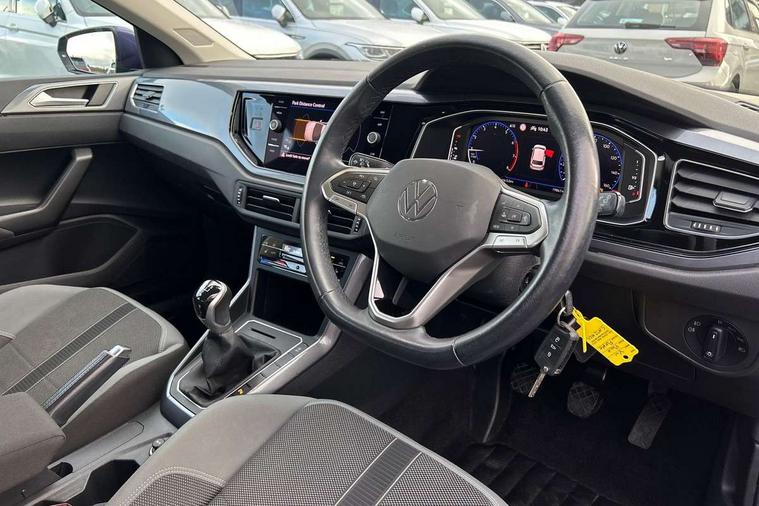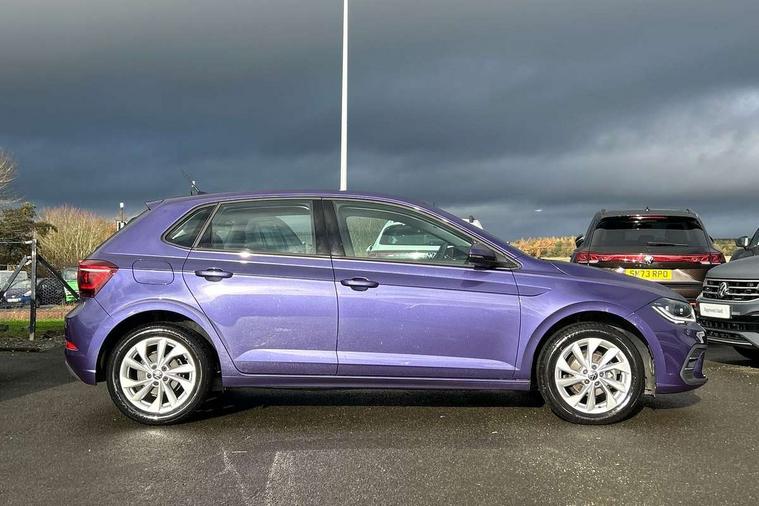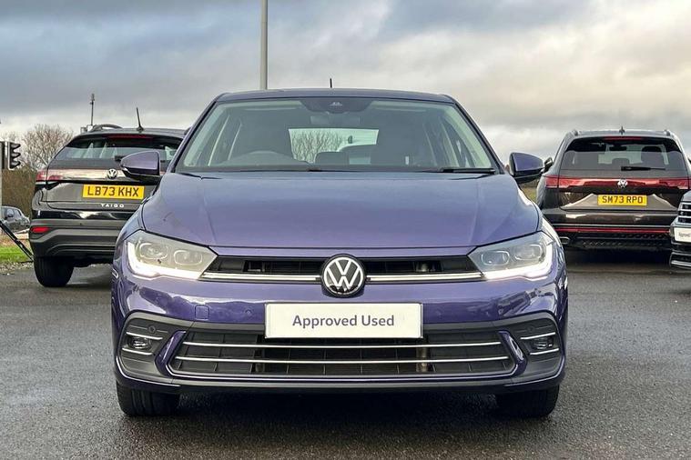Adaptive cruise control without follow-to-stop and speed limiter, Bluetooth mobile phone interface, Digital Cockpit Pro with 10.25" Display, Driver alert system, Dynamic road sign display, Emergency call service, Power assisted speed sensitive steering, Preparation for We connect and We connect plus, Speedo and rev counter, electronic odometer, trip, service interval display and fuel gauge, Standard rear axle, Travel Assist - Lane keeping system and traffic jam assist, Travel assist including emergency assist, Trip computer, Warning signal and warning light for front and rear seatbelts not fastened, Washer fluid level indicator, Wireless app connect, Front wheel drive, Rear shock absorpion, Start-stop system with battery regeneration (recuperation - energy recovery during braking), DAB Digital radio, Diversity antenna for FM reception, Front and rear 6 speakers, Automatic dimming interior rear view mirror, Automatic headlights, Body colour door handles, Body coloured bumpers and radiator grille with chrome trims, Electric front windows, Heat insulating darkened glass in side and rear windows, Heat insulating glass windscreen, LED separate daytime running lights with coming/leaving home function, Power folding adjustable/heated exterior mirrors and front passenger exterior mirror lowering function, Rain sensor, Rear electric windows, Rear fog light, Rear side wing doors, Rear windscreen washer and wiper with interval delay, Third brake light, 12V power socket in centre console, 2 USB-C ports in the front, 2 USB-C charging sockets on the center console in the rear, 3 rear head restraints, 60/40 split folding rear seat and rear seat bench not split, Air care climatronic air conditoning system with active combination filter and 2-zone temperature control, Ambient lighting, Ceramique headliner, Chrome plated radiator grille inserts, air vent surrounds and light switch surrounds, Door and side trim panel, Driver and front passenger seat height adjustment, Driver/passenger sunvisors with illuminated vanity mirrors, Front + rear carpet mats, Front centre armrest, Front footwell illumination, Front seat backrest storage pockets, Front sports comfort seats, Handbrake lever handle in leather, Isofix child seat preparation easy-fit (for two outer rear seats, and front passenger seat) compatible with I-size, Leather trimmed gear knob, LED interior light with switch off delay and dimmer, 2 reading lights front and rear, Luggage compartment cover, Luggage compartment floor, Luggage compartment lighting, Lumbar adjustment for front seats, Multifunction steering wheel, Single front passenger seat, Standard pedal cluster, IQ LED matrix headlights pack - Polo, Light and vision pack - Polo, 3 point height adj front seatbelts + pretensioners, 3x3 point rear seatbelts, ABS, Driver and front passenger airbag with front passenger airbag deactivation, Drivers and front passengers safety optimised head restraints, ESC (Electronic stability control) + EDL (Electronic Differntial lock) and ASR (Traction control), Extended and predictive pedestrian/ cyclist protection, Front curtain and side airbags with center airbag, Front disc brakes, Hill hold control, Manual child lock in rear doors, Rear drum brakes, Single tone horn, Tyre pressure loss indicator, Alarm with interior protection, Anti-theft alarm system with interior monitoring, backup horn, and towing protection, Anti-theft wheel bolts, Electronic engine immobiliser, Chrome applications on rotary light, mirror adjustment, window regulator switches, outlet with frame in black, Deep iron gloss decorative inserts in dash and front door panels, Low rolling resistance tyres,