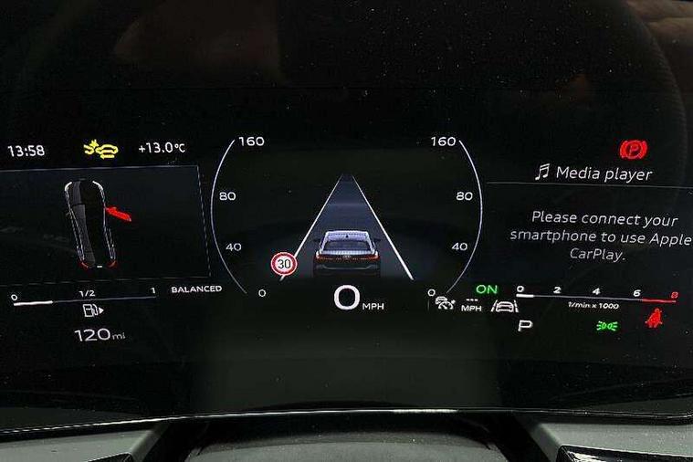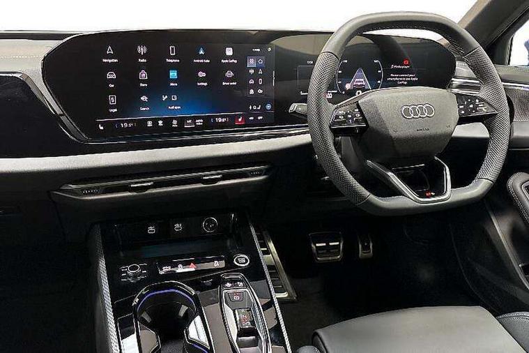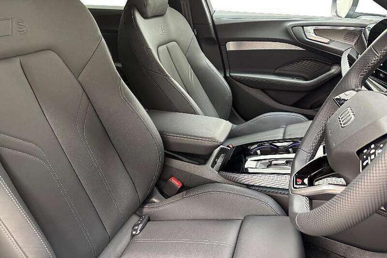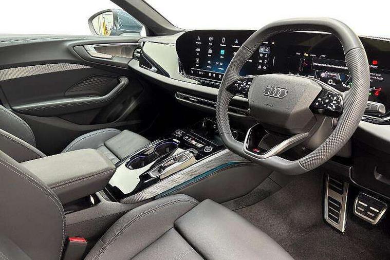 Adaptive cruise control, Advanced driver attention and fatigue montior, Audi application store, Audi assistant, Audi connect emergency call and service, Audi drive select, Audi smartphone interface, Audi virtual cockpit plus with 11.9" OLED colour display, Automatic start/stop system with coasting functionality, Camera based traffic sign recognition, Intersection assist, Lane departure warning, MMI navigation plus with high resolution 14.5" OLED touchscreen colour display, Park assist plus, Parking system plus with 360 display, Progressive steering with servotronic, Rear view camera, Swerve assist and turn assist, Traffic sign based speed limiter, Sports suspension lowered by 20mm, 2 USB-C ports in both the front and rear, Audi sound system impressive sound with 10 loudspeakers including centre speaker and subwoofer, 6-channel amplifier with a total output of 180 watts, DAB digital radio reception, Smartphone compartment with wireless charging, Aluminium window trims, Auto dimming rear view mirror, Body colour door mirrors, Door mirrors - electrically adjustable, heated, folding and auto dimming on both sides, Front and rear electric windows, Front door sill trims with aluminium inlays, illuminated with 'S' logo, High beam assist, LED headlights Plus incl. digital daytime running lights, turning light, all-weather light, motorway light, manouevring light and intersection light, LED rear lights pro incl. dynamic rear indicators and illuminated light strip with animated coming and leaving home function, LED third brake light, Privacy glass, Rear and side windows with heat insulating glass, Rear boot, Rear side wing doors, S Line badges on the front wings, S line bumpers, radiator grille and diffuser in phantom black and diffuser insert in matt anthracite, White rhombus logo projection light in exterior mirrors, Windscreen with acoustic glazing, 3 rear headrests, 3 seat rear bench, 3 spoke leather steering wheel with multi-function buttons with touch control, flattened on top and bottom, with S badging and contrast stitching, 3-zone automatic climate control, 40:20:40 split folding rear seat bench with centre armrest and cup holders, Comfort front centre armrest, Front and rear floor mats, Front seats with manual adjustment for position and 4-way electric lumbar support, Front sport seats with integrated headrest and S embossed logo, Headlining in black cloth, Heated front seats, i-Size child seat mounting on the front passenger side and outer rear seats, i-Size and top tether on the outer rear seats, Luggage compartment lid, electrically opening and closing, Manual steering column height and depth adjustment, Single front passenger seat, Stainless steel pedals and footrest, Steering wheel grips in perforated leather and shift paddles, Ambient lighting package plus - A5, 3x3 point rear seat belts, Driver airbag, Electric child safety locks, First aid kit with warning triangle and vests, Front emergency brake assist, Front passenger airbag, Front passenger airbag deactivation, Front side airbags with head airbag system and front interaction airbag, Hill hold assist, Seat belt monitoring with rear seat occupant reminder, Tyre pressure loss indicator, Anti theft alarm, Anti-theft wheel bolts, Keyless Go, Accent surfaces and control buttons in gloss black, Black dashboard with contrast stitching, Inlays in matt brushed aluminium with linear embossing, anthracite, Softwrap in leatherette with contrast stitching, Upper and lower interior elements in leatherette, Tyre repair kit,