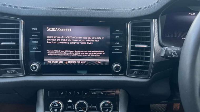 Bluetooth system, Digital voice enhancement, e call+, ECO Stop/start function, Exterior temperature indicator, Rear view camera, Smartlink wireless for apple carplay and wired for android auto, Speed limiter, Tailgate unlocking from outside, USB C Port x 2 in front centre console, Virtual Cockpit - 10.25" digital display, Wireless charging, 8 Speakers, DAB Digital radio, Aero front windscreen wipers with intermittent function, Aero rear window wiper, Auto dimming rear view mirror, Black wheel arch surrounds, Body colour bumpers, Body colour door mirrors and handles, Chrome front grille, Chrome roof rails with chrome window surround, Electric adjustable/heated/folding door mirrors, driver side auto dimming with boarding sports and memory function, Electric front and rear windows, Extended rear spoiler with finlets in gloss black, Front fog lights, Full LED matrix headlights with AFS (adaptive front light system), cornering function and AWL (all weather lighting system), Headlight washers, Heated rear window, Invisible tailpipe, LED daytime running lights, LED rear fog light, LED third brake light in rear spoiler, Light assistant (coming/leaving home/tunnel light), Off-road style lower front bumper element, Privacy glass, Rain and light sensors, Rear LED lights (high functionality) with welcome effect and dynamic indicators, Rear side wing doors, Safety reflectors on front and rear doors, Window control switches with black trim, 12V socket in boot, 2 rails with 2 hooks, 2 seat bench in 3rd row, 2 spoke multi-function leather steering wheel with paddle shift, 3 seat bench in 2nd row, 4 foldable roof handles with rear coat hooks, 60:40 foldable rear seat with sliding adjustment and backrest angle adjustment, Bottle holders in door panel in the 1.5 litre front and 1 litre rear, Cargo storage compartments, Chrome headlight control button, Chrome interior door handles, Coat hooks on B pillar, Covered storage compartment on driver side, Decorative door sill covers, Front and rear door armrest with black adductor trim, Front centre armrest with storage compartment, cup holder and 12V socket, Front courtesy lights, Gear shift lever with chrome frame and black gloss insert, Grey stitching in front and rear armrests and door armrests + door inserts, Height adjustable front headrests, Illuminated glovebox, Illuminated luggage compartment, Isofix child seat fittings in outer rear seats with top tether, Manually adjustable steering column, Net programme in boot (1x horizontal Net, 2x vertical Nets), Overhead glasses storage compartment, Pollen filter, Rear centre armrest with cupholders, Single front passenger seat, Sliding trunk cover, Small Bags on the inner sides of the front backrests, Sunvisors with illuminated vanity mirrors, Three rear height adjustable headrests, Ticket holder on A Pillar, Umbrella in door panel, Variable boot floor, Auto door release and activation of warning lights in the event of an accident, Driver and front passenger airbag with knee airbag and front passenger airbag deactivation, Electronic parking brake with hill start assist, Emergency rear braking signal, ESC (incl. ABS+MSR+ASR+EDS+HBA+DSR+RBS+MKB), Front assist with autonomous emergency braking, Front side airbags with curtain airbags, Fuel cut off safety device, Height adjustable front 3 point seatbelts + pretensioners, Hill hold control, Rear disc brakes, Safety vest holder in door, Seat belt reminder for all seats, Three point rear seat belts, Two tone horn, Tyre pressure monitor, Alarm with interior monitoring and tilt sensor with safe function, Anti-theft wheel bolts, Immobiliser, Keyless entry and start system (KESSY), Remote central locking with 2 keys, Grey stitching in dashboard, Linear diamonds decorative inserts, Temporary spare wheel (space saver),