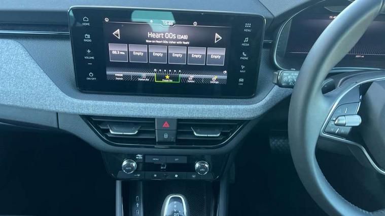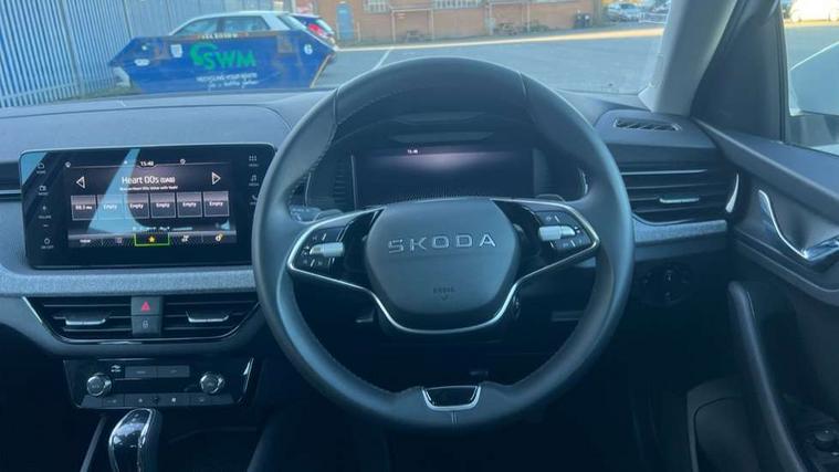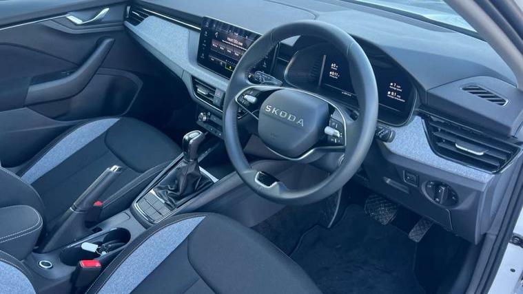 Advanced driver attention and drowsiness monitor, Bluetooth, e-Call (emergency call), Front assist system, PAS, Rear parking sensors, Rear view camera, Speed limiter, Tailgate, Traffic sign recognition, Virtual Cockpit - 10.25" digital display, Voice control system, Wireless smartlink, 4 USB C ports, 8 Speakers, 9.2" Skoda navigation display, DAB radio, Auto dimming rear view mirror, Automatic headlamp activation with Coming home and Leaving home feature, Automatic high/low beam, Body colour bumpers, Body colour door mirrors and handles, Chrome moulding around grille, Front and rear electric windows, Full LED headlights, Heated rear window, LED 3rd brake light, LED brake lights, LED daytime running lights, LED front turning lights, LED high beam, LED low beam, LED taillights, Rear LED fog light, Rear side wing doors, Rear wiper, Tinted windows, Unique dark chrome design logo on alloy wheels, 12V socket in luggage compartment, 3 seat bench in 2nd row, Black / Grey armrest stitching, Black hotstamping, Cargo elements, Chrome inner door handles, Door inserts in satin black, Driver and passenger sun visors with vanity mirror, Dual zone climate control, Front and rear roof lights, Front centre armrest, Front head restraints, Glasses storage in roof liner, Height adjustable driver seat, Height adjustable passenger seat, Ice scraper, Illuminated glove compartment, Inner circulation control with pollen filter, ISOFIX for front passenger seat, Isofix preparation for back seats, Leather gearknob and handbrake lever, Loft cloth upholstery, Luggage net under rear parcel shelf, Manual lumbar support for front seats, Net package and top tether hooks in boot space, Pearl grey ceiling, Pocket on the back of both front seats, incl. mobile phone pockets, Single front passenger seat, Skoda lettering on steering wheel, Textile floor mats, Third rear headrest, Ticket holder, Top tether for front passenger seat, Umbrella in driver's door, 3x3 point rear seatbelts, ABS, Child locks, Curtain airbags and front side airbags, Disc brakes, Driver and front passenger airbags, ESP, Hill hold control, Manual leather parking brake, One tone horn, Passenger airbag switch off function, Seatbelt reminder for driver and front passenger, Tyre pressure monitoring system, Anti theft alarm system with interior monitoring, backup horn and towing protection, Anti-theft wheel bolts, Remote central locking with 2 remote folding keys, SAFE function for remote central locking, Decord pad, door inserts Kota uni,