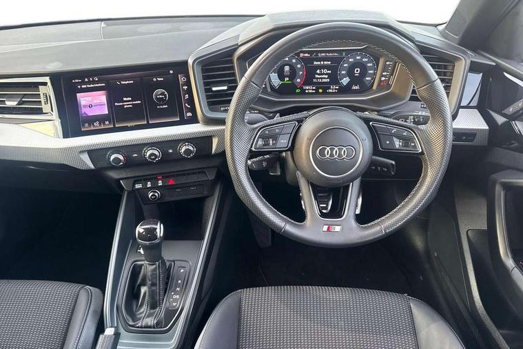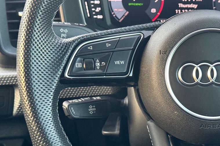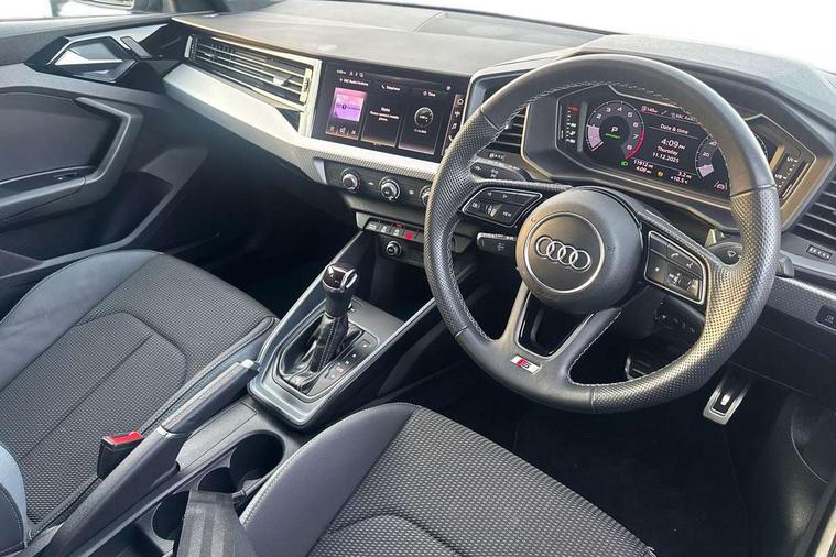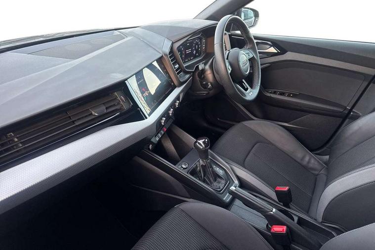 10.25" Digital instrument cluster display classis style instrument dials + speed, odometer, time, outside temperature, telephone menu + fuel level warning, Audi drive select - power steering assistance + engine + gear shift 3 preset modes (auto, dynamic, efficiency and an Individual mode), Audi smartphone interface with connect compatible smartphone via USB directly MMI display + Nav, music, third party apps controlled via MMI controller, Automatic start/stop system, Bluetooth interface, Cruise control, Driver's information system, Electromechanical power steering, Emergency e-call, Lane departure warning system, Rear parking sensor, Service interval indicator, Speed limiter, Voice control system, Washer fluid level indicator, Sports suspension, 2 x USB type C connection points, 6 passive loudspeakers, DAB Digital radio, MMI radio plus with 10.1" colour MMI display screen and MMI touch, Auto dimming rear view mirror, Body coloured door mirrors, Door sills with aluminium inlays and S Line logo, Electric front and rear windows, Electrically adjustable, heated, folding door mirrors with integrated LED side indicator, Front side air inlets in grained matt black and C frame in anthracite black, Heat insulating glass windscreen and side windows, Heated rear windscreen, High level LED brake light, LED headlights with LED rear lights + dynamic rear indicators + headlight adjustment and high beam, turning light + LED daytime running lights, Privacy glass, Radiator grille and rear diffuser in matt anthracite black, Radiator protective grille frame in matt aluminium silver, Rain and light sensors, Rear fog lights, Rear side wing doors, Rear wiper, S line badges on front wings, Side front spoiler lips in grained matt black, 12V socket in centre console with two cup holders, 3 rear seats with headrests, 3 seat bench in 2nd row, 3 spoke leather multi-function plus steering wheel features S badging and grips in perforated leather with contrast stitching, 40:60 Split folding rear seat or folded fully, Black cloth headlining, Driver and passenger seat with manual height adjust with forward and backwards adjustment, Front and rear black floor mats with contrast stitching in fine silver, Front head restraints, Front passenger seat, Height and reach adjustable steering wheel, ISOFIX child seat mounting for front passenger and outer rear seats including top tether attachment point of outer rear seats, Leather gear knob with aluminium trim, Leather handbrake grip, Luggage compartment light with front and rear reading lights, Manual air conditioning, Manually adjustable lumbar support in front seats, Stainless steel pedals, LED interior lighting pack - A1, Luggage compartment pack - A1, S line exterior styling pack - A1 Sportback, 3x3 point rear seatbelts, Audi pre-sense front with pedestrain and cyclist recognition, Brake assist function, Driver and front passenger airbag with front side and head airbags, Electronic Stability Control including ABS, EBD, ASR and EDL, Front passenger airbag deactivation switch, Hill hold assist, Manual rear child locks, Seatbelt height adjustment for front seats, Seatbelt monitoring, Tyre pressure warning light, Warning triangle and first aid kit, Anti theft alarm, Anti theft wheel bolts and loose wheel warning, Immobiliser, Remote central locking with 2 foldaway keys, Aluminium trim for control switches, air vents and digital instrument cluster, Black dashboard, Silver grey inlays polygon structure in diamond paint finish, Structured grey accent areas including air vents, door handle recesses and centre console in quartz paint finish,