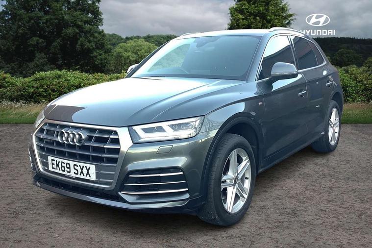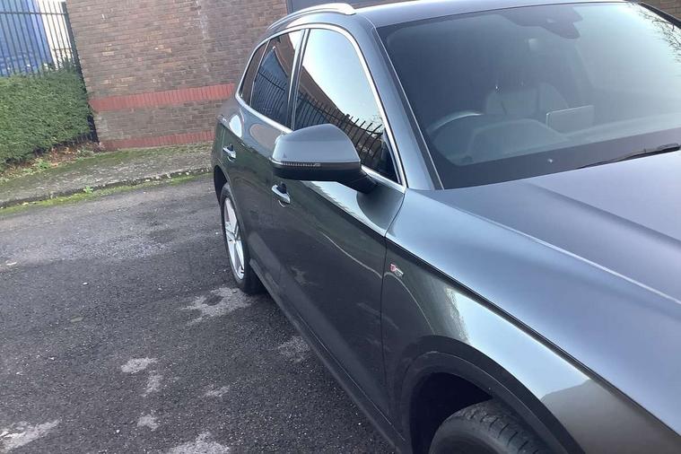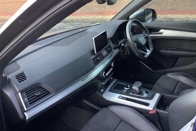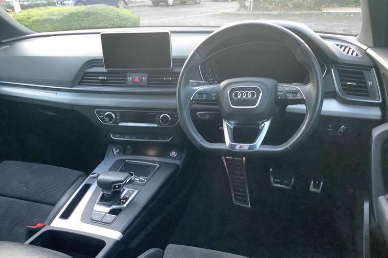 7" Colour driver information system, Audi connect safety and service (e-call), Audi drive select, Audi parking system plus with front and rear sensors, Audi Pre sense collision avoidance, Audi smartphone interface, Automatic start-stop system with coasting functionality and efficiency programme, Cruise control + speed limiter, Electro - mechanical power assisted steering, MMI Navigation, Mobile telephone preparation - bluetooth interface, Power tailgate, Service interval indicator, Voice control system, Diesel particulate filter, Dynamic suspension, Quattro on demand, 2 x USB charging port with aux input socket, 2x SD card slot, CD player, DAB Digital radio, MMI radio plus with 7" colour MMI screen and MMI controller, Acoustic windscreen, Air inlets in matt titanium black with blades in matt aluminium silver, Aluminium roof rails, Auto dimming rear view mirror, Automatic headlight levelling, Body colour bumpers, Body colour door mirrors, Body colour rear diffuser with matt aluminium silver surrounds, Body colour S Line side skirts, Body colour underbody protection, Chrome exhaust tailpipe, Electric adjustable/heated/folding door mirrors, Front and rear electric windows, High beam assistant, LED headlights with LED rear lights + dynamic rear indicators, Light and rain sensor for auto activation of lights and windscreen wipers, Loading sill protector in stainless steel, Privacy glass with front acoustic glazing, Rear wiper, S front and rear bumpers, S Line badges on the front wings, S Line rear spoiler, Twilight grey matt radiator grille with matt aluminium horizontal chrome struts, 3 rear headrests, 40:20:40 split folding rear seat with rear centre armrest, Black cloth headlining, Contrast stitching on seats, steering wheel and gear lever gaiter, Deluxe 3 zone electronic climate control, Front centre armrest, Front sport seats with S embossed logo, Front/rear floor mats, Heated front seats, Height adjustable front head restraints, Height/reach adjustable steering column, Illuminated door sill trims with S logo, ISOFIX child seat mounting and top tether, Luggage compartment carpet, Manual seat adjustment with 4-way electric lumbar support, Perforated leather gearknob, Removable luggage compartment floor, Stainless steel pedals, Sunvisors with vanity mirrors, Trunk roller cover, High gloss pack - Q5, LED interior light pack - Q5, Non Smokers pack, 3 point seatbelts on all seats, 6 airbags - Driver, front passenger, curtain and side airbags, Electromechanical parking brake, Electronic stabilisation control including ABS, ASR and EDL, Front passenger airbag deactivation, Hill descent control, Hill hold assist, Multi collision brake assist, Pop-up bonnet for pedestrian protection, Pre sense city, Seat belt force limiter, Seatbelt monitoring, Tyre pressure warning, Warning triangle and first aid kit, Anti theft alarm, Anti-theft wheel bolts, Keyless Go access/ignition system, Remote central locking, Matt brushed aluminium inlays, Tool kit,