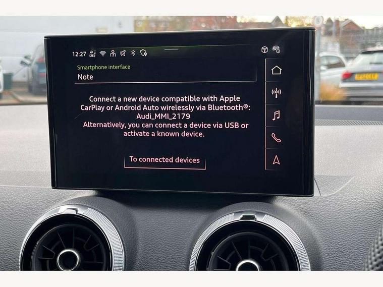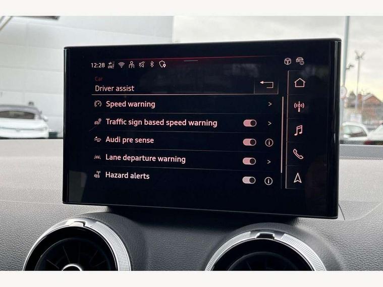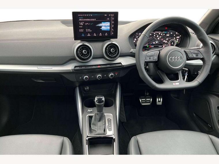 3D map display, Audi connect navigation and infotainment includes innovative services, Audi connect remote and control connects your vehicle to your smartphone, Audi drive select: S tronic - power steering assistance + engine + gearshift (modes: comfort, auto, dynamic, efficiency, individual), Audi smartphone interface - Apple carplay/Android Auto, USB connect, 2xSDXC card readers, voice control for navi, telephone, music and 3rd party apps, Audi virtual cockpit, Automatic start/stop system with recuperation, Bluetooth interface includes bluetooth audio streaming, Camera based traffic sign recognition, Cruise control, Distraction and Fatigue warning, E-call, Jukebox hard drive memory for music (10GB), Lane departure warning, MMI navigation plus with 8.8" touchscreen, Natural voice recognition, Power operated tailgate, Progressive steering, Rear parking sensors, Sport suspension, 6 passive loudspeakers, DAB Digital radio, USB type C port, Audi beam, Auto dimming rear view mirror, Black window trims, Bumper in full body colour paint finish, Electrically adjustable, folding, auto dimming and heated door mirrors with integrated LED side indicators, Front windscreen with grey tinted sunband, LED daytime running lights, LED headlights with dipped beam, high beam, position lights, indicators, LED rear lights, LED third brake light, Privacy glass - dark tinted rear and rear side windows from B-pillar backwards, Rear side wing doors, Rear wiper, Variable front intermittent wipers, Wheel arch trims in manhattan grey, 12v socket in front, 3 seat bench in 2nd row, 3 spoke flat bottomed multi-function leather sport steering wheel with gear shift paddles, 4-way electric lumbar support for front seats including manual seat height adjustment for both front seats, 60/40 split folding rear seat bench, Black carpets, Black cloth headlining, Front and rear head restraints, Front centre armrest, Front sport seats, Front/rear floor mats, Height/reach adjust steering wheel, Illuminated door sill trims with S logo, ISOFIX child seat mounting in front passenger and rear outer seats, Manual air conditioning, Single front passenger seat, Stainless steel pedals, Black styling pack - Q2, 3x3 point rear seatbelts, 6 airbags - Front, curtain and front side airbags, Electromechanical parking brake, Electronic stabilisation control including ABS, ASR and EDL, Front passenger airbag deactivation, Hill hold assist, Pre-sense front with pedestrian recognition, Seatbelt monitoring, Tyre pressure warning light with visual and acoustic warning, Warning triangle and first aid kit, Anti theft alarm, Anti theft wheel bolts, Electronically operated child locks, Remote central door locking, Aluminium interior element, Black dashboard, Gloss black centre console, Matt brushed aluminium trim inlays, Tool kit,