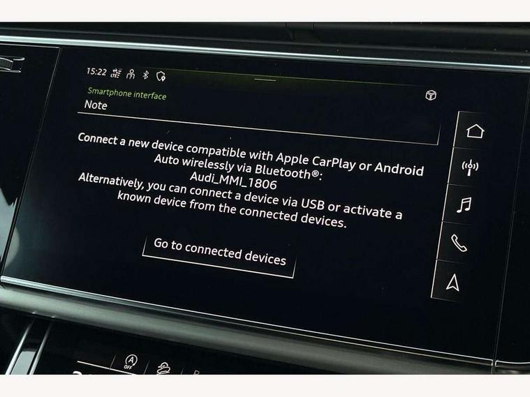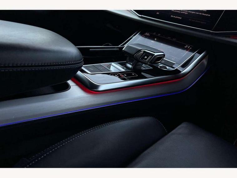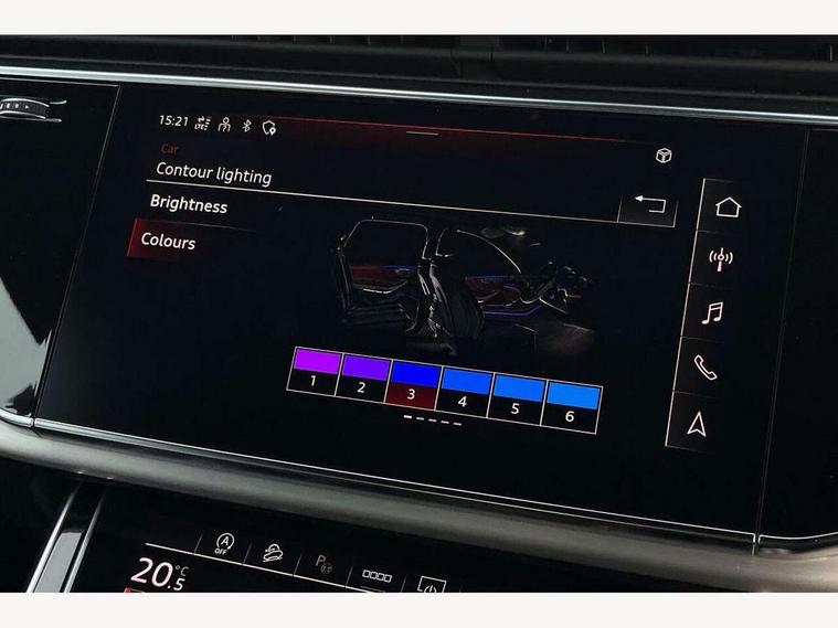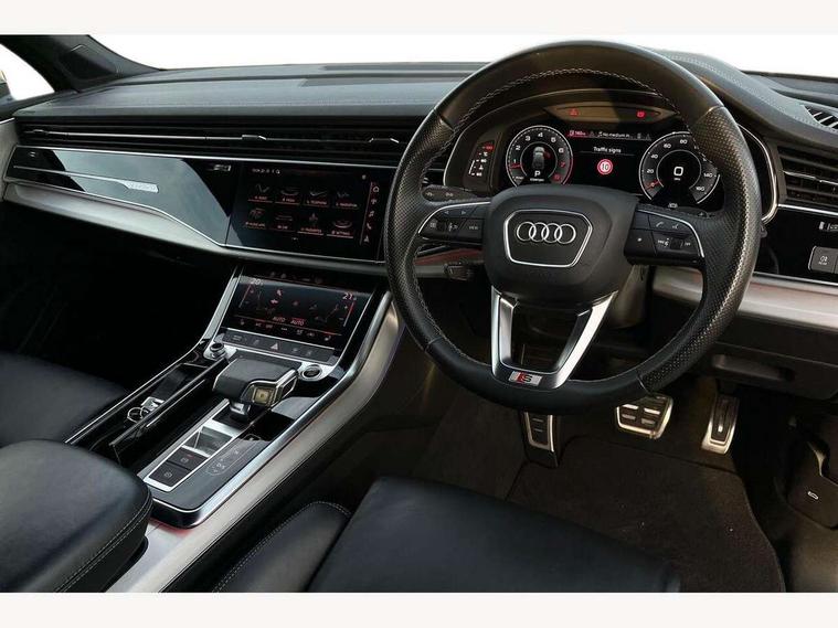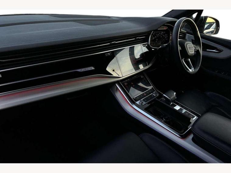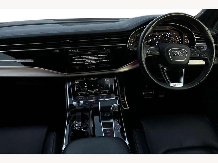 Audi connect safety and service (e-call), Audi connect with Amazon Alexa Integration, Audi drive select (Auto, Comfort, Dynamic, Efficiency, Individual, Off-road and All road), Audi smartphone interface includes wireless Apple carplay/Android Auto, Bluetooth interface, Camera based traffic sign recognition, Electromechanical steering, MMI navigation plus with MMI touch screens includes 10.1" and 8.6" screens with haptic feedback, Natural voice recognition, Parking system plus with 360 degree display (front, rear and side sensors) - acoustic and visual park assist system, Power operated tailgate, Rear view camera, Start/stop system, 48V Mild hybrid technology, 85 litre fuel tank, Adaptive air suspension, Quattro all wheel drive with self locking centre differential, Audi music interface - front 2 USB-C ports with charger and data functions, Audi sound system with 6 channel amplifier, 180 watt amplifying capacity and 10 loudspeakers including subwoofer, DAB digital radio module, 3rd brake light, Aluminium roof rails, Aluminium window trim, Audi matrix LED headlights with dynamic front and rear indicators, Auto dimming frameless rear view mirror, Body coloured door mirrors, Electrically adj heated/folding + automatically dimming exterior mirrors with memory + automatic kerb side function for passenger side exterior mirror, Heat insulating glass in windshield, Integrated LED indications in door mirrors, LED daytime running lights, LED rear tail lights, Privacy glass - dark tinted rear and rear side windows from B-pillar backwards, Rear side wing doors, Rear wiper, S Line badge on wings, S line bumpers in full body colour paint finish, S line roof spoiler, S line styling side ventilation grilles and side skirts, 2 seat bench in 3rd row, 2 zone automatic climate control, 3 seat bench in 2nd row, 7 seat layout with ISOFIX points for the front passenger seat and rear passenger seat, Black cloth headlining, Comfort front centre armrest, Electric adjustable front seat with 4 way lumbar support, driver memory functionality, Folding rear seats, Front head restraints, Front/rear floor mats, Heated front seats, Illuminated door sill trims with S logo, LED interior ambient lighting, Luggage compartment cover, Luggage compartment sill protection in stainless steel, Rear head restraints, Single front passenger seat, Stainless steel pedals, Sunvisors with illuminated vanity mirrors, Tool kit, 3 point seatbelts on all rear seats, Audi pre sense front, Child locks on rear doors, Driver and front passenger, front side and curtain airbags, Electromechanical parking brake, Electronic Stabilisation Control (ESC) including ABS, ASR and EDL, Extended pedestrian protection measures, Hill hold assist, Seatbelt monitoring, Tyre pressure loss indicator, Warning triangle and first aid kit, Anti theft alarm, Anti-theft wheel bolts and wheel loosening detection, Keyless Go, Remote central locking, Darkened matt brushed aluminium inlays, Tyre repair kit,