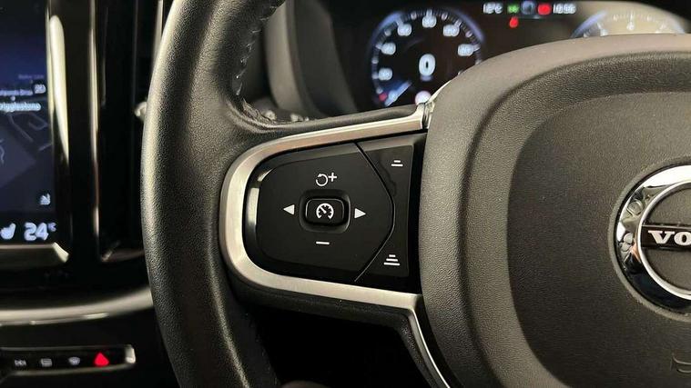 12.3" Active TFT crystal driver's instrument display, 9" Touch screen, Adjustable steering wheel force, Bluetooth hands free telephone kit, Drive mode selector, Front collision warning with full auto brake, Intelligent driver information system (IDIS), Lane keep assist with driver alert control, Oncoming Lane Mitigation, Power tailgate, Remote fuel flap release, Road Edge Detection, Service interval indicator, Speed limiter, Speed sensitive steering, Trip computer, Voice control system, Volvo on call, DAB Digital radio, Steering wheel mounted remote controls, Aluminium tread plates, Auto dimming interior + exterior mirrors, Body colour bumpers, Body colour door mirrors, Electric folding door mirrors, Electric front+rear windows, Electrically adjustable and heated door mirrors, Headlamp levelling, Home safe and approach lighting, Illuminated side steps, LED Headlights + Active high beam incorporating daytime running lights, Piano black front grille with chrome surround, Rear wiper, Roof antenna, Roof spoiler, Silver roof rails, Tinted windscreen, Twin exhaust tailpipes with chrome finishers, Visible VIN plate, 12V power point in luggage area, 12V socket in front + rear tunnel console, 3 spoke leather steering wheel with chrome trim, 60/40 split folding rear seat, A-pillar parking ticket holder, B Pillar ventilation, Bright metal luggage threshold, Centre armrest storage illumination, Centre console cupholders and storage, Floor mats, Front footwell illumination, Front/rear reading lights, Glovebox illumination, Head restraints for all seats, Heated front seats, Height/reach adjustable steering column, Illuminated driver/passenger vanity mirrors, Illuminated luggage compartment, ISOFIX attachment on outer rear seats, Leather upholstery, Load cover, Pollen filter, Rear armrest / integral cup holders / storage tray, Rear seat concealed storage, Theatre dimming interior lights, Ticket holder, Underfloor stowage compartment, Vanity mirror with ticket holder, WHIPS - Whiplash Protection System, 5 three point seatbelts, ABS/EBD, City safety with steering support with Pedestrian + cyclist + large animal detection + front collision warning with full auto brake, Curtain airbags, Drivers knee airbag, DSTC-Dynamic Stability and Traction Control, Dual stage driver/passenger airbags, EBA, Electronic parking brake with auto hold, Fasten seatbelt reminder, First aid kit, Hill descent control, Hill start assist, Hydraulic Brake Assist (HBA), Passenger airbag deactivate switch, Road sign information display, Run off Road Protection, Seatbelt pre-tensioners, SIPS airbags, Tyre pressure monitor, Warning triangle, Anti-theft alarm including immobiliser/volume sensor + level sensor, Key integrated remote control central locking + fuel flap with deadlocking system and auto open/close power windows, Locking wheel nuts, Private locking for tailgate, Iron ore inlays,