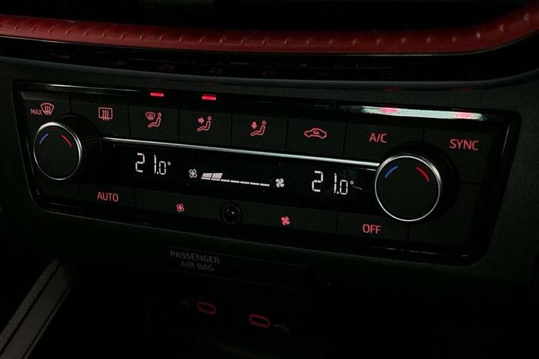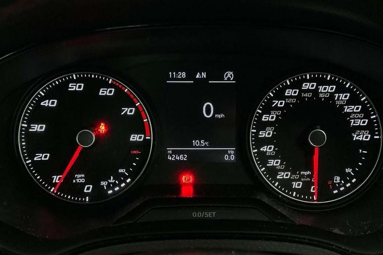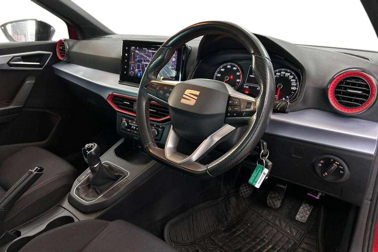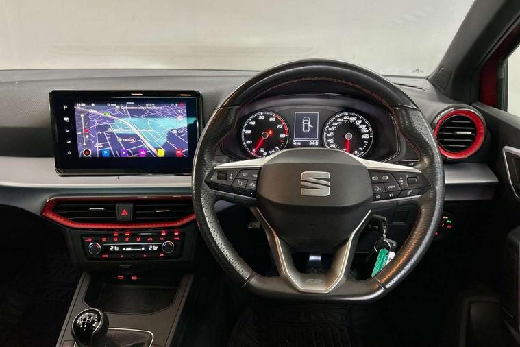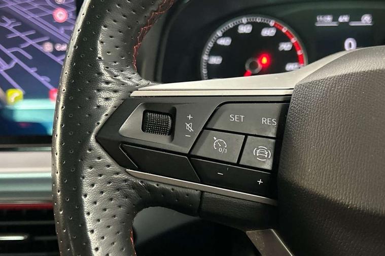 'Lights On' Reminder warning buzzer, 9.2" touchscreen navigation system with type C USB socket, Voice control and DAB/AM/FM radio, Auto start and stop system, Bluetooth audio streaming with handsfree system, Digital clock, Full link smartphone integration with mirror link, wireless apple carplay, Google android auto + USB Type C cable for apple and android devices, Lane assist, Low fuel warning light, Outside temperature gauge, Power Steering, Seat connect with safety, service, remote and online, SEAT drive profiles and ECO function, SEAT logo boot release, Speed limiter, Trip computer, Sports suspension, Auxiliary input socket, Radio/MP3 player, SD card slot, Steering wheel mounted controls, Anti theft roof antenna, Auto dimming rear view mirror, Automatic rain sensing wipers, Black door mirrors, Body colour bumpers, Body colour door handles, Brilliant black window surrounds, Dark tinted rear windows, Electric adjustable/heated/folding door mirrors, Electric front windows, Electric headlight adjustment, Electric rear windows, Front/rear fog lights, FULL LED automatic headlights with dynamic headlight range control, coming and leaving home, LED daytime running lights, LED tail lights, Rear roof spoiler with FR twin exhausts, 60/40 split folding rear seat, Ambient interior lighting, Chrome detailing and black headlining, Cloth upholstery, Dual zone climate control with combination filter, Front courtesy lights, Front cupholders x 2, Front reading lights, Gear shift indicator, Glovebox, Height adjustable front and rear headrests (five), Height adjustable front seats, Height/reach adjust steering wheel, Illuminated air vent surrounds, Illuminated boot, Instrument lighting with brightness control, Isofix, Leather multifunction flat bottomed sports steering wheel, Passenger sunvisor, Sports seats, Sunvisors with mirror and driver side card holder, 3 point seatbelts on all 3 rear seats, ABS, Active front headrests, Child locks on rear doors, Electronic stability control, Energy recovery system, Front assist forward collision warning and autonomous emergency braking, Front driver and passenger side airbags with curtain airbag and front passenger airbag deactivation, Hill hold control, Multi-Collision braking, Seat belt reminder for front and rear seats, Tiredness recognition system, Tyre pressure monitoring system, Electronic engine immobiliser, Locking wheel bolts, Perimeter alarm and interior monitoring with backup horn and tow away protection, Remote central locking + deadlocks, 17" Alloy wheels in Brilliant silver,