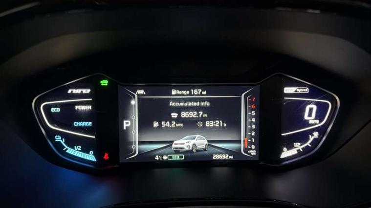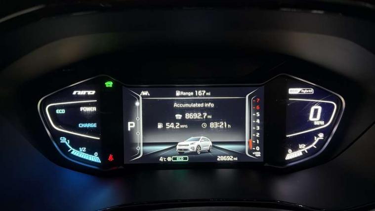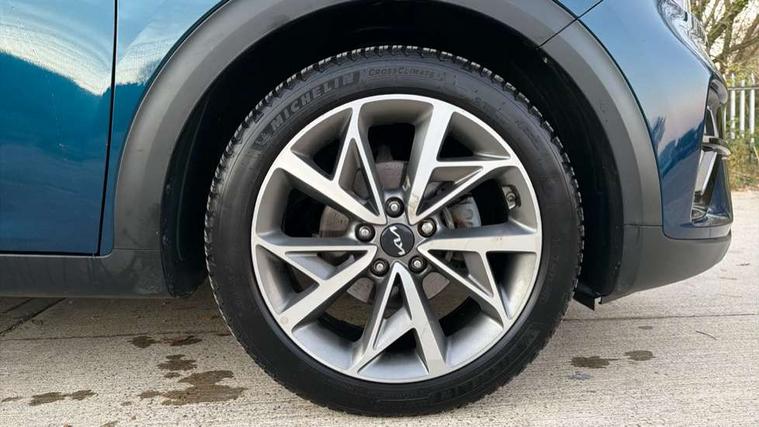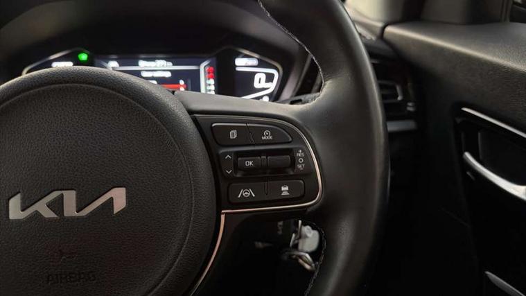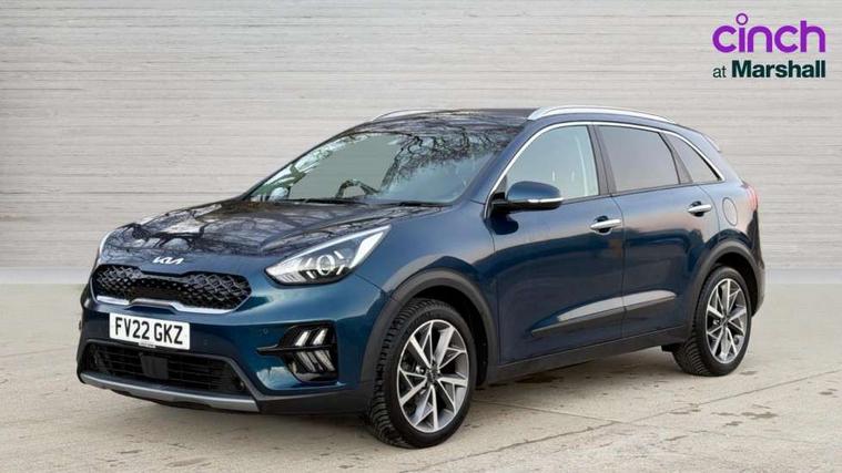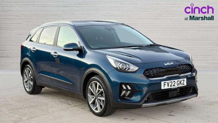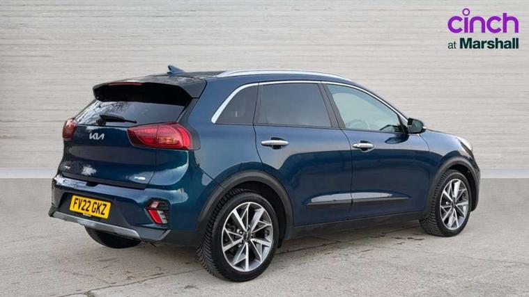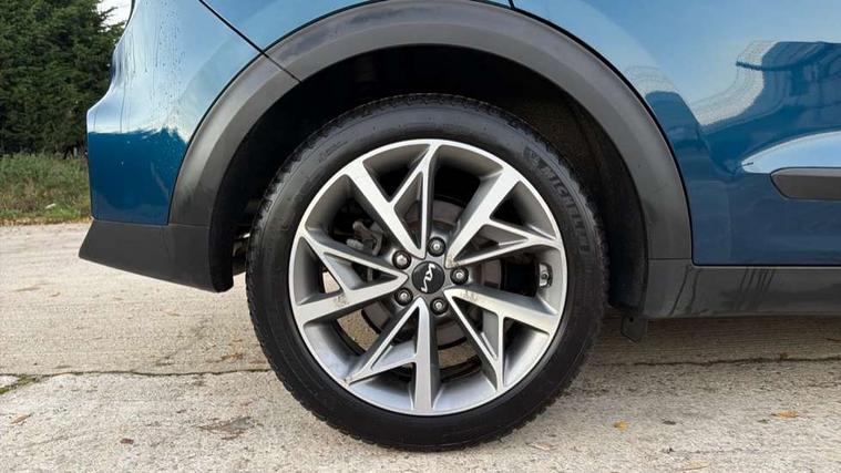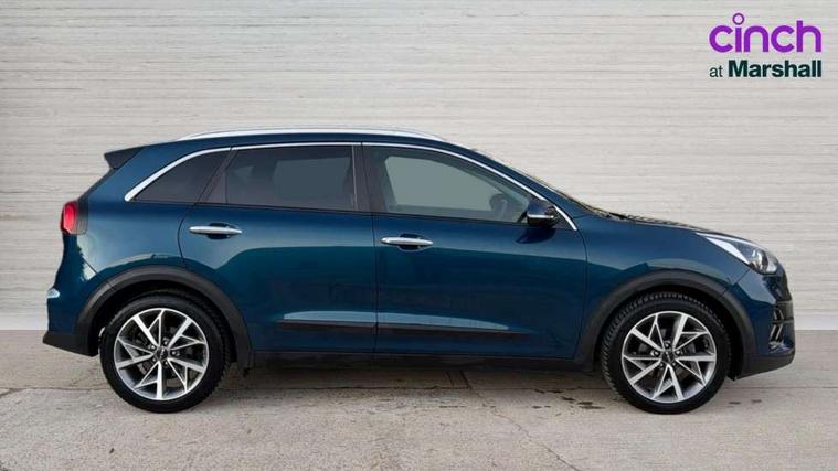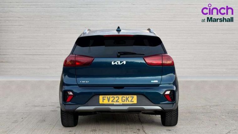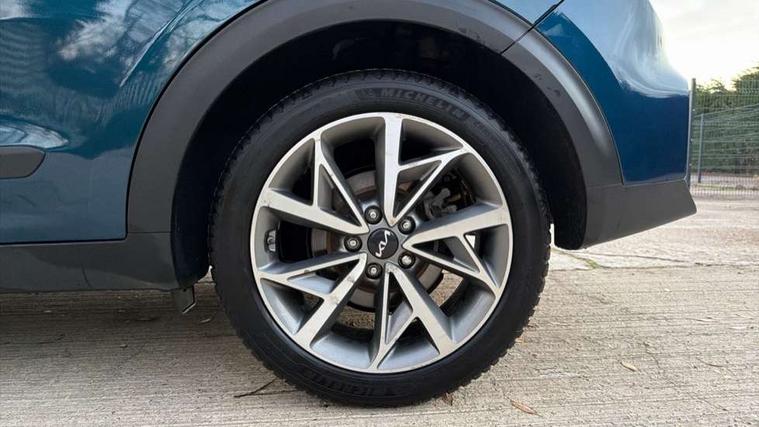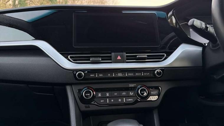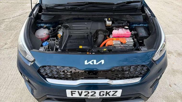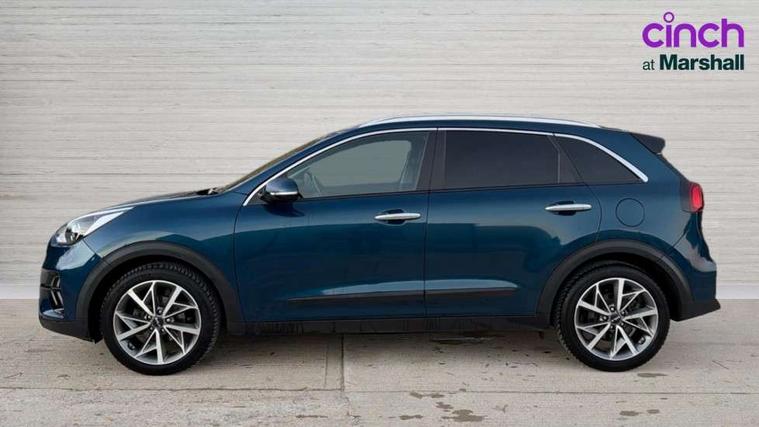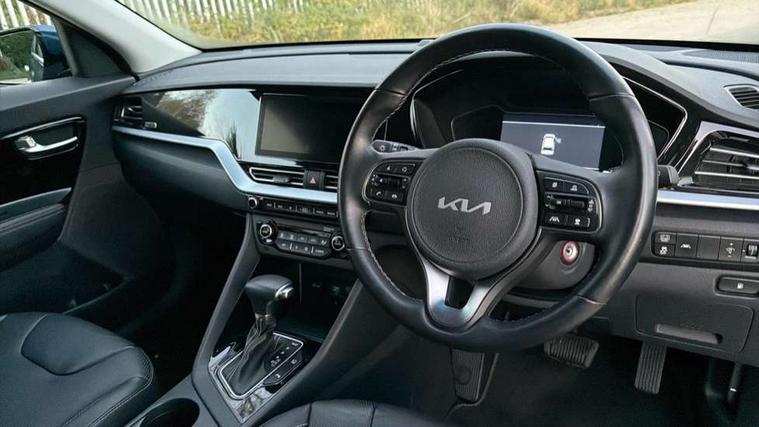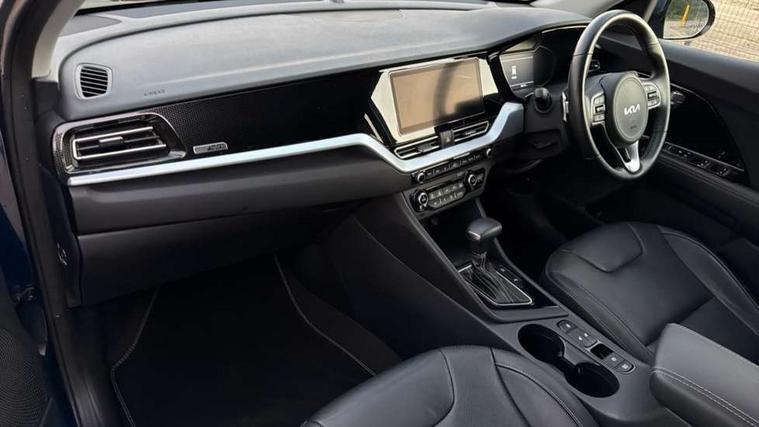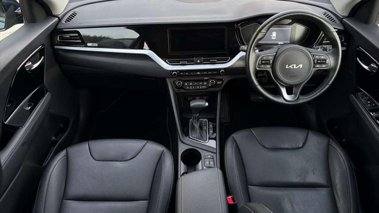10.25" Touch screen satellite navigation with european mapping and traffic messaging channel, 7" full supervision cluster with TFT colour display, Adaptive smart cruise control function (SCC) with stop and go, Apple car play/Android Auto with voice control, Digital clock, Drive mode selector, Driver attention warning, Emergency call service, Emergency stop signalling system, Forward collision avoidance assist, Front parking sensors, Kia connected services featuring TomTom live, Lane Following Assist (LFA), Lane keep assist, Motor driven power steering, Rear parking sensors, Reversing camera, Speed limiter, Trip computer with distance/fuel consumption/average speed, UVO connect, Wireless Smartphone charger, 'Shark fin' mobile antenna, 6 speakers, Bluetooth with music streaming, DAB Radio with MP3, Steering wheel mounted controls, USB connection located in centre console, USB port, All round electric windows with drivers and front passenger auto up/down function, Auto dimming rear view mirror, Automatic defog system, Automatic headlight control system, Black beltline mouldings, Black side sills, Black wheel arch mouldings, Body colour bumpers, Body coloured/high gloss door mirrors, Chrome door handles, Driver's side wide angle mirror, Electrically folding/adjustable/heated door mirrors with LED indicators, LED daytime running lights, LED fog lights, LED rear combination lights, LED third brake light, Manual headlight levelling, Matt black radiator grille, Privacy glass - Rear windows and tailgate, Projector headlamps, Rain sensing front wipers, Rear side wing doors, Rear spoiler, Rear wiper, Roof rails, Solar glass, Variable front intermittent wipers, Waistline black paint, Welcome and follow-me home light functionality, 3 seat bench in 2nd row, 3 x passenger assist grips, 60/40 split/folding 2nd row of seats, 8 way electric adjustable drivers seat, All-round height adjustable headrests, Aluminium door scuff plates, Bulb type overhead console lamp with sunglasses case, Centre console storage box, Centre room lamp, Cupholders in rear armrest, Driver/passenger sunvisors with illuminated vanity mirrors, Drivers seat power lumbar support, Dual zone automatic air conditioning, Front and rear door storage, Front/rear centre armrests, Headlining in Light grey, Heated front seats, Heated steering wheel, High gloss black lower console trim, High gloss black steering wheel trim, Illuminated ignition key hole, Interior door lock/unlock function, ISOFIX Child seat top tethers and anchor fixings, Leather trimmed door armrests, Leather trimmed steering wheel, Leather trimmed steering wheel and gearshift, Leather upholstery, Luggage area lamp, Luggage area load cover, Luggage net with hooks, Paddle shifts, Passenger seat height adjuster, Satin finish inner door handles, Seatback pocket - driver, Seatback pocket - front passenger, Single front passenger seat, Tilt/telescopic adjustable steering wheel, Under floor storage box, Ventiliation ducts to rear compartment, Towing pack - Niro, 3 point seatbelts on all seats, ABS, Automatic unlocking of doors in case of impact, Drivers knee airbag, Electric parking brake with auto hold function, Electronic stability control, Front passenger airbag cut-off switch, Height adjustable front seatbelts, Hill start assist control (HAC), Manual child lock in rear doors, Traction control, Twin curtain airbags with roll over sensor, Twin front and side airbags, Tyre pressure monitoring system, Alarm system and engine immobiliser, Deadlocks, Locking wheel nuts, Remote central door locking with fold away key, Speed sensitive auto door locking, Visible vehicle identification number, High gloss black centre fascia, High gloss black door inserts, 18" Alloy wheels, Tyre mobility kit,