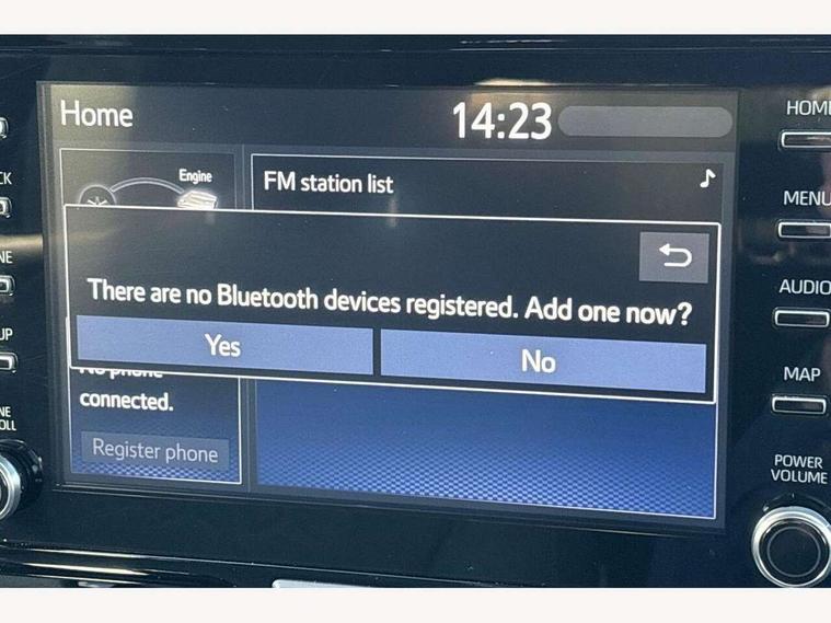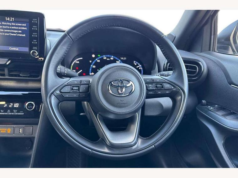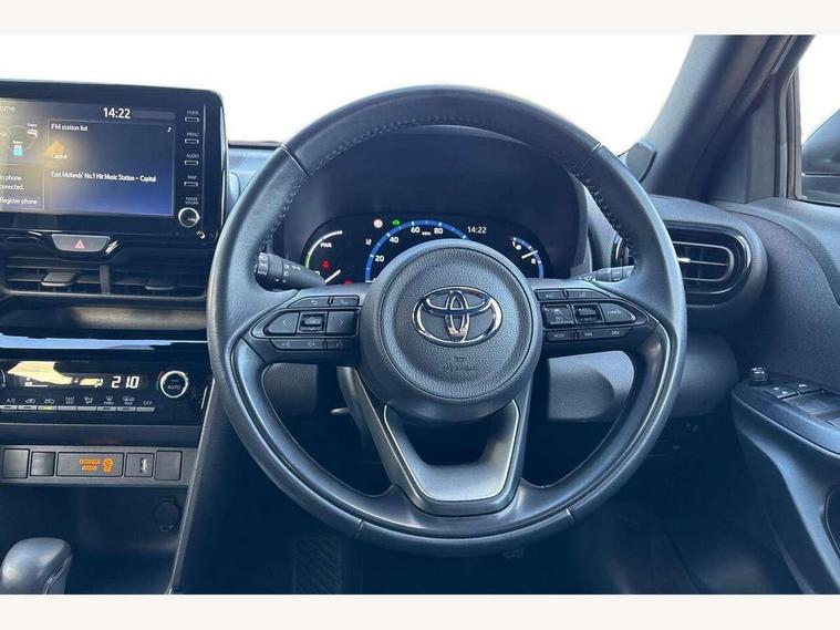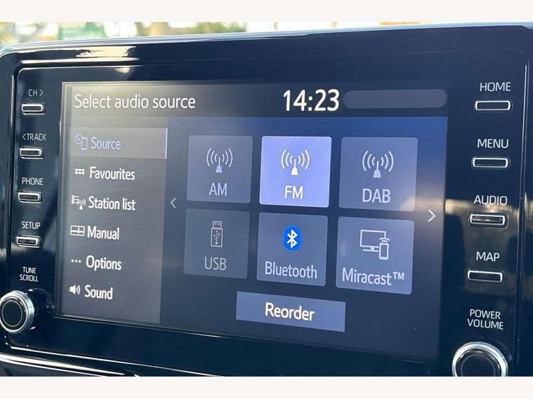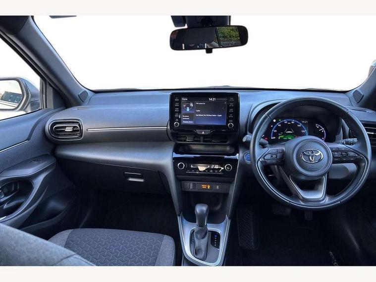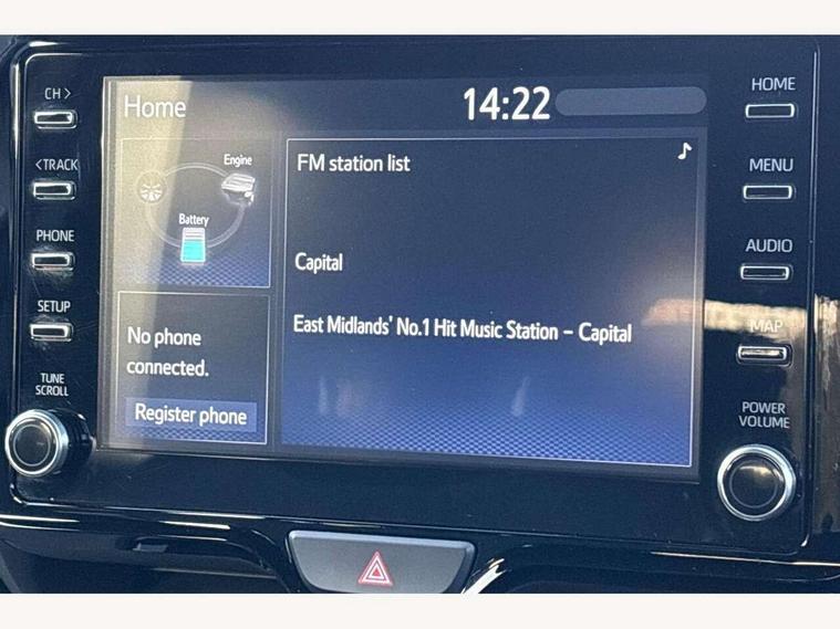 7" Multi information display screen, 8" Toyota touch 2 multimedia system with Smartphone integration with Apple CarPlay and Android auto, Adjustable speed limiter, Bluetooth connectivity, Driver attention alert system, eCall emergency system, Electric power steering, Full range intelligent adaptive cruise control, Hybrid system indicator, Key reminder warning, Lane trace assist, Multimedia, audio, telephone and voice recognition switches on steering wheel, My T Connected services, Pre-collision system enhanced with emergency steering assist, Reversing camera, Road sign assist - RSA, Steering assisted vehicle stability control, 6 speakers, DAB Digital radio, USB connection, 3rd brake light, Acoustic windscreen glass, Aluminium roof rails, Anti-jam protection on power windows, Auto high beam [AHB] with on/off switch, Automatic headlights, Black lower front grille, Black Shark-fin antenna, Black upper front grille, Black wheel arch mouldings, Body colour door handles, Body colour front bumper, Body colour rear bumper, Electric adjustable heated door mirrors, Follow me home headlights, Front and rear electric windows with auto up/down function, Front intermittent wipers, Headlight cut off reminder, Indicators integrated on door mirrors, Intermittent rear wiper, LED daytime running lights guide, LED front fog lights, LED front light guide, LED Indicators, LED projector headlights, LED rear light guide, Manual headlight levelling, Manually retractable door mirrors, Noise reduction layer on windscreen, Privacy glass, Rain sensor, Rear LED lights with sequential indicators, Rear side wing doors, Rear spoiler, Rear window defogger, 12v power outlet - front, 2x Rear coat hooks, 3 seat bench in 2nd row, 3 spoke leather steering wheel, 40:20:40 split folding rear bench seat, Adjustable speed limiter switch on steering wheel, Auto air conditioning, Black roof lining, Boot light, Central armrest, Centre console in light blue ambent lighting, Driver and front passenger personal lights, Fabric door trim, Fabric upholstery, Footwell in light blue ambient lighting, Front console box, Front cup holders, Front head restraints, Glovebox, Height adjustable driver's seat, Height adjustable front passenger seat, Hooks for luggage holding belts, ISOFIX child restraint system, Lane departure alert switch on steering control, Leather gearshift, Light blue ambient lighting on front doors, Manual telescopic and tilting steering wheel, Mirror on driver and passenger sun visor, Pollen air filter, Rear cup holders, Rear head restraints, Single front passenger seat, Soft tonneau cover, 3x3 point rear seat belts, ABS+EBD+Brake assist, Driver and passenger central airbags, Driver and passenger front airbags, Driver and passenger side airbags, Electronic parking brake, Emergency brake light system (EBS), Front seat belt reminder, Hill start assist control (HAC), Passenger airbag on/off switch, Pre-collision system with pedestrian and cyclist detection, Rear door child safety locks, Rear passenger side airbags, Rear seat belt reminder, Traction control, Tyre pressure warning system, Immobiliser, Intrusion alarm, Keyless smart entry with push button start, Power door locks, Power passenger window lock, Remote door lock, Tyre repair kit,