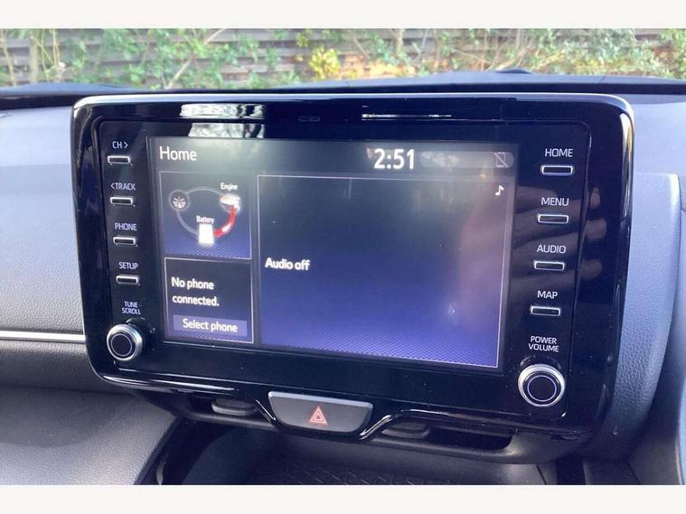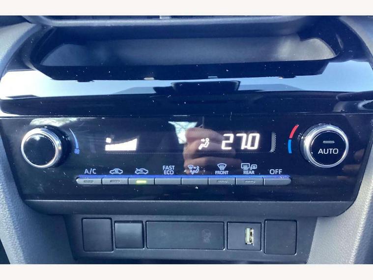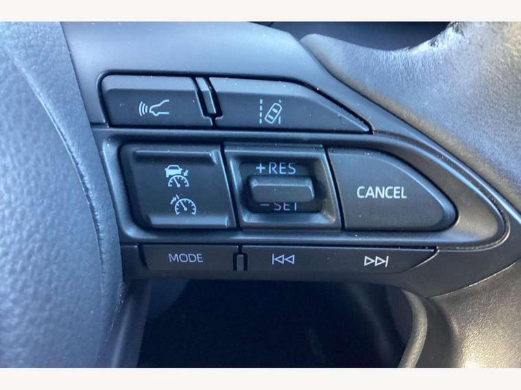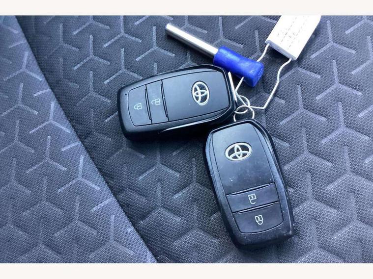 4.2" multi information display, 8" Toyota touch 2 multimedia system with Smartphone integration with Apple CarPlay and Android auto, Adjustable speed limiter, Bluetooth connectivity, Digital speedometer, Driver attention alert system, eCall emergency system, Electric power steering, Full range intelligent adaptive cruise control, Hybrid system indicator, Key reminder warning, Lane trace assist, Multimedia, audio, telephone and voice recognition switches on steering wheel, My T Connected services, Pre-collision system enhanced with emergency steering assist, Reversing camera, Road sign assist - RSA, Steering assisted vehicle stability control, 6 speakers, DAB Digital radio, USB connection, 3rd brake light, Acoustic windscreen glass, Anti-jam protection on power windows, Auto high beam [AHB] with on/off switch, Automatic headlights, Black lower front grille, Black Shark-fin antenna, Black upper front grille, Black wheel arch mouldings, Body colour door handles, Body colour front bumper, Body colour rear bumper, Electric adjustable heated door mirrors, Follow me home headlights, Front and rear electric windows with auto up/down function, Front intermittent wipers, Halogen projector headlights, Headlight cut off reminder, Indicators integrated on door mirrors, Intermittent rear wiper, LED daytime running lights, LED Indicators, Manual headlight levelling, Manually retractable door mirrors, Noise reduction layer on windscreen, Rain sensor, Rear side wing doors, Rear spoiler, Rear window defogger, 12v power outlet - front, 2x Rear coat hooks, 3 seat bench in 2nd row, 3 spoke leather steering wheel, 60/40 split folding rear seat, Adjustable speed limiter switch on steering wheel, Auto air conditioning, Boot light, Central armrest, Driver and front passenger personal lights, Fabric door trim, Fabric upholstery, Front console box, Front cup holders, Front head restraints, Glovebox, Grey roof lining, Height adjustable driver's seat, Height adjustable front passenger seat, ISOFIX child restraint system, Lane departure alert switch on steering control, Leather gearshift, Manual telescopic and tilting steering wheel, Mirror on driver and passenger sun visor, Pollen air filter, Rear head restraints, Single front passenger seat, Soft tonneau cover, 3x3 point rear seat belts, ABS+EBD+Brake assist, Driver and passenger central airbags, Driver and passenger front airbags, Driver and passenger side airbags, Electronic parking brake, Emergency brake light system (EBS), Front seat belt reminder, Hill start assist control (HAC), Passenger airbag on/off switch, Pre-collision system with pedestrian and cyclist detection, Rear door child safety locks, Rear passenger side airbags, Rear seat belt reminder, Traction control, Tyre pressure warning system, Immobiliser, Intrusion alarm, Keyless smart entry with push button start, Power door locks, Power passenger window lock, Remote door lock, 16" 10 spoke alloy wheels, Tyre repair kit,
