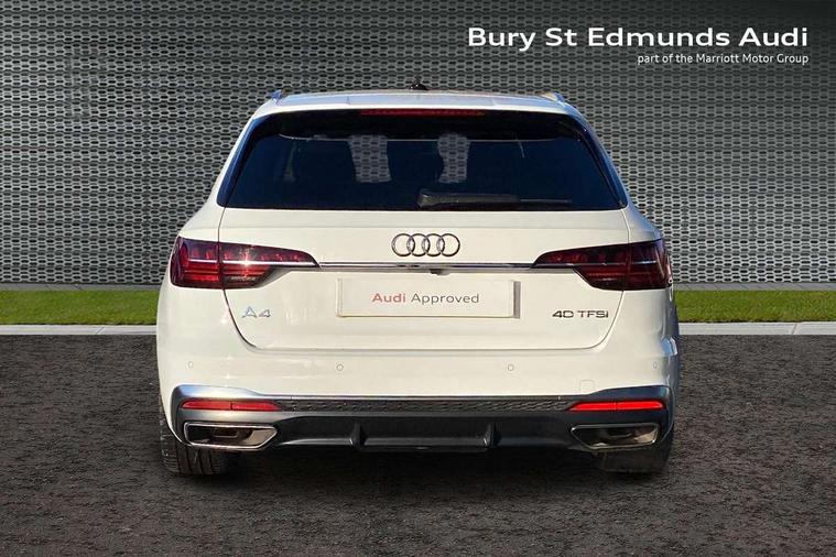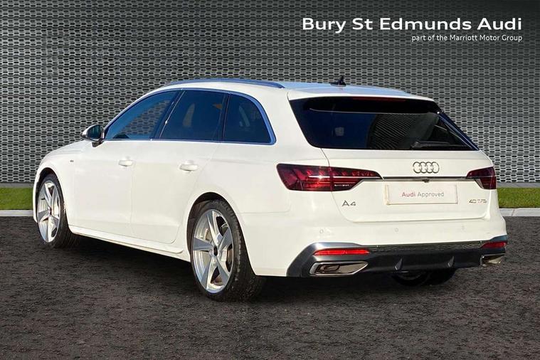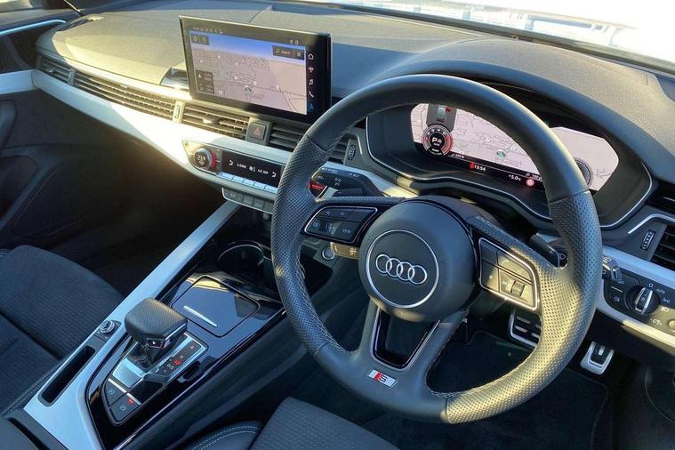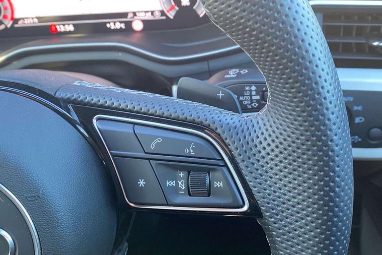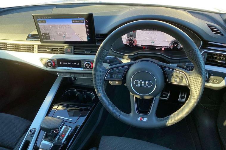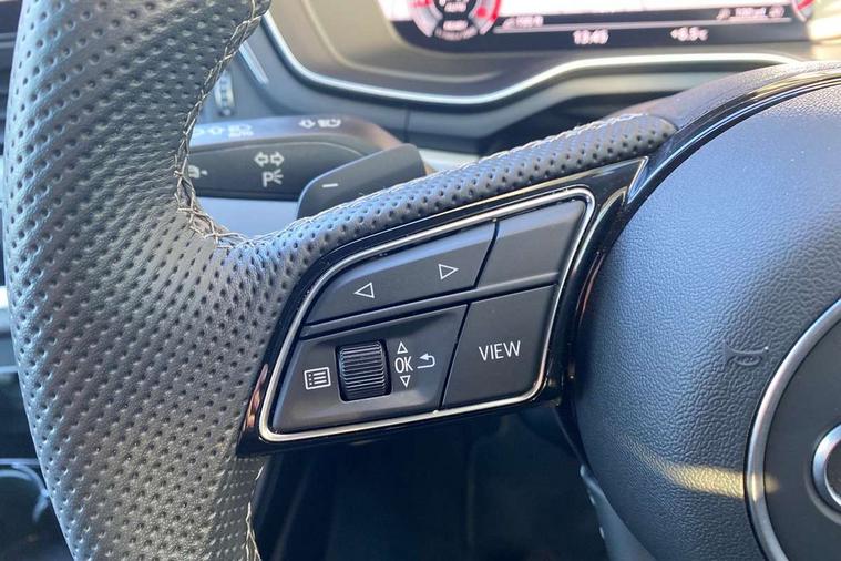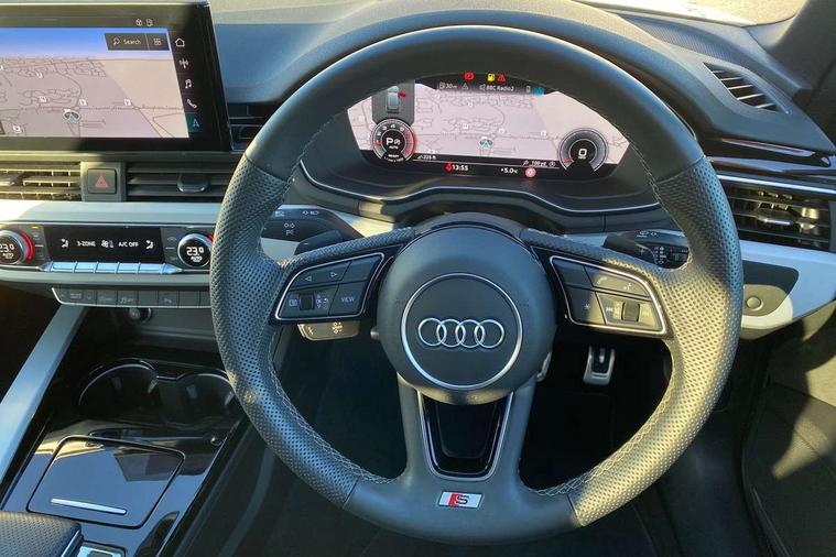 Audi connect safety and service (e-call), Audi drive select, Audi smartphone interface, Audi virtual cockpit, Automatic start-stop system with coasting functionality and efficiency programme, Bluetooth interface, Camera based traffic sign recognition, Electromechanical power steering, Email, calendar and text messages displayed via MMI, Front and rear parking sensors, Lane departure warning, MMI Navigation plus with MMI touch includes 10.1" high resolution colour MMI display, 3D map, Power operated tailgate, Rear view camera, Voice control system, 54 litre fuel tank, Sports suspension lowered by 23mm, 2 USB charging ports, 8 passive loudspeakers, DAB digital radio reception, Aluminium roof rails, Auto dimming rear view mirror, Body colour door handles, Body colour front spoiler lip, Body colour side sill trim, Body coloured door mirrors, Electric adjustable/heated/folding door mirrors with auto dimming, Grained matt black side air inlets with matt aluminium silver inlay, High beam assistant, Honeycomb structure radiator grille in grained matt black, LED headlights with LED rear lights + dynamic rear indicators + headlight adjustment and high beam, turning light + LED daytime running lights, LED third brake light, Matt aluminium silver tailpipe trim, Privacy glass, Rain and light sensors, Rear side wing doors, Rear wiper, S Line badges on the front wings, S line front and rear bumpers with side skirts, S Line rear diffuser in matt anthracite black with trim strip in matt aluminium silver, S Line roof edge spoiler, Variable intermittent front wash/wipe, Windscreen with acoustic glazing, 3 spoke high multi-function sports leather steering wheel grips in perforated leather with S badging including paddle shift, 4 way electric lumbar support for driver and front passenger, 40/20/40 split folding 3 rear seat bench in 3 parts with rear centre armrest, Black carpets, Black cloth headlining, Black perforated leather gearknob, Contrast stitching on seats, steering wheel and gear lever gaiter, Deluxe 3 zone electronic climate control, Electric load area cover, Front and rear head restraints, Front centre armrest, Heated front seats, Illuminated door sill trims with S logo, ISOFIX child seat mounting and top tether, Manual seat adjustment, Single front passenger seat, Stainless steel pedals and foot rest, High gloss package - A4, LED Interior light pack - A4/S4, 3 rear seatbelts, 6 airbags - Driver, front passenger, curtain and side windows, Attention and drowsiness assist, Electronic Stabilisation Control (ESC) including ABS, ASR and EDL, Hill hold assist, Multi collision brake assist, Pop-up bonnet for pedestrian protection, Pre sense city, Rear door child safety locks, Seatbelt monitoring, Warning triangle and first aid kit, Anti theft alarm, Anti theft wheel bolts, Central locking, Keyless Go, Matt brushed aluminium inlays, Tool kit, Tyre repair kit,