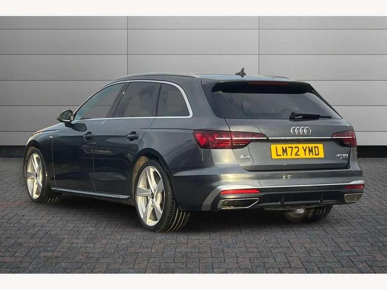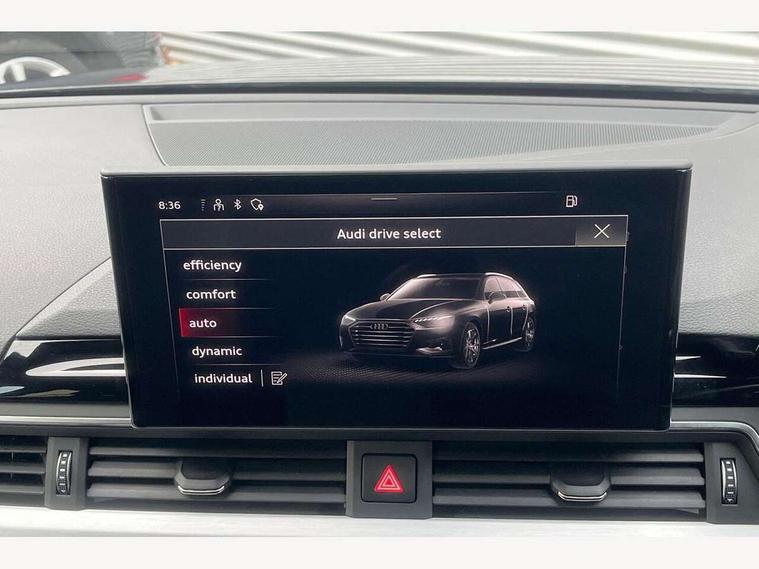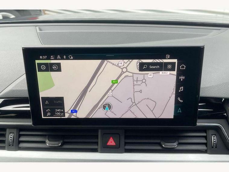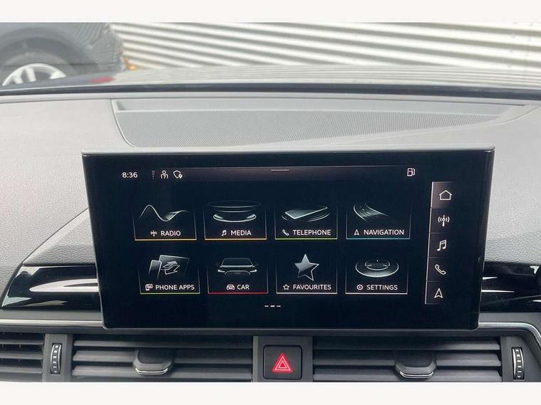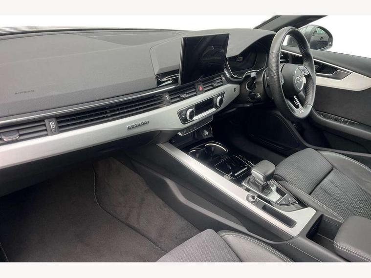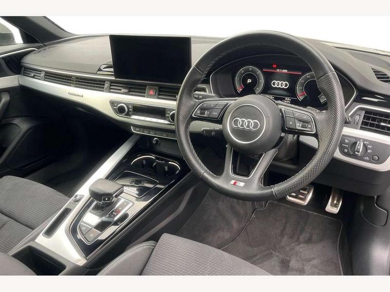 Audi connect safety and service (e-call), Audi connect with Amazon Alexa Integration, Audi drive select, Audi smartphone interface, Audi virtual cockpit, Automatic start-stop system with coasting functionality and efficiency programme, Bluetooth interface, Electromechanical power steering, Email, calendar and text messages displayed via MMI, MMI Navigation plus with MMI touch includes 10.1" high resolution colour MMI display, 3D map, Power operated tailgate, Voice control system, 58 Litre fuel tank, Sports suspension lowered by 23mm, 2 USB charging ports, 8 passive loudspeakers, DAB digital radio reception, Aluminium roof rails, Auto dimming rear view mirror, Body colour door handles, Body colour front spoiler lip, Body colour side sill trim, Body coloured door mirrors, Electrically folding auto dimming/adjustable/heated door mirrors with LED side indicators and kerb view function for passenger side, Grained matt black side air inlets with matt aluminium silver inlay, High beam assistant, Honeycomb structure radiator grille in grained matt black, LED headlights with LED rear lights + dynamic rear indicators + headlight adjustment and high beam, turning light + LED daytime running lights, LED third brake light, Matt aluminium silver tailpipe trim, Privacy glass, Rain and light sensors, Rear side wing doors, Rear wiper, S Line badges on the front wings, S line front and rear bumpers with side skirts, S Line rear diffuser in matt titanium black with trim strip in matt aluminium silver, S Line roof edge spoiler, Variable intermittent front wash/wipe, Windscreen with acoustic glazing, 4 way electric lumbar support for driver and front passenger, 40/20/40 split folding 3 rear seat bench in 3 parts with rear centre armrest, Black cloth headlining, Black perforated leather gearknob, Contrast stitching on seats, steering wheel and gear lever gaiter, Deluxe 3 zone electronic climate control, Door sill trims with aluminium inlay, Electric load area cover, Front and rear head restraints, Front centre armrest, Heated front seats, Illuminated door sill trims with S logo, ISOFIX child seat mounting and top tether, Manual seat adjustment, Single front passenger seat, Stainless steel pedals and foot rest, High gloss package - A4, LED Interior light pack - A4/S4, 3 rear seatbelts, 6 airbags - Driver, front passenger, curtain and side windows, Electronic Stabilisation Control (ESC) including ABS, ASR and EDL, Hill hold assist, Multi collision brake assist, Pop-up bonnet for pedestrian protection, Pre sense city, Rear door child safety locks, Seatbelt monitoring, Warning triangle and first aid kit, Anti theft alarm, Anti theft wheel bolts, Central locking, Keyless Go, Matt brushed aluminium inlays, Tool kit, Tyre repair kit,
