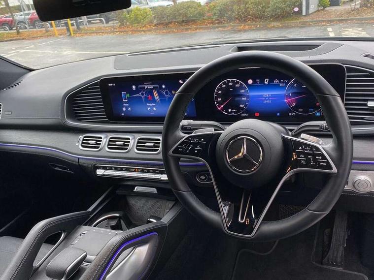 12.3 High resolution wide screen cockpit display with choice of three display styles Classic, Progressive or Sport and unique ambient lighting setting, 360 degree camera, Active parking assist with PARKTRONIC, Attention assist, Brake wear warning display, Direct steer speed sensitive steering, DYNAMIC SELECT with a choice of driving modes (ECO, Comfort, Sport and Individual), Easy-pack tailgate - Powered opening/closing automatically, ECO start/stop function, Hard-disk navigation, Head up Display, MBUX voice control activated by keywords "Hey Mercedes", Mercedes Benz emergency call system, Mercedes me connect - vehicle set up and monitoring, Outside temperature display, Pre-installation for digital key transfer, Service indicator (ASSYST), Status display for rear seat belts in instrument cluster, Traffic sign assist, Trip computer in multifunction display showing current fuel consumption, Wireless charging, Wireless smartphone integration including Apple CarPlay and Android auto, 85 litre fuel tank, 9G TRONIC 9 speed automatic transmission, Airmatic air suspension with adaptive damping system, Diesel particulate filter (DPF), Mild Hybrid starter alternator, Additional USB connection, Bluetooth interface for hands free and audio streaming, Burmester surround sound system, DAB digital radio tuner, Front and rear USB ports, Sound personalisation, Adaptive brake lights, Aluminium look, illuminated running boards with rubber studs, AMG bodystyling front and rear aprons, Auto headlights, Automatically dimming rear view mirror, Body colour door mirrors, Body coloured bumpers, Electric windows with one touch opening/closing and obstruction sensors, Electrically adjustable, heated, folding exterior mirrors, Exterior styling - front bumper, radiator grille and front air intakes, Heat insulating dark tinted glass, Heated windscreen washers, LED 3rd brake light, LED daytime running light signet, LED rear lights, Magic vision control, Multibeam LED headlights with adaptive highbeam assist plus, Panoramic sliding sunroof, Radio aerial integrated into rear window, Rain sensing windscreen wipers, Rear side wing doors, Rear wiper, Roof rail system, Top surround of side windows in polished aluminium, Transparent Bonnet, Visible twin pipe exhaust system integrated into bumper, Waistline in polished aluminium, 3 spoke round bottomed multifunction steering wheel in nappa leather, 4 way adjustable front head restraints and 2 way rear head restraints, 4 way lumbar support for driver and front passenger, 40:20:40 split folding rear seats, Automatic child seat recognition sensor, Black fabric roof liner, Climatised front seats, Double sunvisor, Electric height/reach adjustable steering column, Electrically adjustable front seats with memory function, Front centre armrest with stowage compartment and illuminated grab handles, Gearshift paddles on steering wheel, Glove compartment - lockable, air conditioned and illuminated, Heated rear seats, Heated steering wheel, Illuminated door sill with Mercedes Benz lettering, Interior lighting - 64 colour Ambient lighting, Leather upholstery, Luggage compartment cover, Luxury AVANTGARDE Interior, Seat occupancy sensor for front passenger seat, Second row three seats, Single front passenger seat, Sunvisors with illuminated vanity mirrors, Temperature controlled cupholder, Thermotronic automatic 4 zone climate control, Touchpad, Velour floor mats, Air balance package - GLE, Energizing package - GLE, Exclusive Trim package - GLE, Keyless go comfort package - GLE, Active bonnet, Airbags - driver and front passenger, front sidebag, pelvis bag and window airbags, Anti-lock braking system (ABS), Black seat belts, Childproof locks manually operated for rear doors and electrically operated for rear power windows, Drivers knee airbag, Electronic parking brake, Electronic Stability Programme (ESP), ISOFIX child seat points with automatic child seat recognition, Perforated front brake discs and brake calipers with Mercedes-Benz lettering, Pre safe impulse side, Three point rear seat belts, Tyre pressure monitoring system, Warning triangle and first aid kit, Alarm system/interior protection/immobiliser, Central locking with interior switch, automatic locking and crash sensor with emergency opening function, Chrome surround in electric key, Guard 360 degree vehicle protection plus, Dashboard and door beltlines in ARTICO man made leather, Trim - Centre console, anthracite open pore oak wood trim, TIREFIT with tyre inflation compressor,