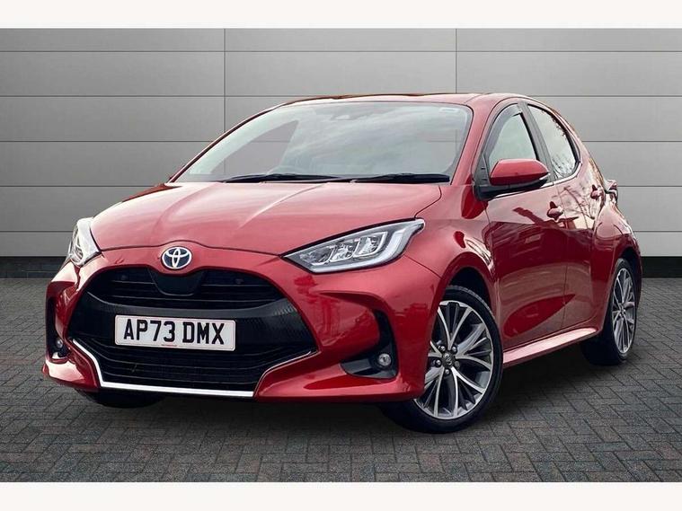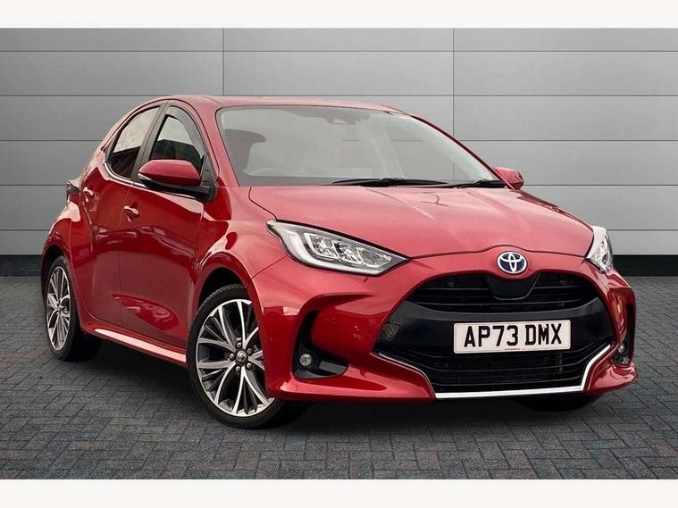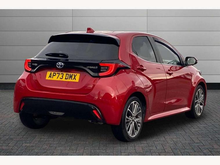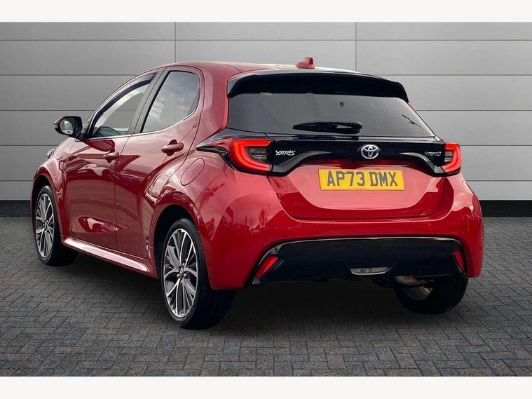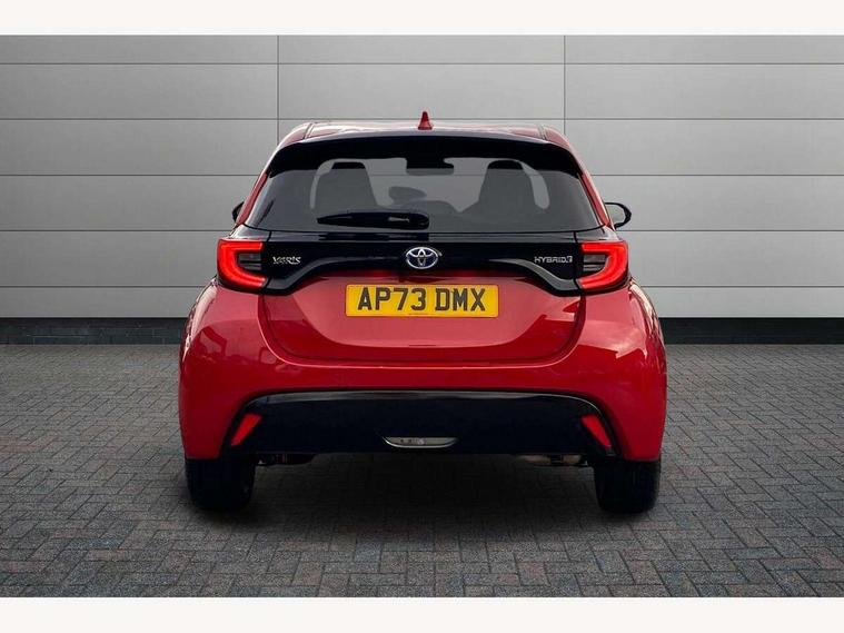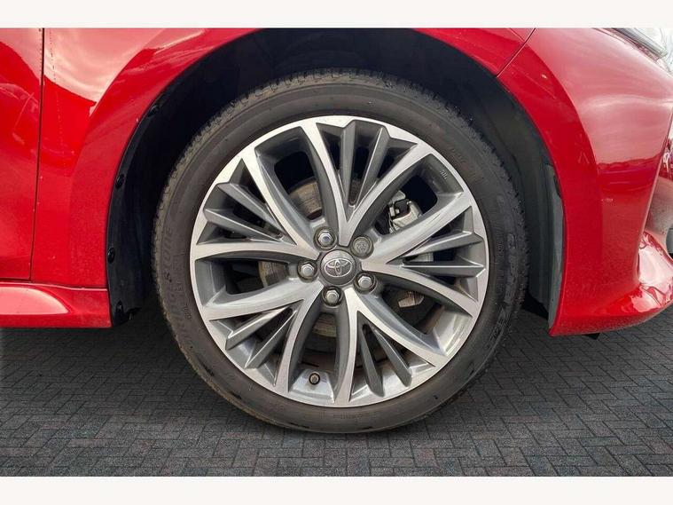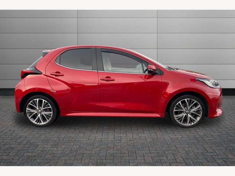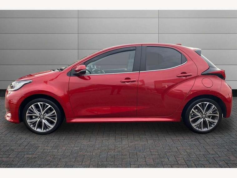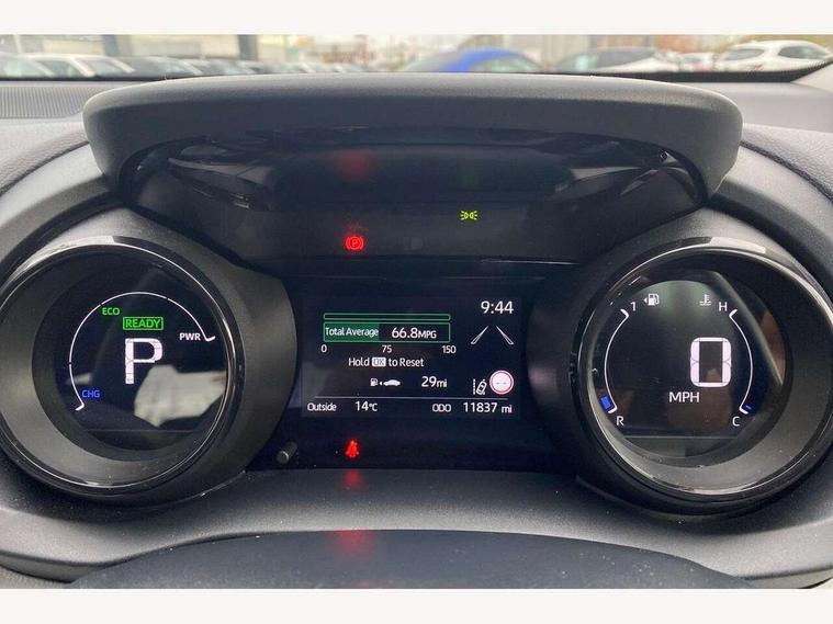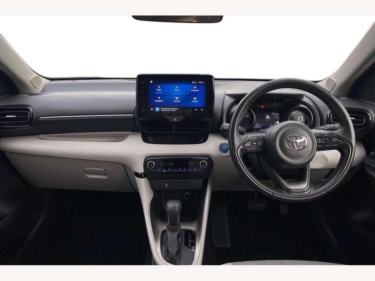 Adaptive cruise control, Adjustable speed limit with speed warning, Blind spot monitoring, Bluetooth connectivity, Colour binocular inspired displays with digital speedometer, E-call, Electric power steering, Hybrid energy display, Multi information display switches on steering wheel, Reversing camera, Smartphone integration with Apple CarPlay and Android auto, Tailgate, Touch 2 navigation system, Voice recognition, Vehicle Stability Control (VSC), 6 speakers, 9" HD multimedia display touch screen with Toyota smart connect, USB connection, Acoustic windscreen glass, Auto windscreen wipers, Automatic headlights, Automatically retractable door mirrors, Body coloured door mirrors, Electric adjustable heated door mirrors, Follow me home headlights, Front auto power windows with anti jam protection, Full LED rear lights, LED daytime running lights, LED front fog lights, LED front light guide, LED Headlights, LED High mounted stop lamp, LED Indicators, LED rear light guide, Manual headlight levelling, Painted chequered front grille, Rain sensor, Rear auto power windows with anti jam protection, Rear privacy glass, Rear side wing doors, Rear spoiler, Rear wiper, Satin lower front grille, Shark fin antenna, Turning signal integrated indicators in door mirrors, Variable front intermittent wipers, 3 adjustable rear headrests, 3 seat bench in 2nd row, 3 spoke leather steering wheel, 60/40 split folding rear seat, Active headrests, Adjustable boot height, Coat hooks in rear grab handles, Cup holders (2 front & door), Data Communication Module (DCM) connected services, Dual zone automatic air conditioning, Fabric seat with partial synthetic leather upholstery, Front armrest, Front sport seats, Glovebox, Grey roof lining, Height adjustable driver's seat, Height adjustable passenger seat, Isofix seat fixing, Leather gearshift, Map pockets on the backs of the front seats, Pollen filter, Shopping bag hooks, Single front passenger seat, Tilt/telescopic steering column, Parking pack - Yaris, 3 point seatbelts on all rear seats, ABS+EBD+Brake assist, Electronic parking brake, Emergency brake light system (EBS), Front passenger airbag on/off switch, Front seatbelt reminder, Hill start assist control (HAC), Rear child proof door locks, Rear seat belt reminder, Supplemental Restraint System (SRS) 8 airbags: Driver & passenger's airbags, dual side curtain airbags, side impact airbags, front centre airbag, Toyota Safety Sense 2, Precollison + Night time Pedestrian & Cyclist Detection, Lane Trace Assist, Auto High Beam, Intelligent ACC & Road Sign Assist, Tyre pressure warning system, 2x Master key, Alarm/immobiliser, Keyless smart entry with push button start, Remote AC via MyT, Remote locking via MyT, Remote powered central double locking doors, Satin chrome interior styling, Soft touch instrument panel, Space saver spare wheel,