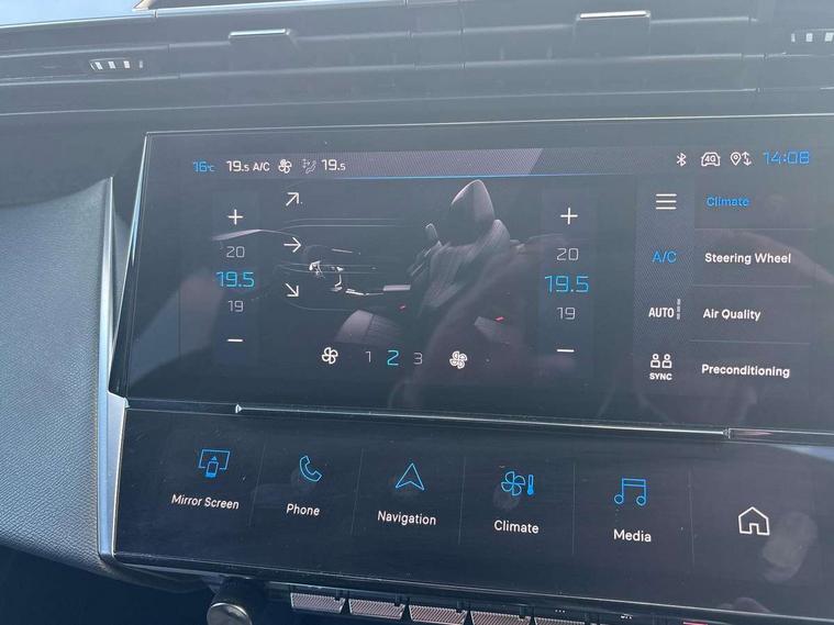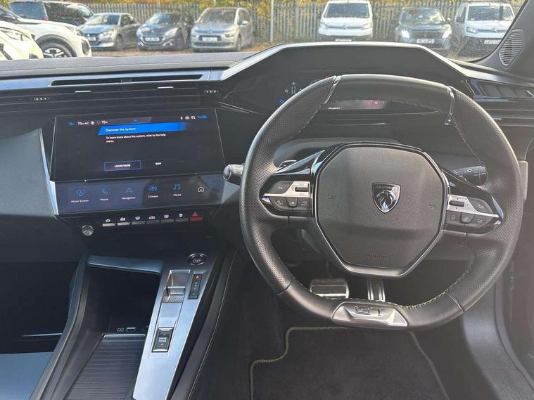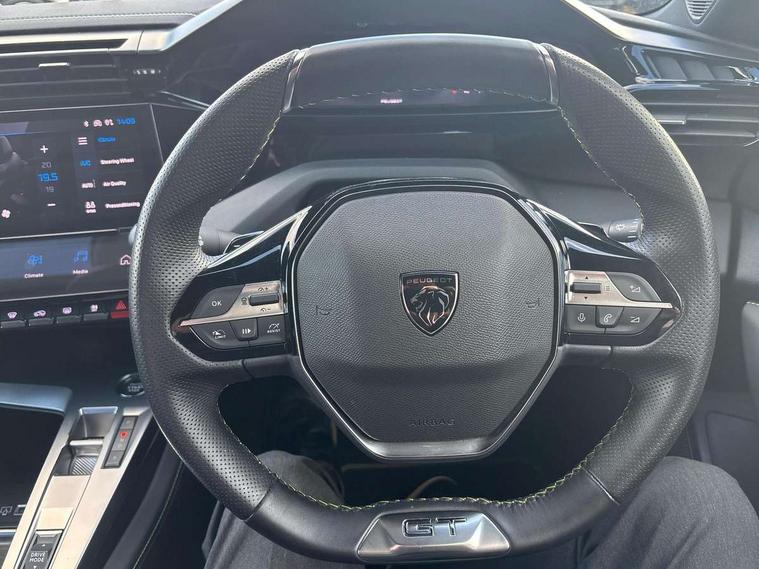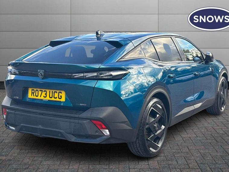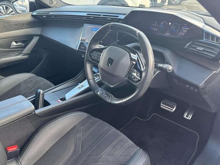 Bluetooth telephone facility, Compact automatic gearbox impulse selector, Driver attention warning, Driver's profile setting, e-remote Control for charge management and cabin pre-conditioning, Emergency call service, Extended traffic sign recognition, Exterior temperature indicator with ice warning, Front and rear parking sensors, Intelligent speed adaptation, Lane keep assist, Multi driving mode selector - Electric/HYBRID /Sport mode, Multi function trip computer, PEUGEOT i-Cockpit with 10" digital instrument panel display, PEUGEOT i-Cockpit with 10.0" high definition (HD) capacitive touchscreen, PEUGEOT i-Cockpit with compact steering wheel, PEUGEOT i-Connect Advanced - Over the air updates, PEUGEOT SOS and assistance, Programmable cruise control and speed limiter, Speed limit recognition and recommendation, Wireless apple car play/android Auto, Mode 3 type 2 cable for wallbox charging, 2x USB sockets in front, 2x USB sockets in rear, DAB Digital radio, PEUGEOT i-Cockpit with PEUGEOT configurable i-Toggles, 408 Model designation badges on front and rear, Acoustic laminated front windows, Acoustic tinted windscreen, Automatic hazard light activation upon heavy brake application, Body colour door handles, Body colour rear spoiler, Dark tinted rear side and tailgate windows, Electric heated and power folding door mirrors with courtesy approach lighting, Frameless electrochrome rear view mirror, Front and rear electric windows with one touch/anti pinch, Front grille with vertical body colour stamping, Full LED matrix headlights with automatic adjustment, Gloss black finish B pillar, Gloss black rear cluster connecting strip, High beam assist, LED rear number plate lights, LED side indicator lights integrated into door mirrors, Lower body and wheel arch "SUV style" protection, Nera black door mirrors, PEUGEOT shield on front doors, PEUGEOT signature LED front daytime running lights incorporating indicators, Rear bumper grained black, Rear full LED 3D Peugeot new claw effect lights with sequential welcome sequence upon unlocking the vehicle, Rear Hybrid badging, Rear reversing lights, Rear side wing doors, Roof mounted 'fin' style antenna, Smart electric tailgate, Tailgate with heated rear windscreen and wiper blade, 1/3 2/3 'Magic Flat' folding rear seats with controls located in the boot, 2x 12V sockets, 3 seat bench in 2nd row, 4 Grab handles retractable and damped, 8 Colour personalisable ambient lighting, Air purification system 'Clean Cabin', Aluminium door sills and boot sill, Aluminium pedals and footrest, Central front armrest with storage compartment, Dual Zone automatic air conditioning with AQS 3, Dynamic front seats, Electric power steering with reach and rake adjustable steering column, Front central console with two cup holders, Front passenger seat, Gloss black waistbelt (window weather strips), Glovebox with LED lighting, Heated steering wheel, Luxury carpet mats with adamite green stitching, Multifunction full grain leather steering wheel with admite green stitching & GT badging, Rear central armrest with cupholder, Roof lining - Mistral black, Seatbelt unfastened on the move audible and visual alert for front and rear seats, Ski hatch with central rear armrest with cup holder, Steering wheel mounted gearshift paddles, Sunvisor with concealable vanity mirrors with LED lighting, Drive assist plus pack - 408, Driver Sport Pack - 408 hybrid, Visibility pack - 408, 2x Isofix child seat fitting on outer rear seats, 3x3 point rear seat belts, ABS + EBD + EBA, Active safety brake with night function/cyclists/pedestrians, Adaptive driver and front passenger airbags with passenger airbag deactivation function, Automatic post collision braking, Child locks on rear doors, Driver/front passenger side airbags, Electronic parking brake, ESP, Front and outer rear seatbelts with pyrotechnic pretensioners, Front and rear curtain airbags, Front and rear disc brakes, Front optimised safety headrests and rear retractable headrests (x3), height adjustable, Front three point retractable seatbelts with force limiters, Hill start assist, Indirect tyre under inflation detection, 2x keys, Acoustic vehicle alert system (AVAS), Anti-theft wheel bolts, Automatic door locking when moving off, Deadlocking system, Electronic code immobiliser, Peugeot open and go system includes keyless entry with push start button, Thatcham cat. 1 alarm with anti lift sensor, Alloy wheel 'star' centre cap, Tyre puncture repair kit,