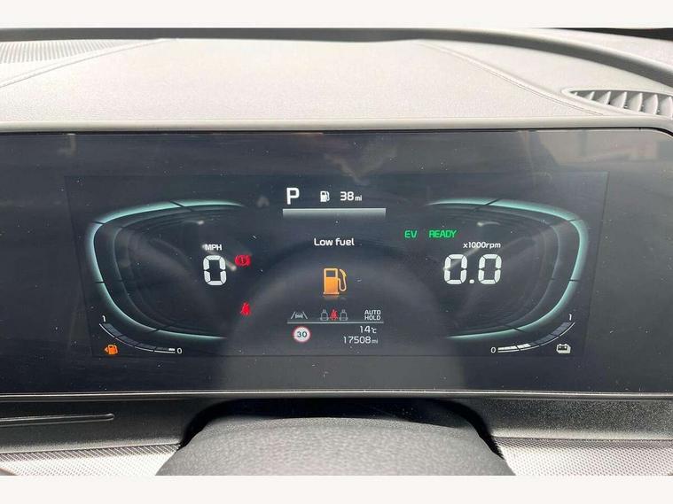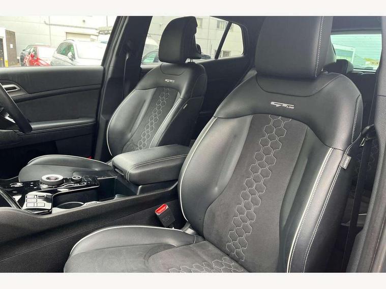 12.3" Display with navigation, 4.2" supervision colour cluster display, Apple car play/Android Auto with voice control, Drive mode selector, E-call, Forward collision avoidance assist (FCA) - city/pedestrian/cyclist/junction covering, Front and rear parking sensors, Highway Driving Assist (HDA), Intelligent speed limit assist, Kia Connect (UVO), Lane Following Assist (LFA), Lane keep assist, Low washer fluid warning, Rear view monitor, Reversing camera system integrated into centre fascia screen, Smart cruise control with stop and go functionality, Speed sensitive power steering, Trip computer, Windscreen washer level indicator, Intelligent Stop and Go, 6 speaker audio system, Bluetooth audio streaming, DAB Radio with MP3, Rear USB port, Steering wheel mounted audio controls, USB C type charging ports on centre console, USB C type charging ports on side of front seats, USB port for connection of a media device, All round electric windows with drivers and front passenger auto up/down function, Automatic headlight control system, Automatic window defogger, Backlite glass heated with timer, Body colour and black bumper with silver accents, Body colour exterior door handles, Body colour radiator upper garnish and door garnish, Electrically adjustable/heated/folding door mirrors with LED indicators, Front and rear chrome skid plates, Gloss black door mirrors, Gloss black radiator grille, Gloss black side sill and wheel arch body mouldings, Glossy black roof rack, High beam assist, Interior electrochromic mirror, LED daytime running lights, LED front fog lamps, LED headlamps (low and high beam - MFR type), LED High mounted stop light, LED rear combination lamp, Rain sensing wipers with aero blades, Rear fog lamp, Rear privacy glass, Rear side wing doors, Rear spoiler, Rear wiper, Satin finished beltline, Silver coloured inserts to bumpers, Tinted rear glass, Trailer stability assist, 12V power socket in front centre fascia and luggage compartment, 2nd row personal lamps, 3 seat bench in 2nd row, 3 x passenger assist grips, 40/20/40 split folding rear seat, All-round height adjustable headrests, Black headlining, Centre console storage box, Cupholders in rear armrest, D-Shaped sports leather steering wheel and perforated inserts with GT-Line logo, Door courtesy lamps, Drink holder at centre armrest, Driver and front passenger side sunvisors with illuminated vanity mirrors, Driver's seat manual height adjust, Drivers seat power lumbar support, Front and rear door storage, Front seat and rear pockets, Front/rear centre armrests, Gear shift indicator, Glovebox illumination, Heated front seats, Heated steering wheel, Interior door lock/unlock function, ISOFIX Child seat top tethers and anchor fixings outer rear seats, Luggage area light, Luggage area load cover, Luggage net with hooks, Metal paint interior door handles, Overhead console lamp, Paddle shift controls, Rear cabin light, Rear coat hooks, Single front passenger seat, Sports pedals, Suede leather upholstery, Three zone climate control, Tilt/telescopic adjustable steering wheel, Ventilation ducts to rear compartment, Active front headrests, All round 3-point seatbelts, Anti-lock braking system (ABS), Dual front side airbags, Dual horn, Electronic parking brake, Electronic stability control with downhill brake control, Front passenger airbag cut-off switch, Front seatbelt pretensioners + load limiters, Height adjustable front seatbelts, Hill start assist control (HAC), Impact sensing auto door unlocking, Multi collision brake assist, Rear door child safety locks, Rear seat alert system, Traction control, Twin curtain airbags, Twin front airbags, Tyre pressure monitoring system, Advanced anti-theft system including immobiliser and alarm, Door deadlocks, Engine Start/Stop Button with Smart Entry System, Locking wheel nuts, Speed sensitive auto door locking, Visible vehicle identification number, Aluminium pattern finish centre fascia and door garnish, 18" GT-Line alloy wheels, Tyre mobility kit,