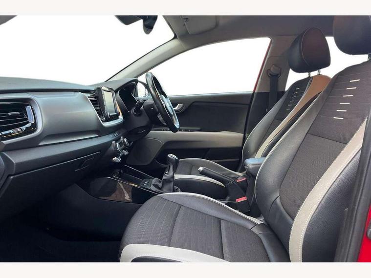 7" Touchscreen display with RDS and DAB and MP3 compatiblity, Apple car play/Android Auto, Bluetooth connectivity with voice control, Cruise control + speed limiter, Electric power steering, Emergency stop signalling system, Gear selection indicator, Instrument cluster- 3.5" Monochrome TFT Display, Kia connected services featuring TomTom live, Outside temperature display, Rear parking sensor, Reversing camera system with dynamic guidelines (Integrated into centre fascia screen), Trip computer, Windscreen washer level indicator, Intelligent Stop and Go, 'Shark fin' mobile antenna, 6 speakers, Bluetooth audio streaming, Rear USB port, Steering wheel mounted controls, USB and aux connection in front, Aero blade type windshield wipers, All round electric windows with drivers auto up/down function, Auto dimming rear view mirror, Automatic defog system, Automatic front rain sensing wipers, Automatic lighting control, Bi-function projection headlights with static bending, Black door garnish, Black side sills, Black wheel arch extensions, Black/body colour bumpers, Body colour door handles, Body colour door mirrors, Electric adjustable/heated/folding door mirrors with LED indicators lights, Follow me home headlights, Front skid plate - silver, Headlamp levelling, Heated rear window, High gloss black and satin radiator grille, High level brake light, LED daytime running lights, LED Indicators, LED rear combination lights, Matt black lower mirror housing, Projection front fog lights, Rear fog lights, Rear privacy glass, Rear skid plate - silver, Rear spoiler, Rear wash/wipe, Roof rails, Shark fin antenna, Speed sensitive front wipers, Visible VIN plate, Welcome home function, 12V power point front, 60/40 split/folding 2nd row of seats, Air filter, Automatic air conditioning, Centre console storage box/armrest, Centre console with cupholders, Cloth/faux leather upholstery, Dash illumination dimmer switch, Door pockets with bottle holder, Driver's seat height adjuster, Driver/passenger sunvisors and illuminated vanity mirrors, Front and centre cabin lights, Glovebox illumination, Height adjustable headrests, ISOFIX top tethers and lower anchor points, Leather trimmed gearshift, Luggage area lamp, Luggage area parcel shelf, Luggage net hooks, Overhead console lamp, Overhead console with sunglasses holder, Passenger front seatback pockets, Perforated leather trim D-cut steering wheel, Satin chrome interior door handles, Tilt/telescopic adjustable steering wheel, Advanced driver assistance pack - Stonic, 3 point front seat belts, 3x3 point rear seatbelts, ABS/EBD, Automatic unlocking of doors in case of impact, Dual curtain airbags, Dual front airbags, Dual front side airbags, ESC + BAS + VSM + HAC, Front seatbelt pretensioners + load limiters, Height adjustable front seatbelts, Passenger airbag deactivate switch, Seatbelt warning, Traction control, Tyre pressure monitoring system, Anti theft alarm, Deadlocking system, Engine immobiliser, Folding key, Locking wheel nuts, Remote central door locking, Speed sensitive auto door locking, High gloss black centre fascia, 17" alloy wheels, Tyre mobility system,