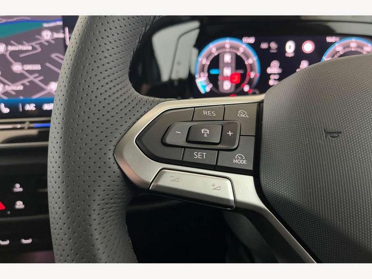 Activated carbon canister, Adaptive cruise control (ACC), Advanced driver attention and drowsiness monitor, Dynamic road sign display, Dynamic steering, E-Sim card for online connectivity, eCall emergency call system, Multi-color Digital cockpit pro, selection of different info profile possible, Multifunction front facing camera for distance control, Navigation system, Oncoming vehicle braking when turning including swerve support, Speed limiter, Speedo, rev counter, electronic odometer, trip, service interval display, exterior temperature and fuel gauge, Traffic jam assist, Voice enhancer and voice control, Warning signal and warning light for front and rear seatbelts not fastened, We connect plus preparation, We connect preparation, Wireless app connect, Hybrid propulsion system, Petrol Particulate Filter, Start-stop system with battery regeneration (recuperation - energy recovery during braking), XDS electronic differential lock for improved traction and handling, 2 USB C ports in front, 2 USB charging sockets on the centre console in the rear charging capacity upto 45W, Digital radio reception (DAB), Diversity antenna for FM reception, Gaming platform via car app, Infotainment system with 12.9" display, Mobile phone interface with inductive charging feature, 3rd brake light, Auto dimming rear view mirror, Automatic headlamp activation with Coming home and Leaving home feature, Body colored bumpers in R-Line style, Body colour door handles, Exterior ambient lighting, Exterior mirrors convex on the left and aspherical on the right, Front and rear electric windows, Heat insulating windshield made of laminated glass, LED separate daytime running light, Rain sensor, Rear exhaust tailpipe, Rear fog light on one side and reversing lights on both sides, Rear side wing doors, Rear windscreen washer and wiper with interval delay, Remote electrically foldable door mirrors, puddle lights and reverse activated passenger's door mirror, Volkswagen logo in front, illuminated lighting animation with wake up/goodbye scenario and illuminated door handles, Welcome light with surround lighting, 12V socket in front centre console, 12V socket in luggage compartment, 3 rear head restraints, 3 seat bench in 2nd row, Ambient lighting with 30 colour including LED light unit in front footwell with selectable light colour, Black roof lining, Brushed stainless steel pedals, Chrome plated radiator grille inserts, air vent surrounds and light switch surrounds, Door insert, side trim panel and arm support in leatherette, Front + rear black carpet mats, Front centre armrest, Front seat lumbar support adjuster, Integrated front head restraints, ISOFIX anchors for child seats on outer rear bench seats and on front passanger seat compatible for i-Size, Luggage compartment lighting, Manual height adjustable front passenger seat, Manually height adjustable driver seat, Plastic gear knob, Premium sports seats in front, Rear cupholder and loadthough, Sardegna cloth upholstery with front and outer rear seats Art Velour inner sides of bolsters, Single front passenger seat, Split folding backrest with centre armrest and unsplit rear seat bench, Sun visors with illuminated vanity mirrors, Titanium black instrument panel, Black exterior Styling package with Matrix LED headlights - Golf, Winter package - Golf DSG Estate/Hatchback, 3 point height adj front seatbelts + pretensioners, 3 rear three point seatbelts, ABS, Autonomous emergency braking front assist with pedestrian and cyclist monitoring, Child locks on rear doors, Driver and front passenger airbag with front passenger airbag deactivation, Electronic parking brake with auto hold, ESC (Electronic Stability Control), Extended pedestrian protection measures, Hill start assist, Rear disc brakes, Two tone horn, Tyre pressure loss indicator, Volkswagen roadside assistance, Anti theft wheel bolts, Preparation for alcohol interlock, Decorative inserts carbon grey for dashboard and front door trim panels, 18" Leeds alloy wheels, Tool kit for tyre mobility set, Tyre mobility kit Includes 12V compressor and tyre sealant,