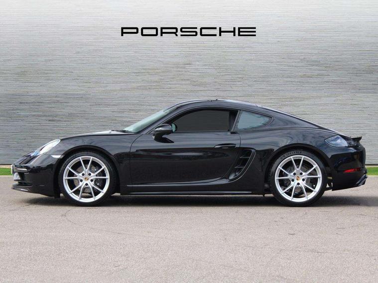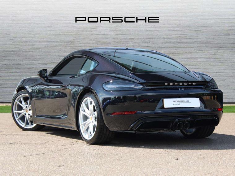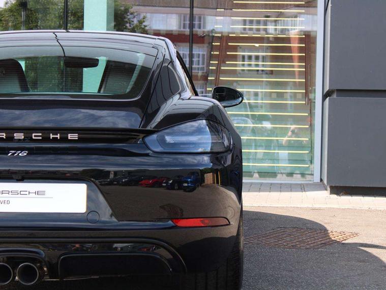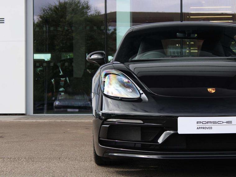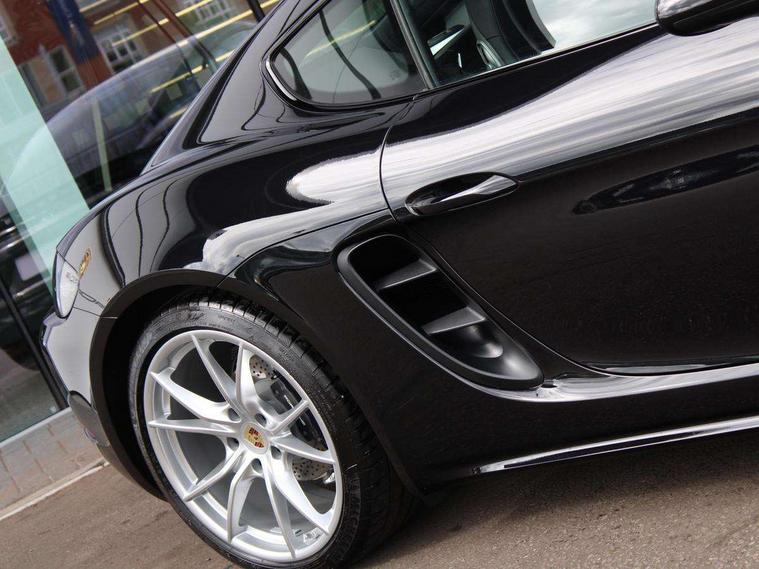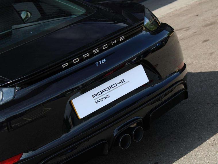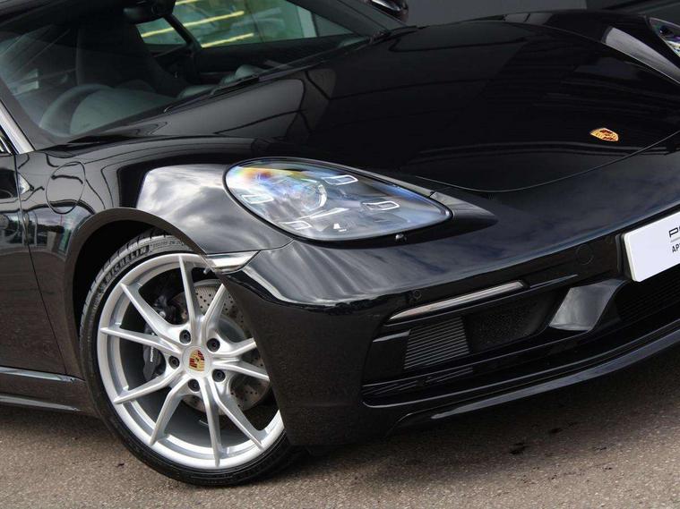 Auto start and stop system, Digital displays for vehicle speed, chosen gear, odometer, trip odometer and clock, eCall emergency call system, Instrument cluster with central rev counter and high-resolution 4.6 inch colour display, Porsche Communication Management (PCM) including online navigation module, mobile phone preparation, audio interfaces and voice control system, 3-way catalytic converters and on-board diagnostics for monitoring emission control system and coated particulate filter, 4 valves per cylinder, Aluminium block and cylinder heads, Direct fuel injection (DFI), Gasoline particulate filter, Integrated dry-sump lubrication with an on-demand oil pump, Porsche Doppelkupplung (PDK), Porsche Stability Management (PSM) with ABS, advanced brake functions, Rear wheel drive, Turbocharger with intercooler, Two seater vehicle with mid mounted engine, VarioCam Plus variable valve timing and switchable valve lift, Water cooled with thermal management, DAB Digital radio, Integrated 4G/LTE compatible SIM including data for the Porsche Connect Services, Integrated compatible SIM including Porsche Connect Services, Navigation incl porsche + Apple Carplay, connect module, wireless internet access, carfinder, remote vehicle status, remote service and vehicle track, Wifi and music streaming, Auto deploying rear wing, Automatic headlight activation including welcome home lighting, Automatically extending rear boot spoiler, Body colour bumpers, Body colour door handles, Electrically adjustable heated exterior mirrors on door waist rails, aspherical on driver's side, Green tinted heat insulating glass, Grey top tinted windscreen, Heated rear windscreen, Intelligent lightweight body in Aluminium/Steel composite construction, LED 3rd brake light, Power windows with one touch operation and door seal protection, Rain sensor, Rear boot, Separate auxiliary lights in the front end with LED indicators and position lights, Twin tract exhaust system with central tailpipe in stainless steel, Wide opening rear hatch with heated screen, Windscreen washer system with two wiper speeds and washer jets, 12V sockets in passenger footwell and centre console storage compartment, 718 logo on gear lever, Adjustable fan with air recirculation and defroster functions, Ascending centre console with uncovered storage compartment and closed storage compartment, Clothes hooks on front seat backrests, Footwell illumination, Front and rear luggage compartments, Front headrests, Heated seats, LED reading lights, orientation, ignition lock, additionally luggage compartment and glove compartment lighting, Lockable glovebox, Seat centres in race tex, side bolsters and headrests in leather, Single front passenger seat, Smooth finish leather on steering wheel rim, gear lever and door handles, SPORT button to activate dynamic driving settings for engine, transmission (with PDK), Storage compartments in each doors, Two individual cup holders (Passenger side, integrated into dashboard trim strip), 3 point automatic seatbelts, ASR, Electrically controlled parking brake, Front and rear lightweight spring strut axle, Front seatbelt pretensioners + load limiters, Full size driver and passenger airbags, Passenger airbag deactivate switch, Porsche side impact protection doors with thorax airbag in outer backrest side bolster and head airbag for driver/passenger in door panel, Tyre pressure monitoring system, Alarm system with interior surveillance, Anti-theft wheel bolts, Dashcam prep, Engine immobiliser with in key transponder, central locking and remote control, Tyre repair kit,